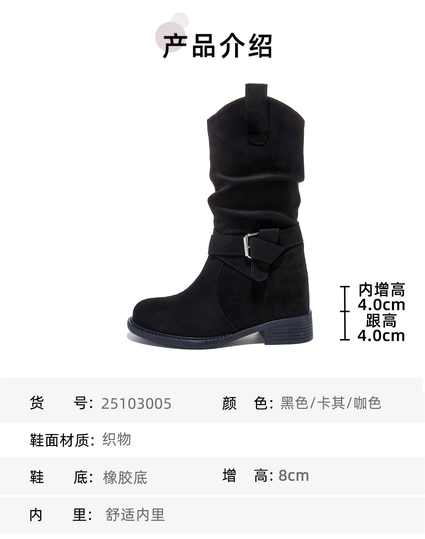 | Color Classification | Black[Increase Height by 8cm],Khaki[Increase Height by 8cm],Brown[Increase Height by 8cm] |