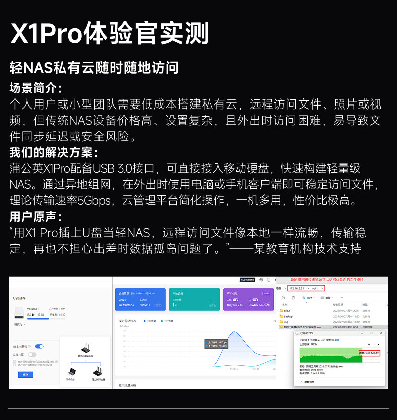 Dandelion Gigabit Router X1Pro Remote Networking Private Cloud Nas Wireless 2.5g Network Port Dual-Band Wifi Home High-Speed Port Mini Portable Small Relay Network Signal