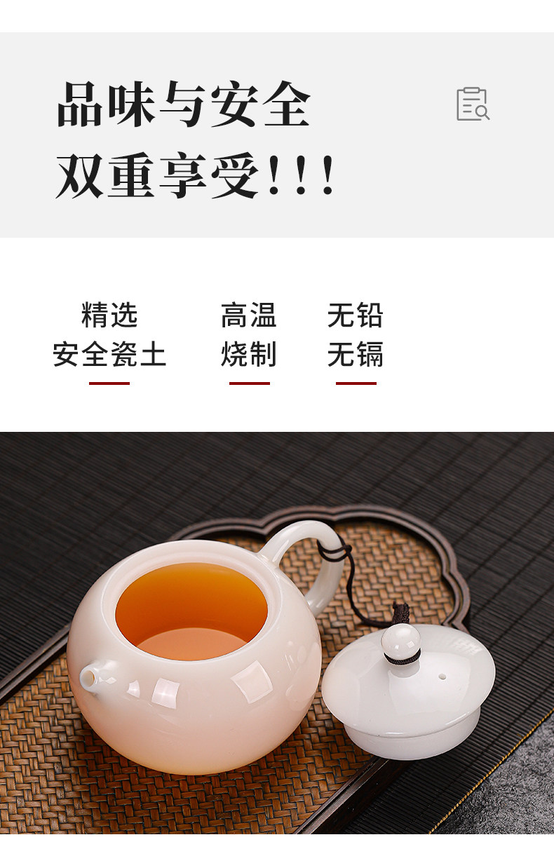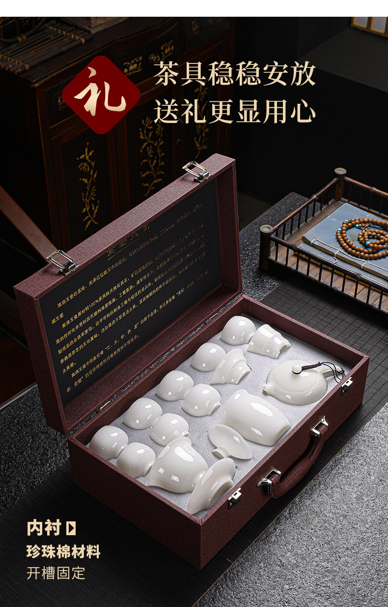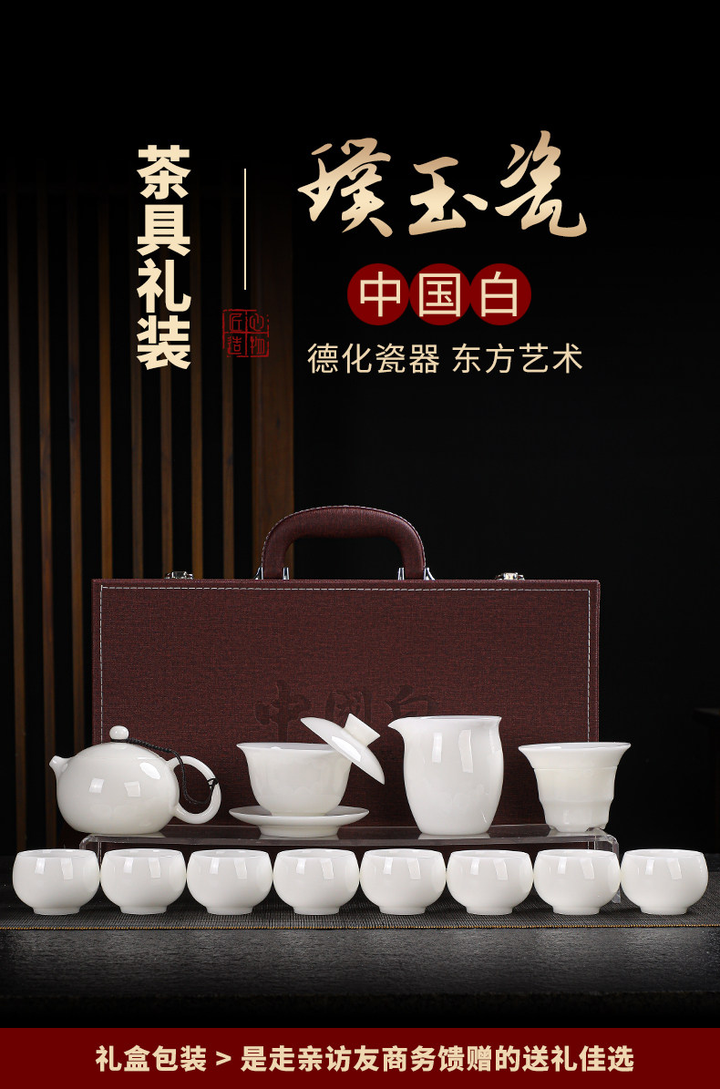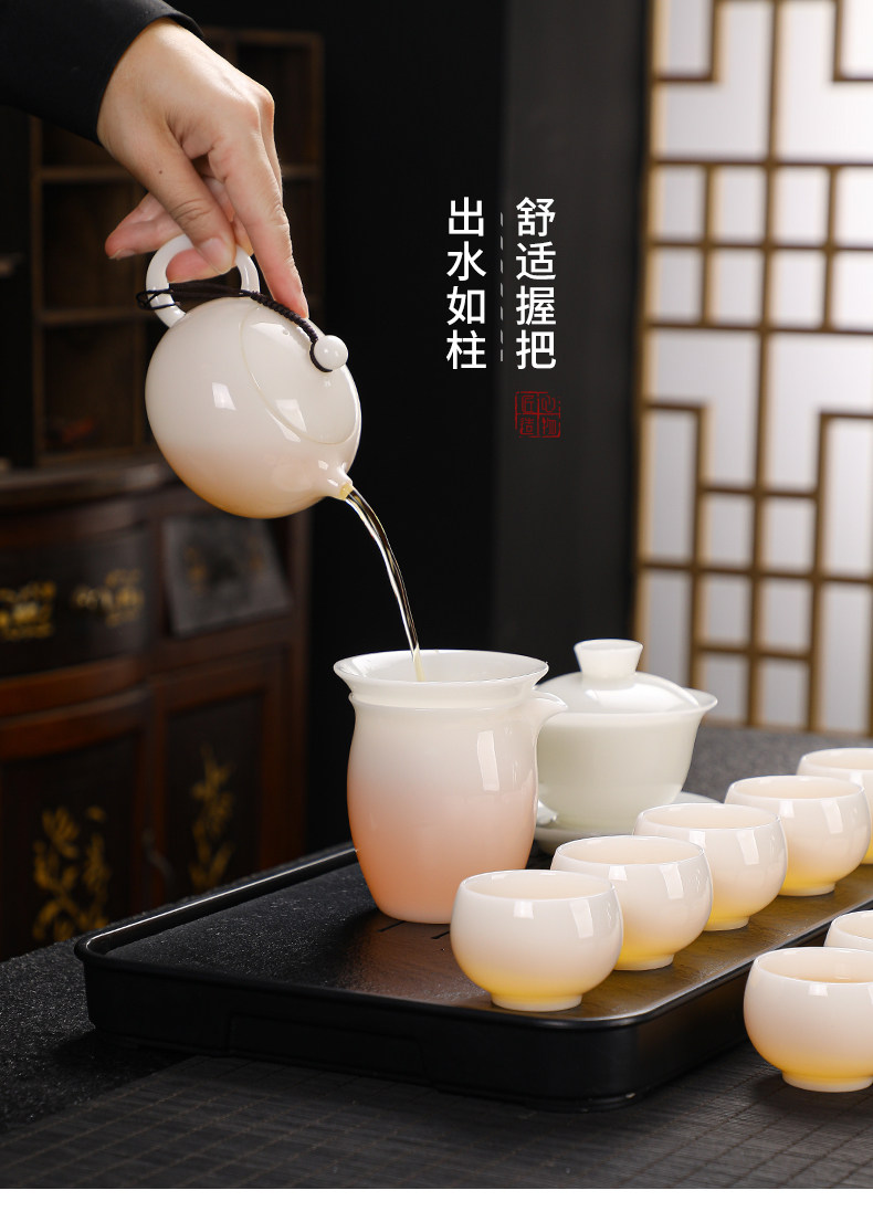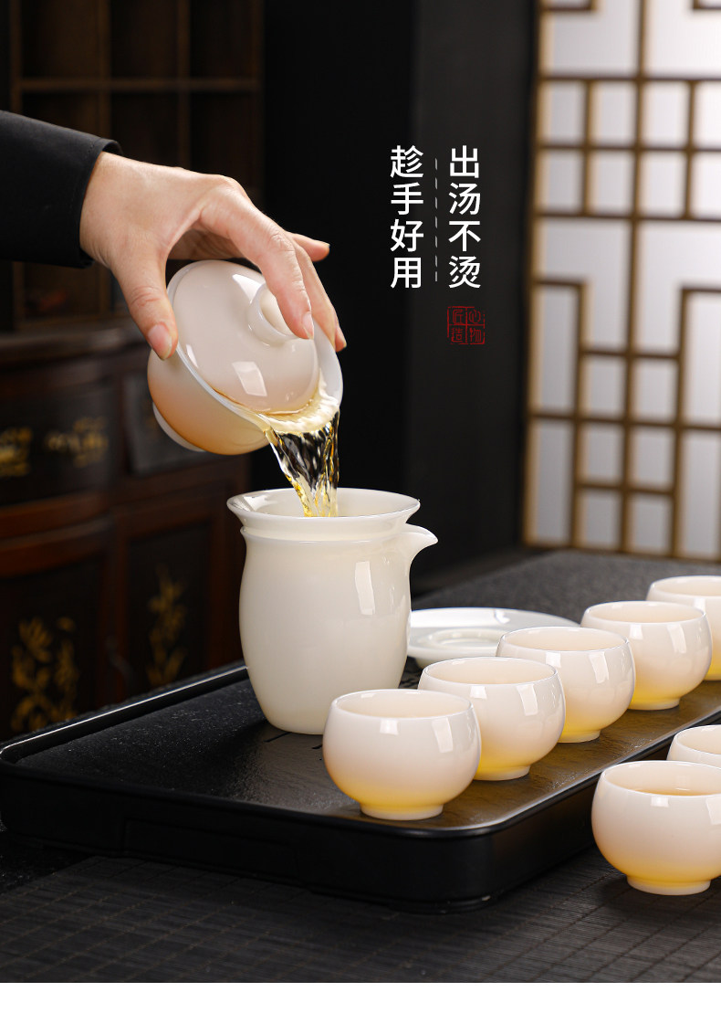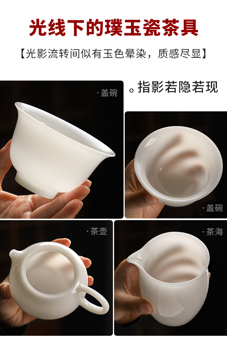 High-End Jade Ice Jade Porcelain Tea Set for Home Use, Light Luxury White Jade Porcelain Teapot, Kung Fu Tea Bowl Gift Set