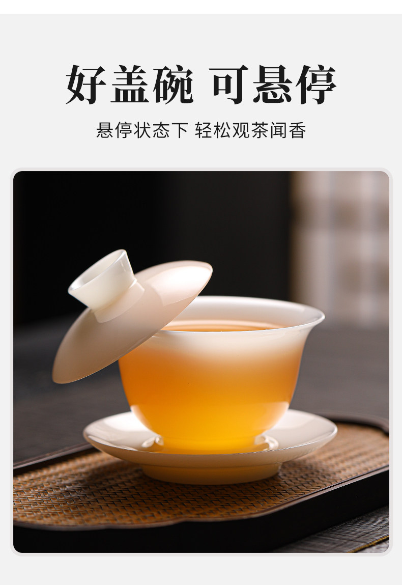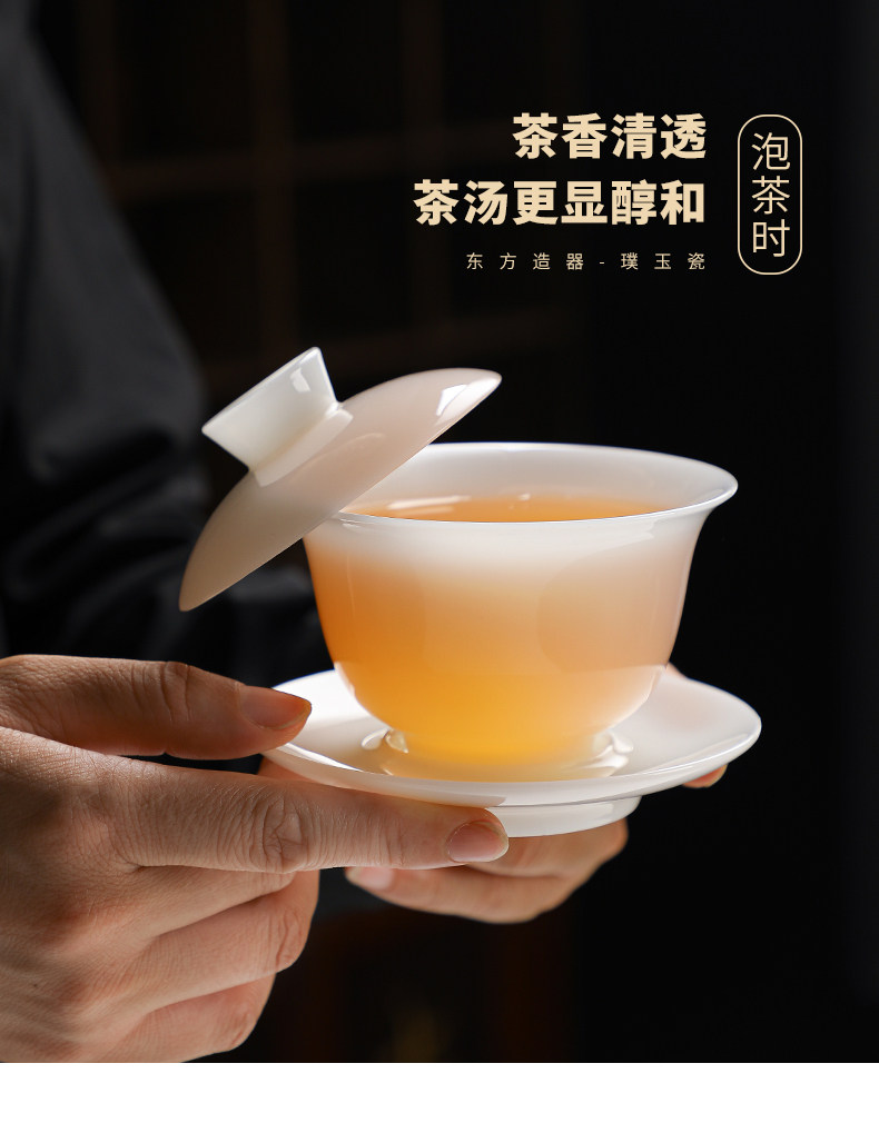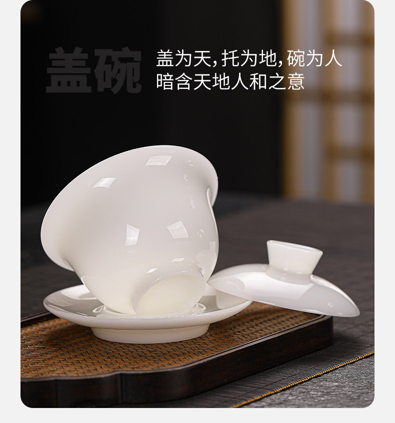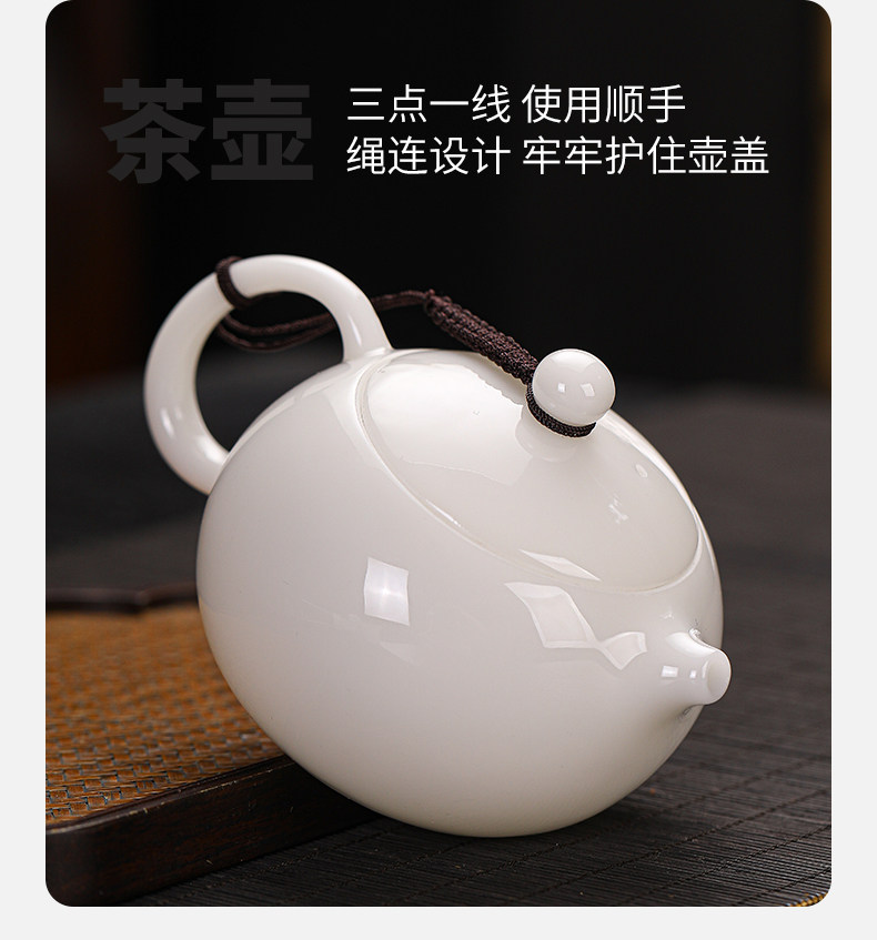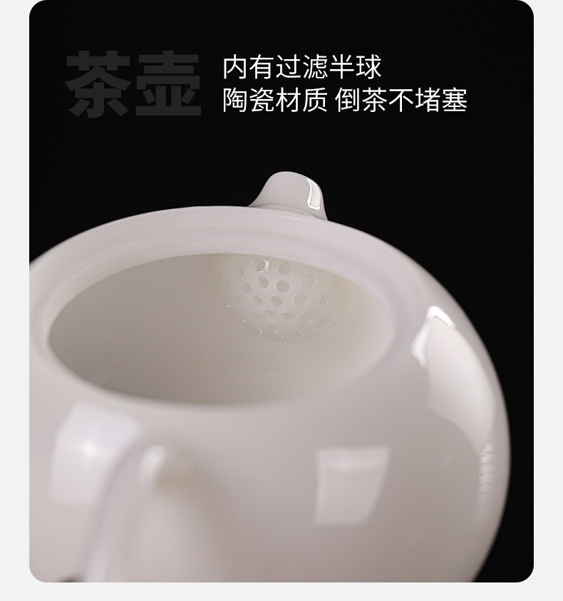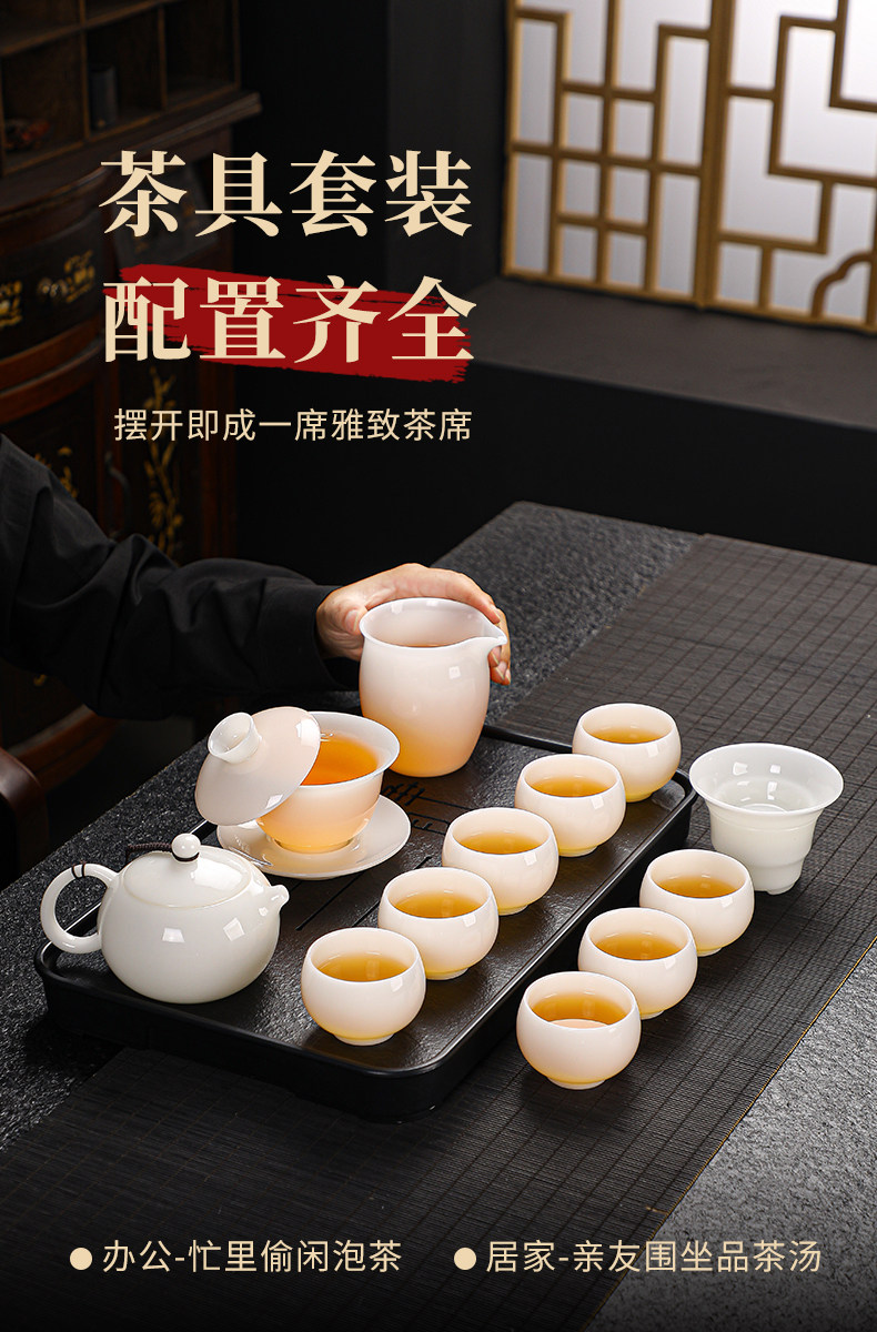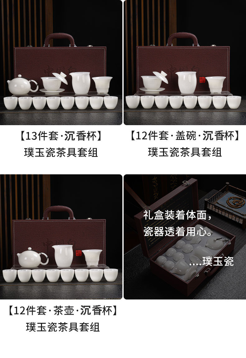 High-End Jade Ice Jade Porcelain Tea Set for Home Use, Light Luxury White Jade Porcelain Teapot, Kung Fu Tea Bowl Gift Set