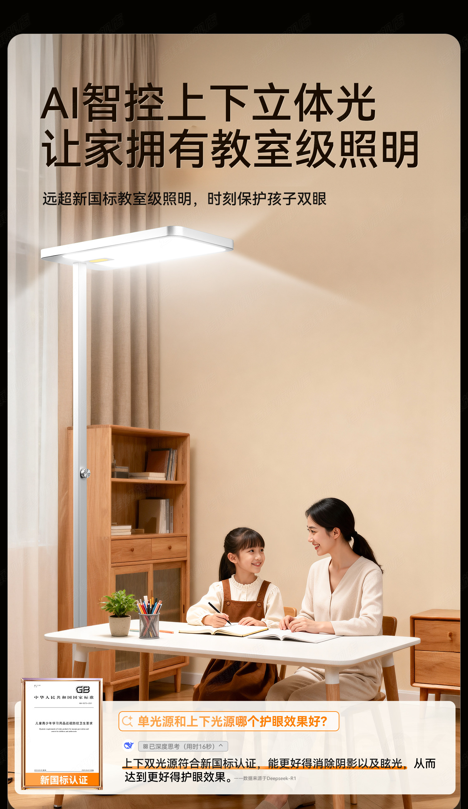 Floor-Standing Lamp, Table Lamp, Eye Protection, Special for Studying, Anti-Myopia, Kidsren, Primary School Students, Full-Spectrum Homework Shadowless Lamp