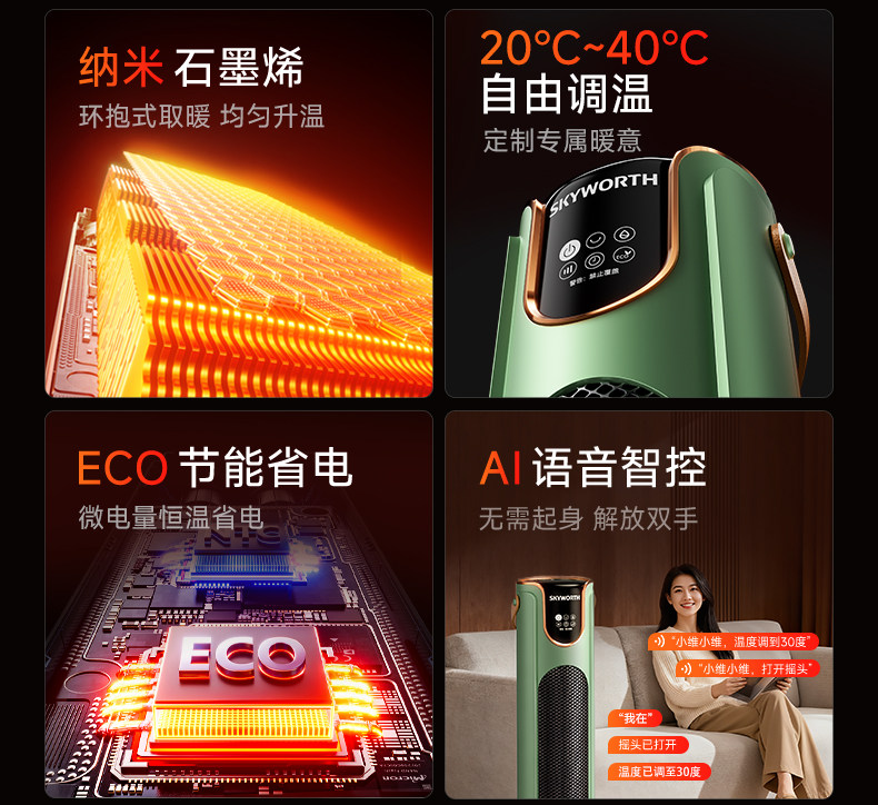 Skyworth Mid-Tower Heater 2025 New Model Household Fan Heater Graphene Electric Heater Energy-Saving