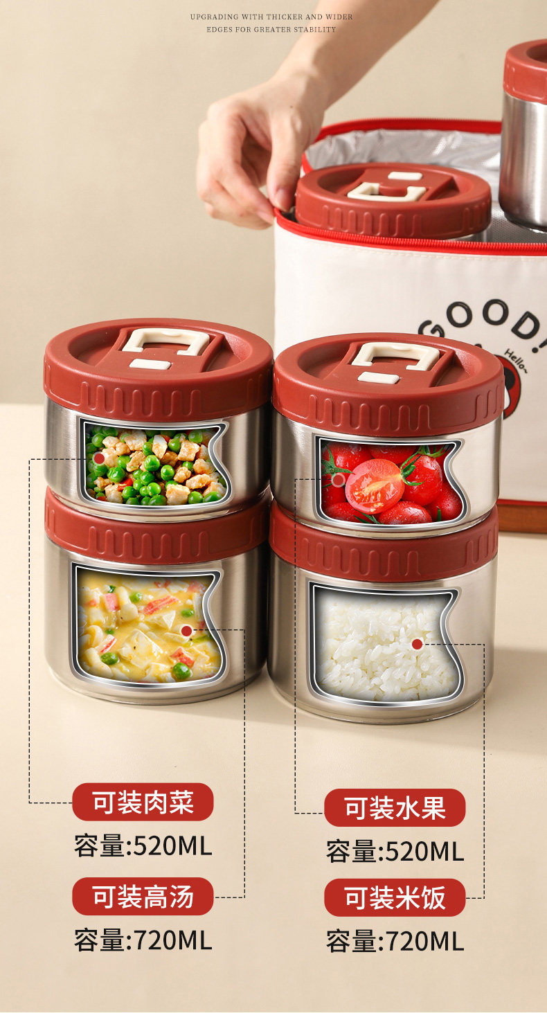 Vacuum Insulated Lunch Box Stainless Steel 2026 New Model Multi-Layer Large Capacity Portable Lunch Box for Office Workers