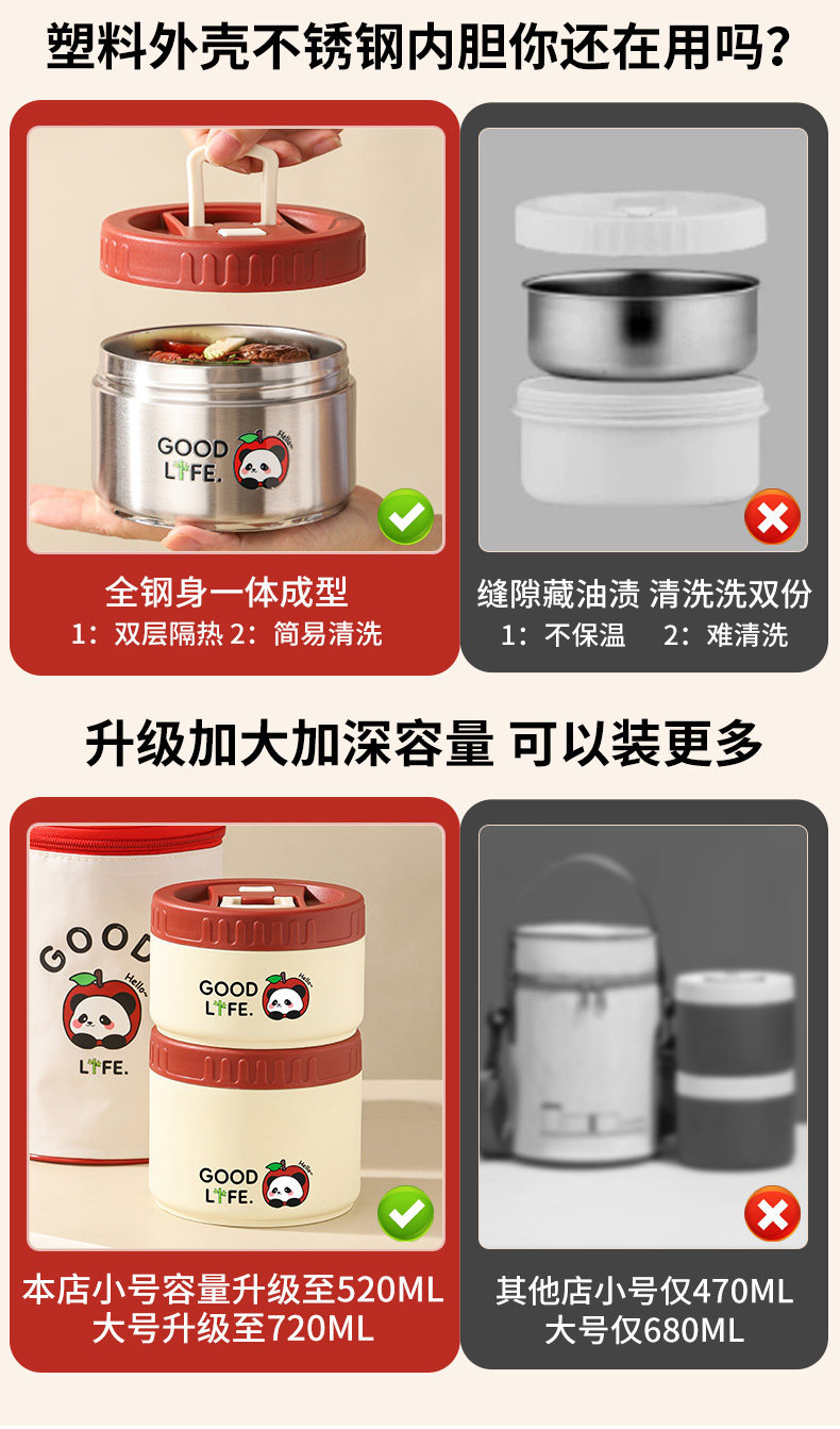 | Color Classification | Natural Panda + Red Lid❤Double Layer 1240ml Small + Large (Rice/Vegetable) Tableware + Thermal Bag,(Increased Capacity) Natural Panda + Red Cover❤Double Layer 1440ml Large + Large (Rice/Vegetable) Tableware + Thermal Bag,Natural Panda + Red Lid❤Three-Layer 1760ml Small + Small + Large (Rice/Vegetable/Soup) Tableware + Thermal Bag,(Increased Capacity) Natural Panda + Red Cover❤Three-Layer 1960ml Small + Large + Large (Rice/Vegetable/Soup) Tableware + Thermal Bag,Natural Panda + Red Lid❤Four-Layer 2480ml Small Size + Small Size + Large Size + Large Size (Rice/Vegetable/Soup/Fruit) Tableware + Thermal Bag,(Increased Capacity) Natural Panda + Red Cover❤Four Layers of 2880ml Large + Large + Large + Large Tableware + Thermal Bag,[316 Antibacterial-Natural Panda + Red Cover] Small Size 520ml + Folding Tableware + Insulation Bag,[316 Antibacterial-Natural Panda + Red Cover] Large 720ml + Folding Tableware + Insulation Bag,[316 Antibacterial-Natural Panda + Red Cover] Extra Large 900ml + Folding Tableware + Insulation Bag,[316 Antibacterial-Natural Panda + Red Cover] Small Size 520ml + Folding Tableware,[316 Antibacterial-Natural Panda + Red Cover] Large 720ml + Folding Tableware,[316 Antibacterial-Natural Panda + Red Cover] Extra Large 900ml + Folding Tableware,Off-White Panda + Red Cover❤Double Layer 1240ml Small + Large (Rice/Vegetable) Tableware + Thermal Bag,(Increased Capacity) Off-White Panda + Red Lid❤Double Layer 1440ml Large + Large (Rice/Vegetable) Tableware + Thermal Bag,Off-White Panda + Red Cover❤Three-Layer 1760ml Small + Small + Large (Rice/Vegetable/Soup) Tableware + Thermal Bag,(Increased Capacity) Off-White Panda + Red Lid❤Three-Layer 1960ml Small + Large + Large (Rice/Vegetable/Soup) Tableware + Thermal Bag,Off-White Panda + Red Cover❤Four-Layer 2480ml Small Size + Small Size + Large Size + Large Size (Rice/Vegetable/Soup/Fruit) Tableware + Thermal Bag,(Increased Capacity) Off-White Panda + Red Lid❤Four Layers of 2880ml Large + Large + Large + Large Tableware + Thermal Bag,[316 Antibacterial-Off-White Panda + Red Cover] Small Size 520ml + Folding Tableware + Insulation Bag,[316 Antibacterial-Off-White Panda + Red Cover] Large 720ml + Folding Tableware + Insulation Bag,[316 Antibacterial-Off-White Panda + Red Cover] Extra Large 900ml + Folding Tableware + Insulation Bag,[316 Antibacterial-Off-White Panda + Red Cover] Small Size 520ml + Folding Tableware,[316 Antibacterial-Off-White Panda + Red Cover] Large 720ml + Folding Tableware,[316 Antibacterial-Off-White Panda + Red Cover] Extra Large 900ml + Folding Tableware |