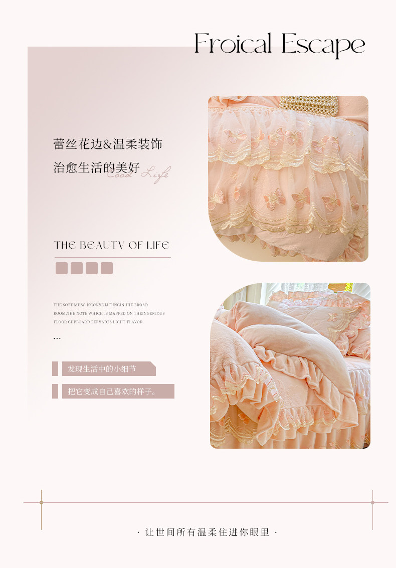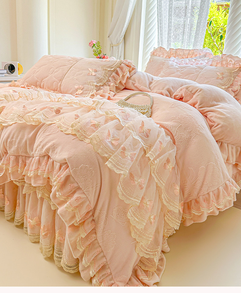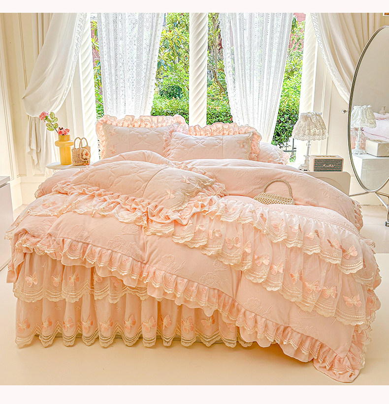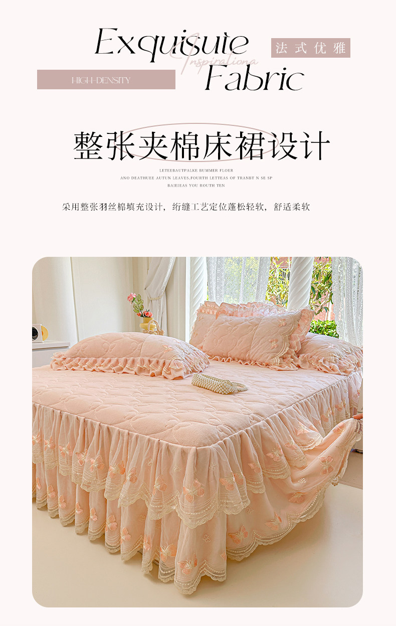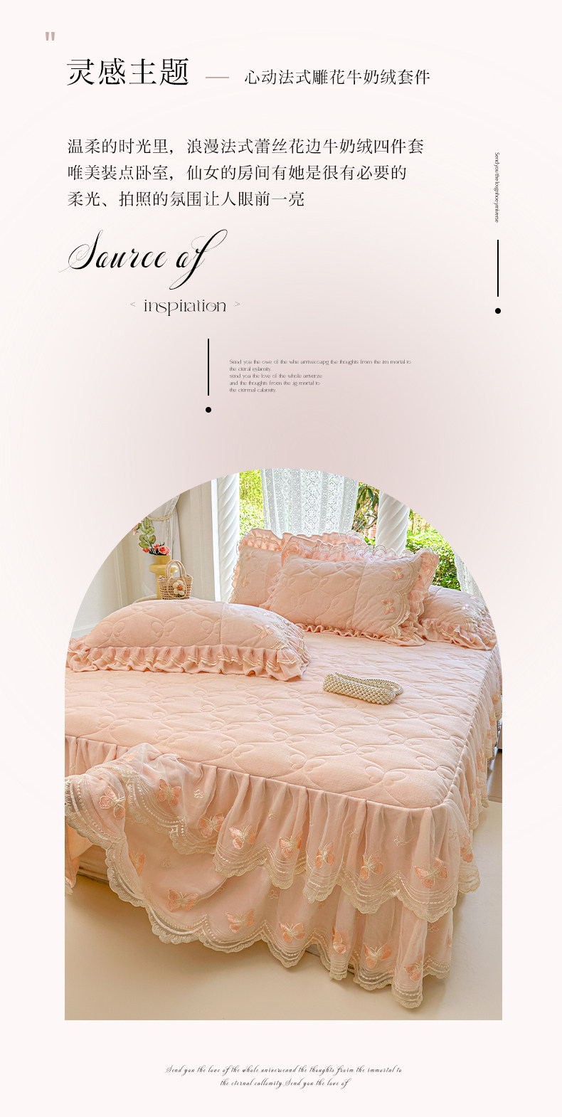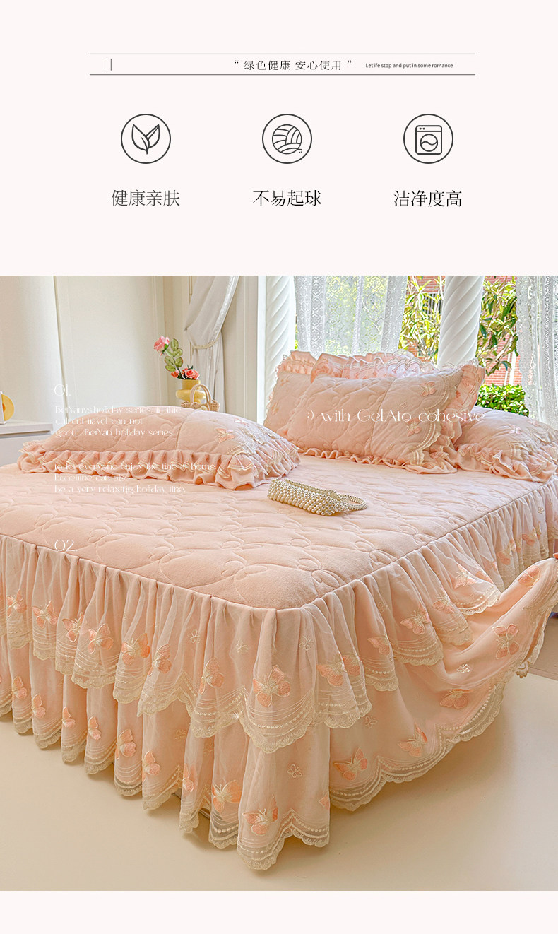 Quilted Warm Milk Velvet Bed Skirt Four-Piece Set Princess Style Lace Trim Double-Sided Fleece Duvet Cover Thickened Bed Skirt