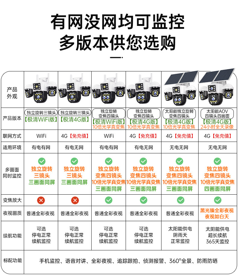 | Color Classification | Independent Rotating Three-Lens [Array Light Ultra-Clear Wifi Version],Independent Rotating Three-Lens + Power Outage Monitoring [Array Light Ultra-Clear Wifi Version],Independent Rotating Four-Lens + Zoom Lens [Array Light Ultra-Clear Wifi Version],Independent Rotating Four-Lens Camera + Zoom Lens + Power Outage Monitoring [Array Light Ultra Hd Wifi Version],[Free 99-Year Traffic] Independent Rotating Three-Lens 4g Model [Array Light Is Extremely Clear],[Free 99-Year Traffic] Independent Rotating Three-Lens 4g Model + Power Outage Monitoring [Array Light Ultra-Clear],[Free 99-Year Traffic] Independent Rotating Four-Lens 4g Model + Zoom Lens [Array Light Is Extremely Clear],[Free 99-Year Traffic] Independent Rotating Four-Lens 4g Model + Zoom Lens + Power Outage Monitoring [Array Light Ultra-Clear],[Free 99-Year Traffic] Independent Four Lenses and Four Screens + Solar 4g Version + Dual Boards + No Electricity or Network,[Free 99-Year Traffic] Independent Rotating Four Lenses + Zoom Lens + Solar 4g Version + Dual Boards + No Electricity or Network |