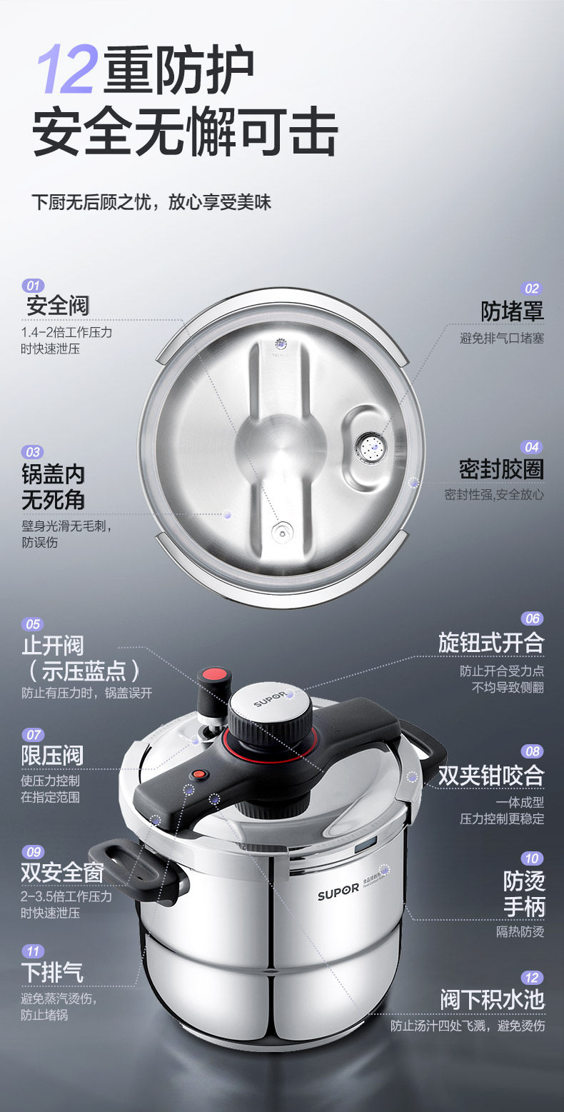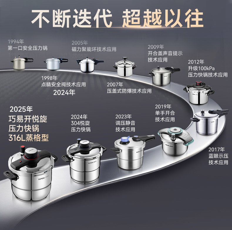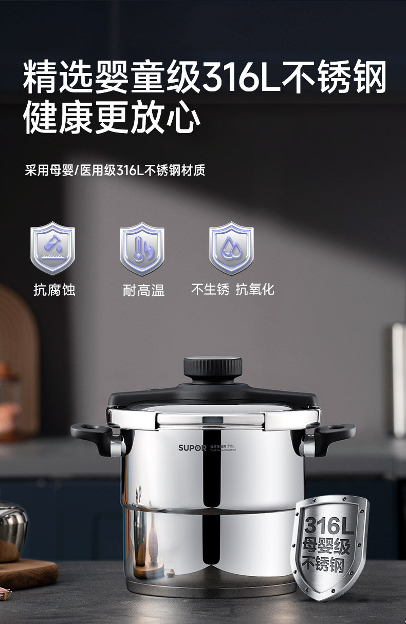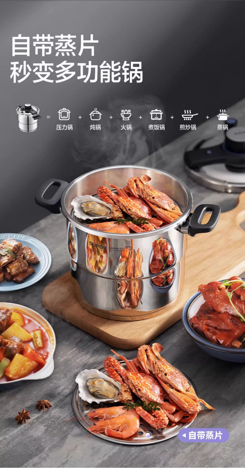 Supor Pressure Cooker Household Pressure Cooker 2025 New Model 316L Stainless Steel Pressure Cooker Small Size Compatible with Induction Cooker