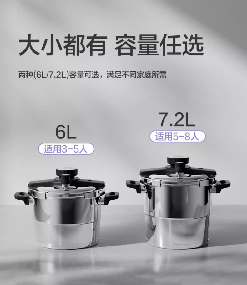 | Color Classification | ⭐Consult Customer Service to Enjoy Discounts⭐,Newly Upgraded Baby-Grade 316L Stainless Steel 100Kpa Pressure Cooker,[Thickened 316L Stainless Steel] 6.0L [One-Hand Screw Cap] [Steaming Model] [100Kpa Comes with Spoon + Glass Lid],[Thickened 316L Stainless Steel] 6.0L [One-Hand Screw Cap] [Steaming Model] [100Kpa Comes with Spoon + Glass Lid + Heat Conduction Plate],[Thickened 316L Stainless Steel] 7.2L [One-Hand Screw Cap] [Steaming Model] [100Kpa Comes with Spoon + Glass Lid],[Thickened 316L Stainless Steel] 7.2L [One-Hand Screw Cap] [Steaming Model] [100Kpa Free Soup + Glass Lid + Heat Conduction Plate] |