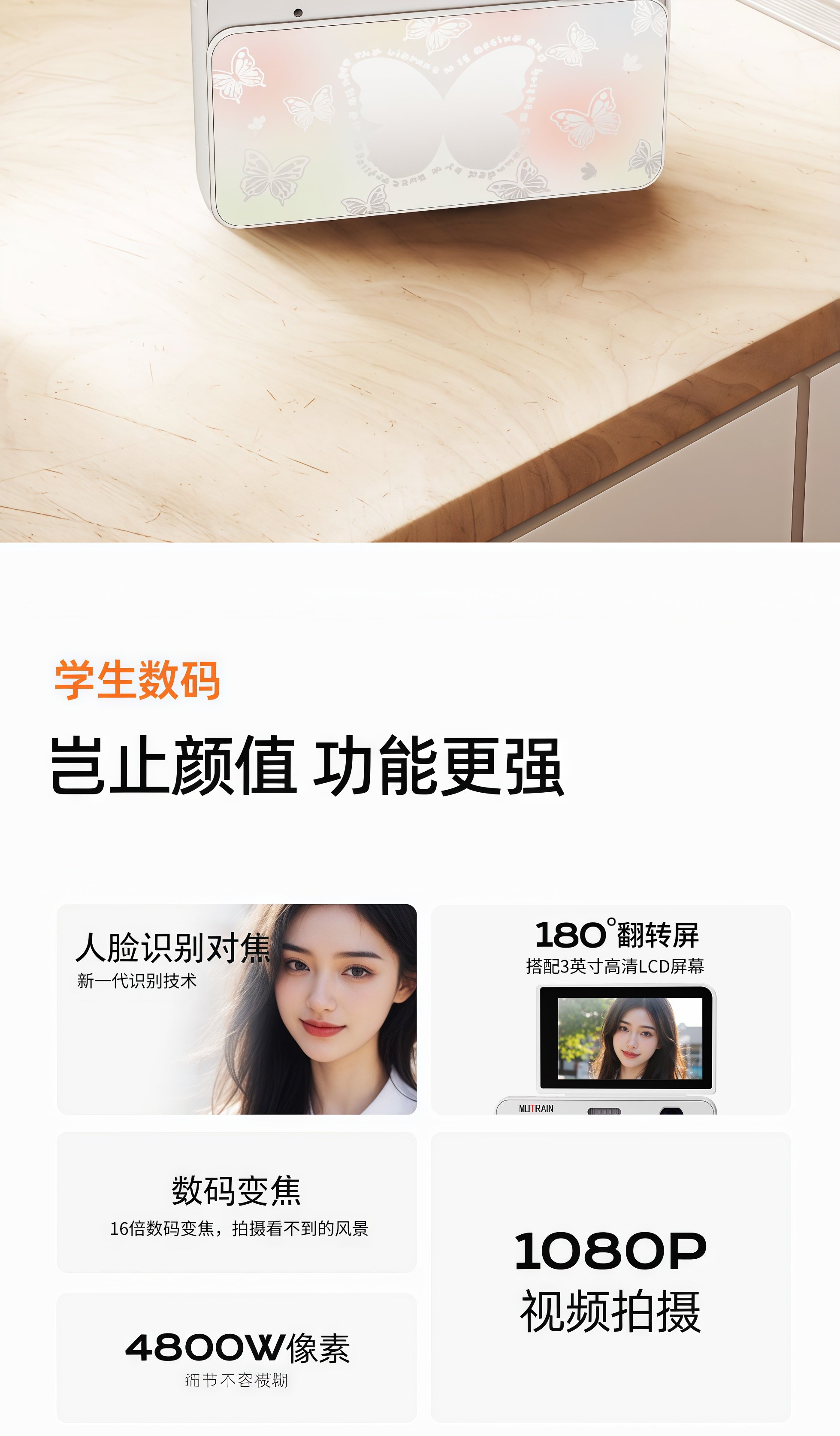 | Color Classification | Flip Screen [Star Point Model + 128g Card] 48 Million Pixels,Flip Screen [Butterfly Model + 128g Card] 48 Million Pixels,Flip Screen [Star Point Model + 64g Card] 48 Million Pixels,Flip Screen [Butterfly Model + 64g Card] 48 Million Pixels,Flip Screen [Star Point Model + 32g Card] 48 Million Pixels,Flip Screen [Butterfly Model + 32g Card] 48 Million Pixels,Flip Screen [Star Point Model + No Memory Card] 48 Million Pixels,Flip Screen [Butterfly Model + No Memory Card] 48 Million Pixels |