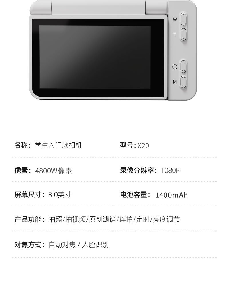 Mutrain Student Party Ccd Digital Camera High-Definition Travel Portable Entry-Level Girls' Selfie Flip Screen X20