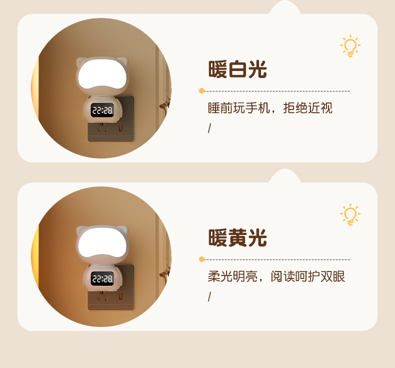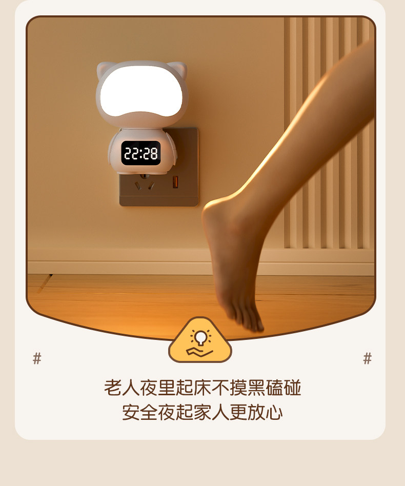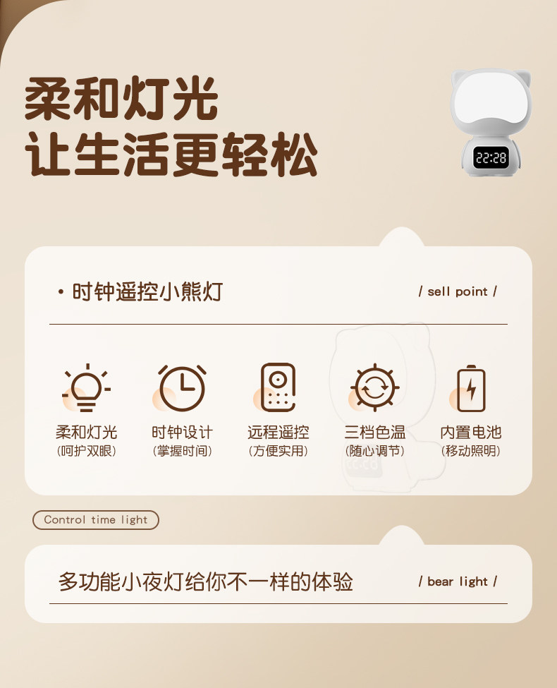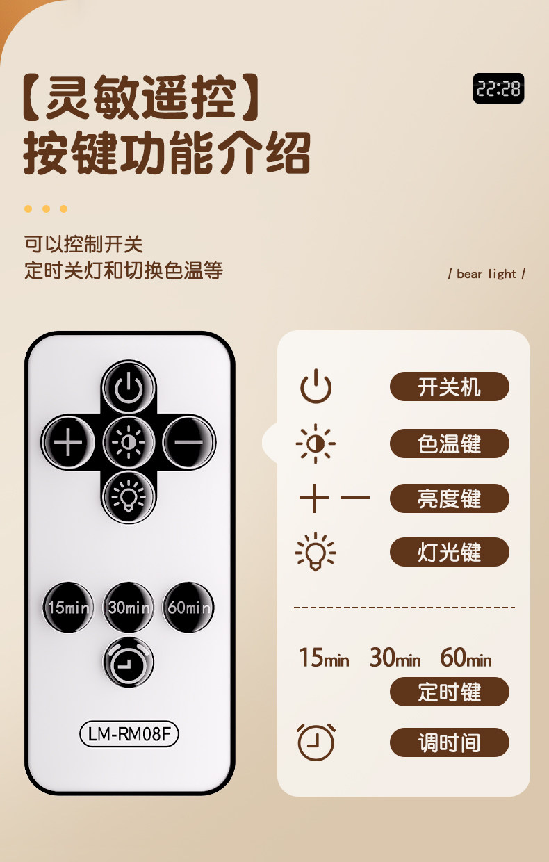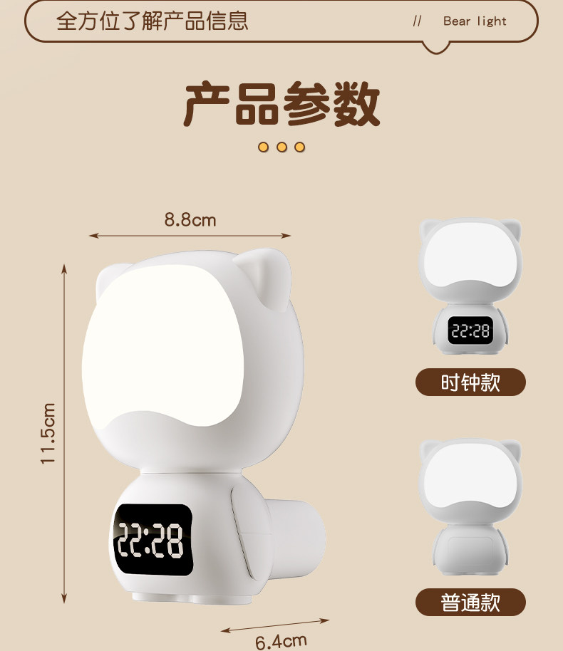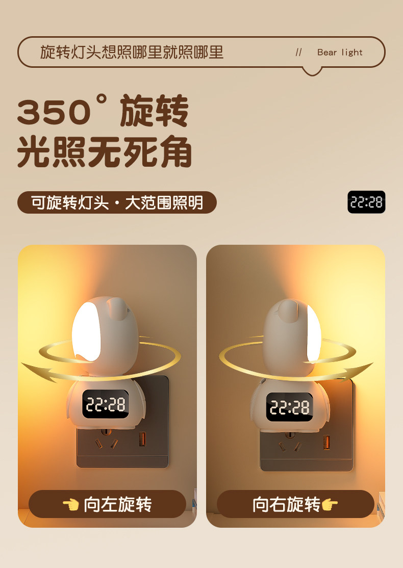 Mipin Creative Bear Night Light Led Remote Control Clock Sleep Night Light Table Lamp Bedroom Bedside Rechargeable Plug-In Dual-Use Lamp