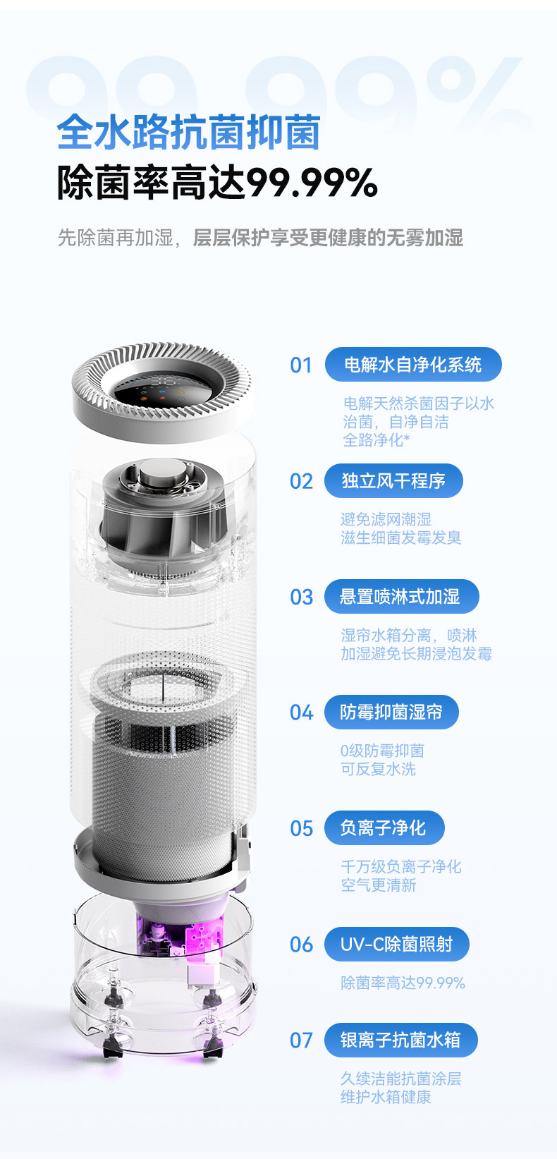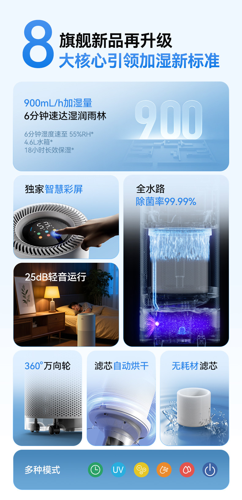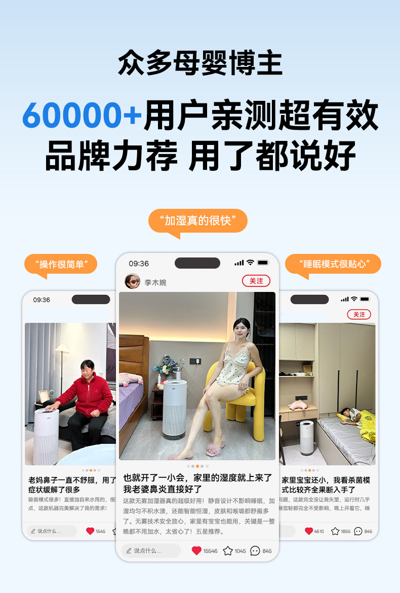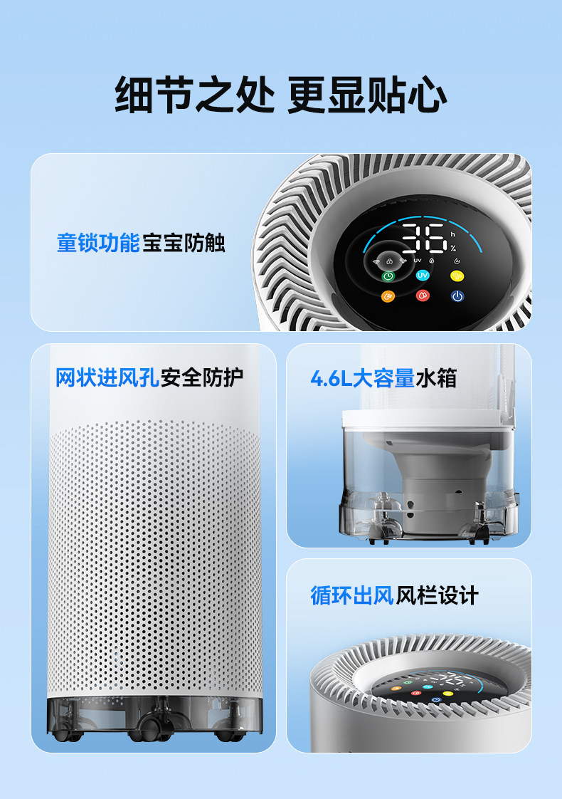 | Functional Use | Seven Layers of Sterilization, Ai Intelligent Color Screen, Large-Area Humidification Throughout the House, Remote App Control |