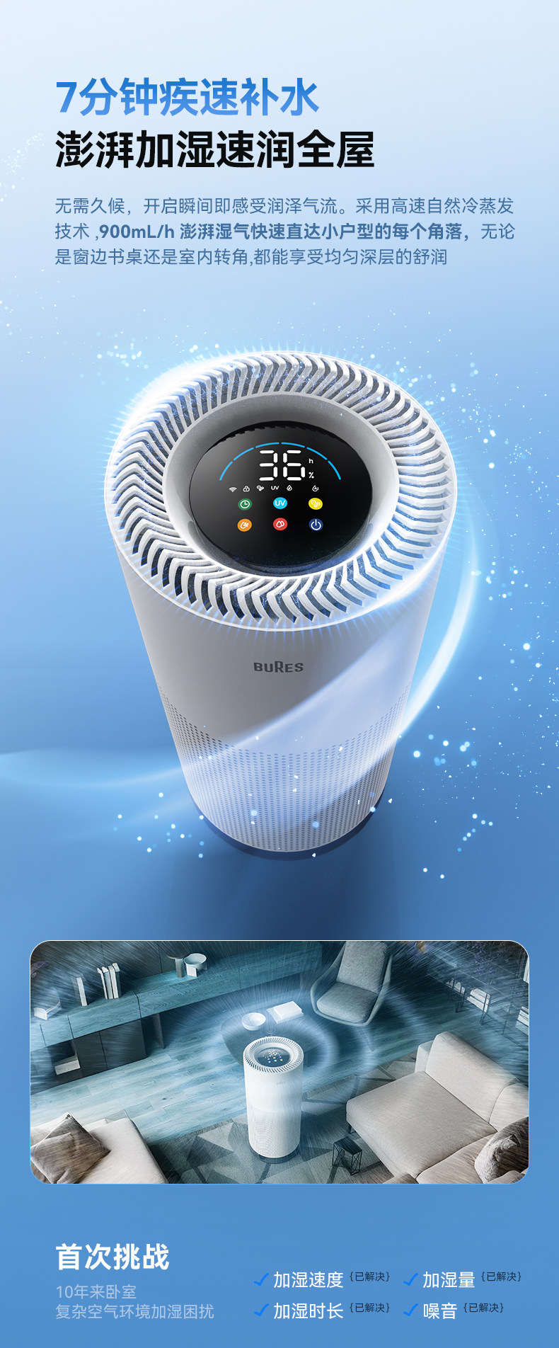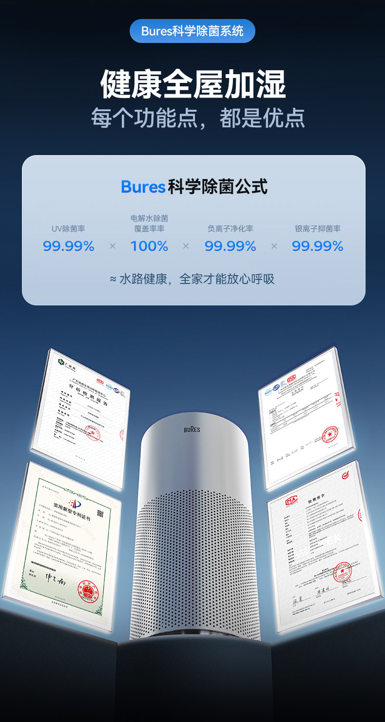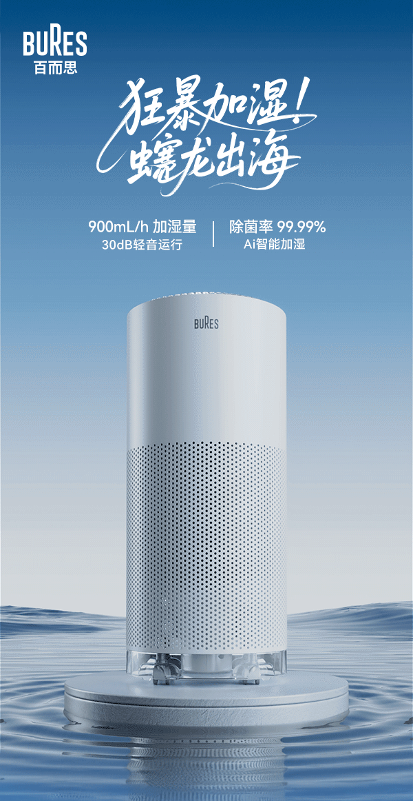 Bures Fog-Free Humidifier for Pregnant Women and Infants, Sterilizing, Quiet, Home Bedroom Air-Conditioned Room Humidification and Purification All-In-One Machine
