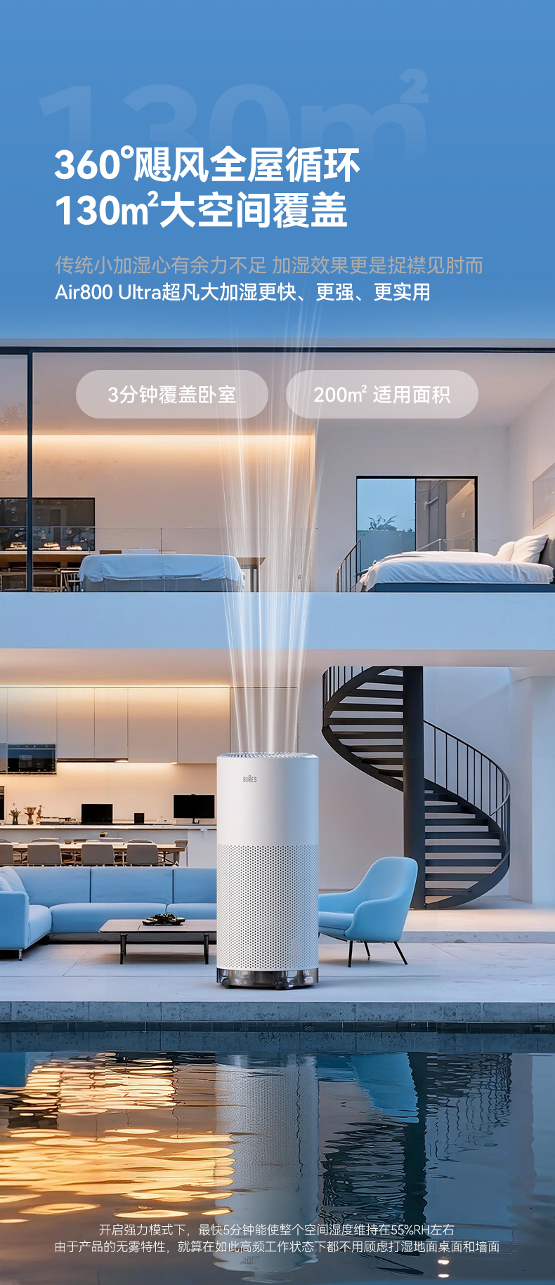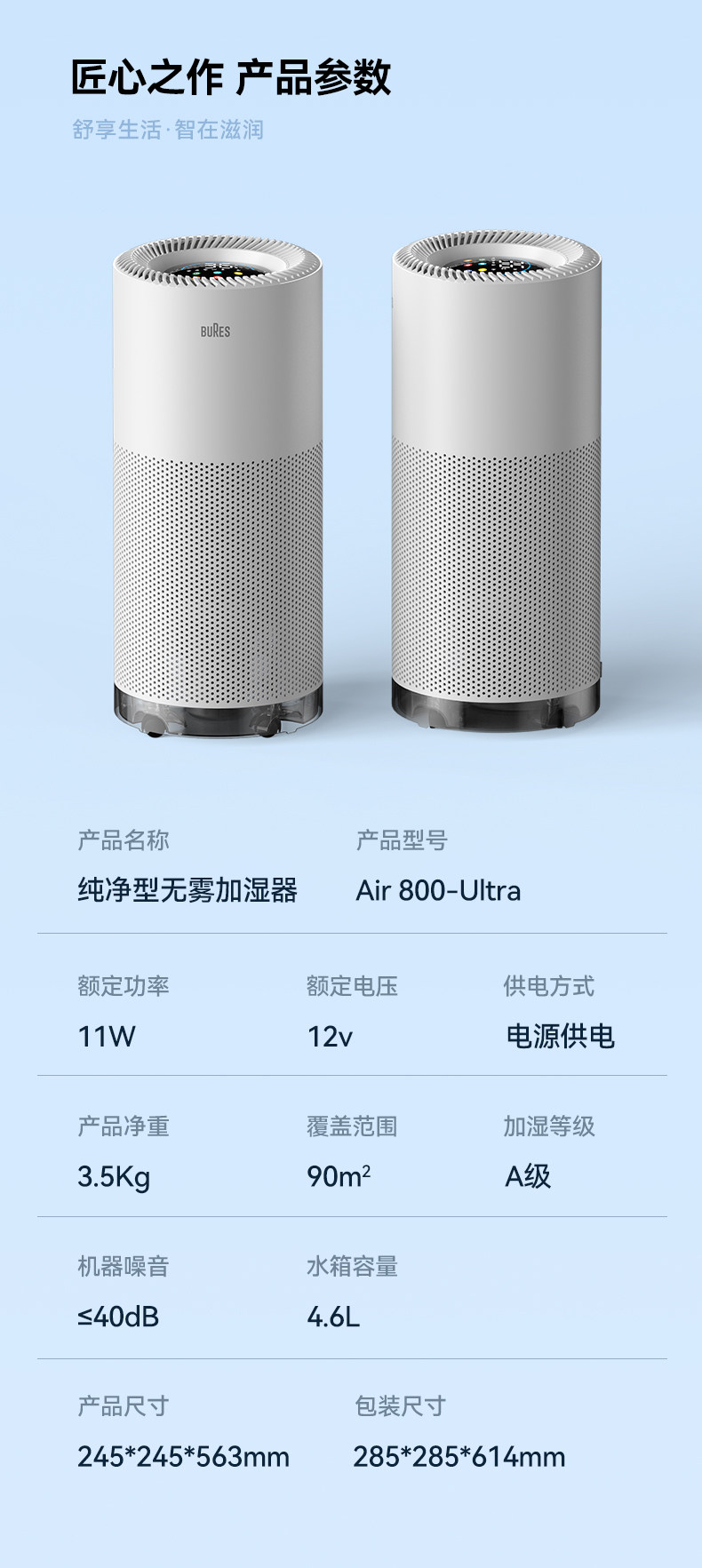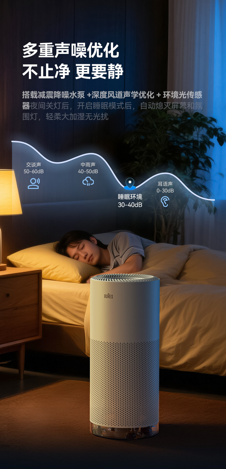 Bures Fog-Free Humidifier for Pregnant Women and Infants, Sterilizing, Quiet, Home Bedroom Air-Conditioned Room Humidification and Purification All-In-One Machine
