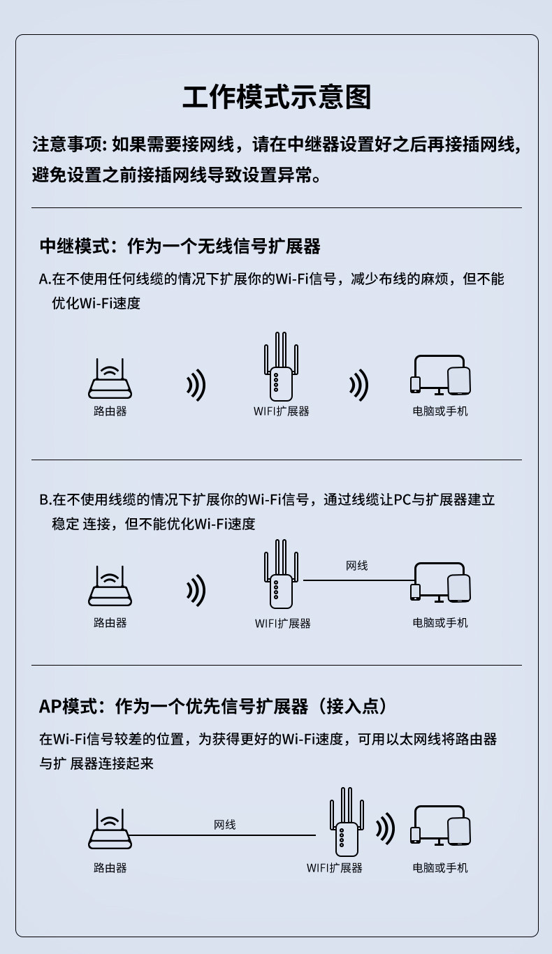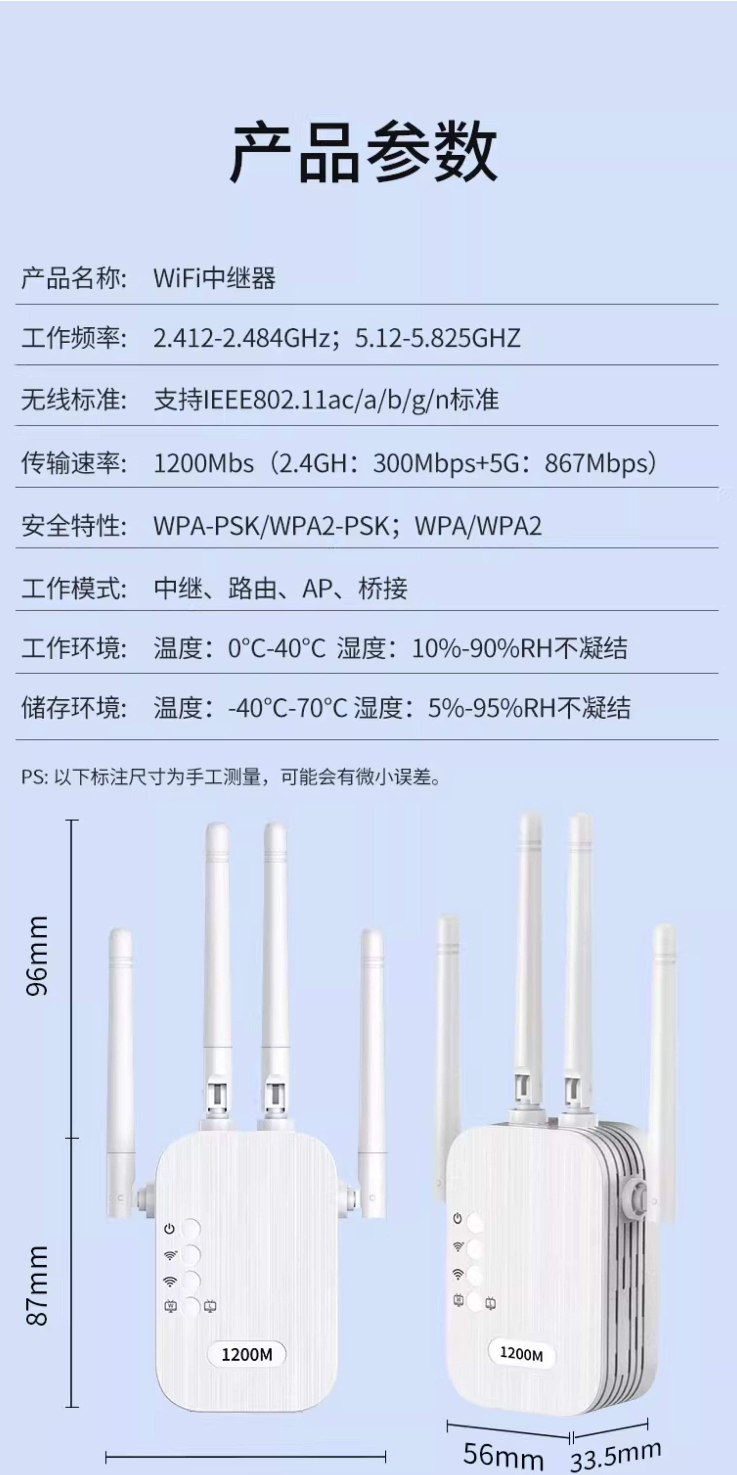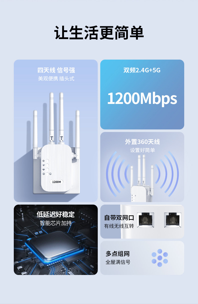| Color Classification | [300Mbps Upgraded Version] Upgraded Four Antennas/Strong Signal through the Wall/Dual Network Ports,[300Mbps Ultimate Edition] Four Antennas/Wps One-Click Connection/Dual Network Ports,[1200Mbps Upgraded Version] Matrix Four Antennas/5G High-Speed 2.4g Wall Penetration/Dual Network Ports,[1200Mbps Standard Version] Enhanced Four Antennas/Dual-Band 2.4+5G/Dual Network Ports,Please Place the Product in a Slot That Does Not Block the Router or Internet Access Devices to Ensure the Effect |