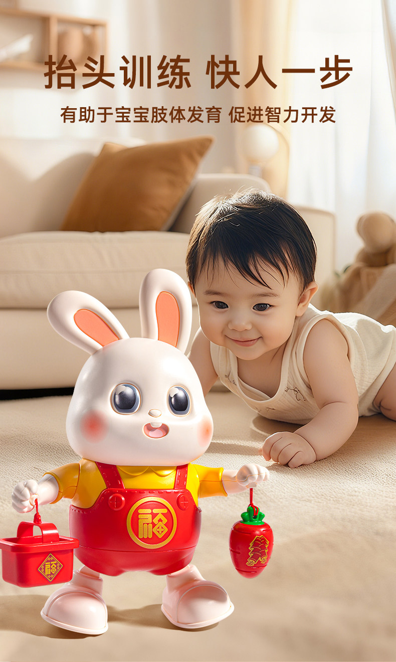 Electric Remote Control Dancing Little Lucky Rabbit Baby Toy for 0 to 6 Months Old Babies to Practice Raising Their Heads and Training Children Aged 1 Year Old