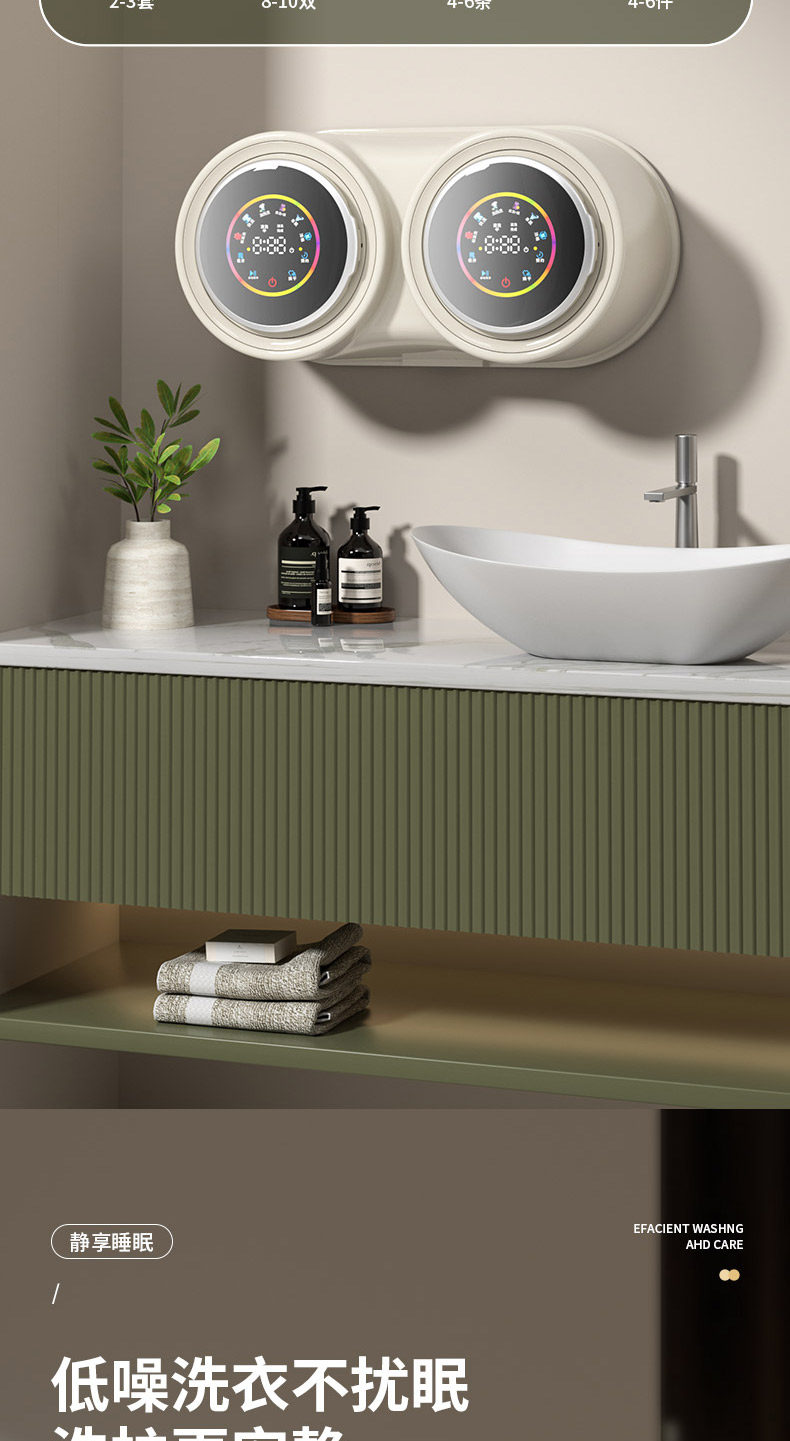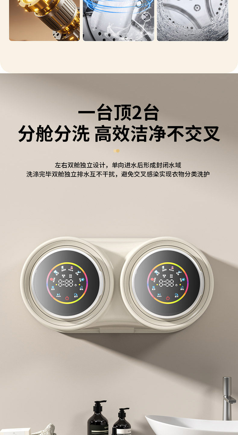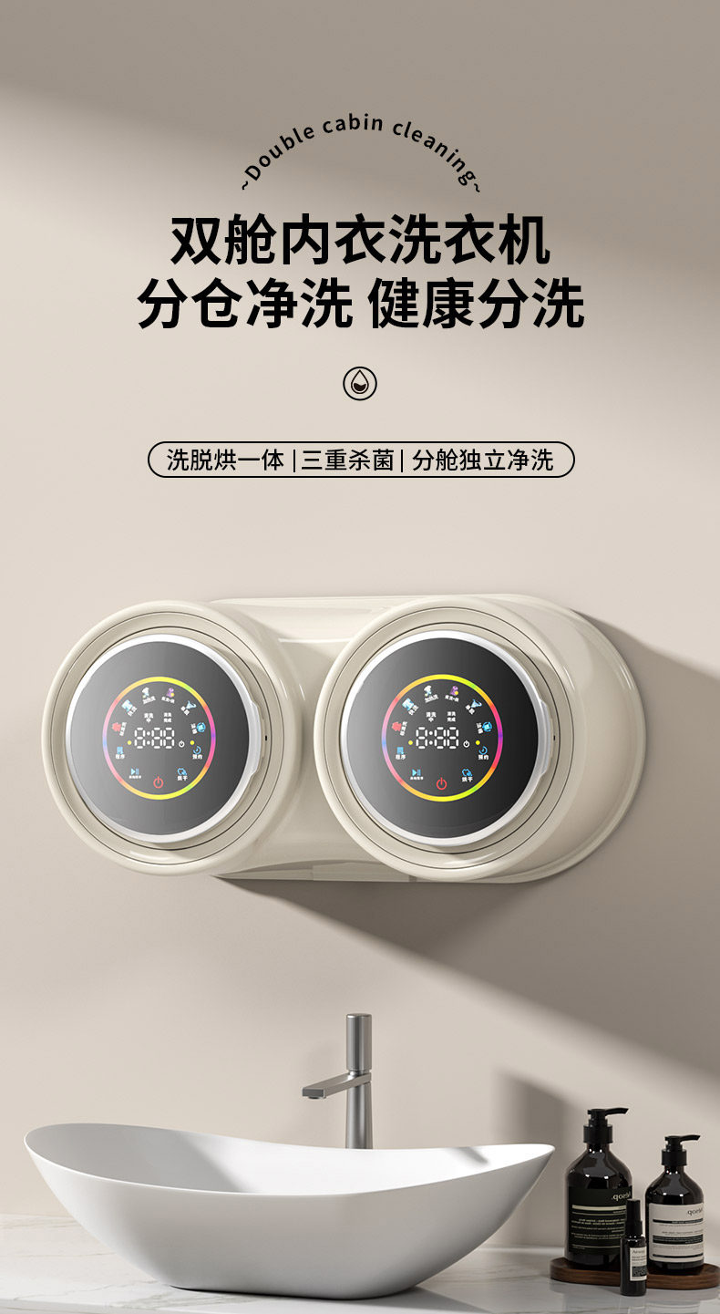 Wall-Mounted Double-Tub Washing Machine for Underwear, Fully Automatic, Small, Specialized, Mini, for Lazy People, Washing, Drying, and Heating All in One