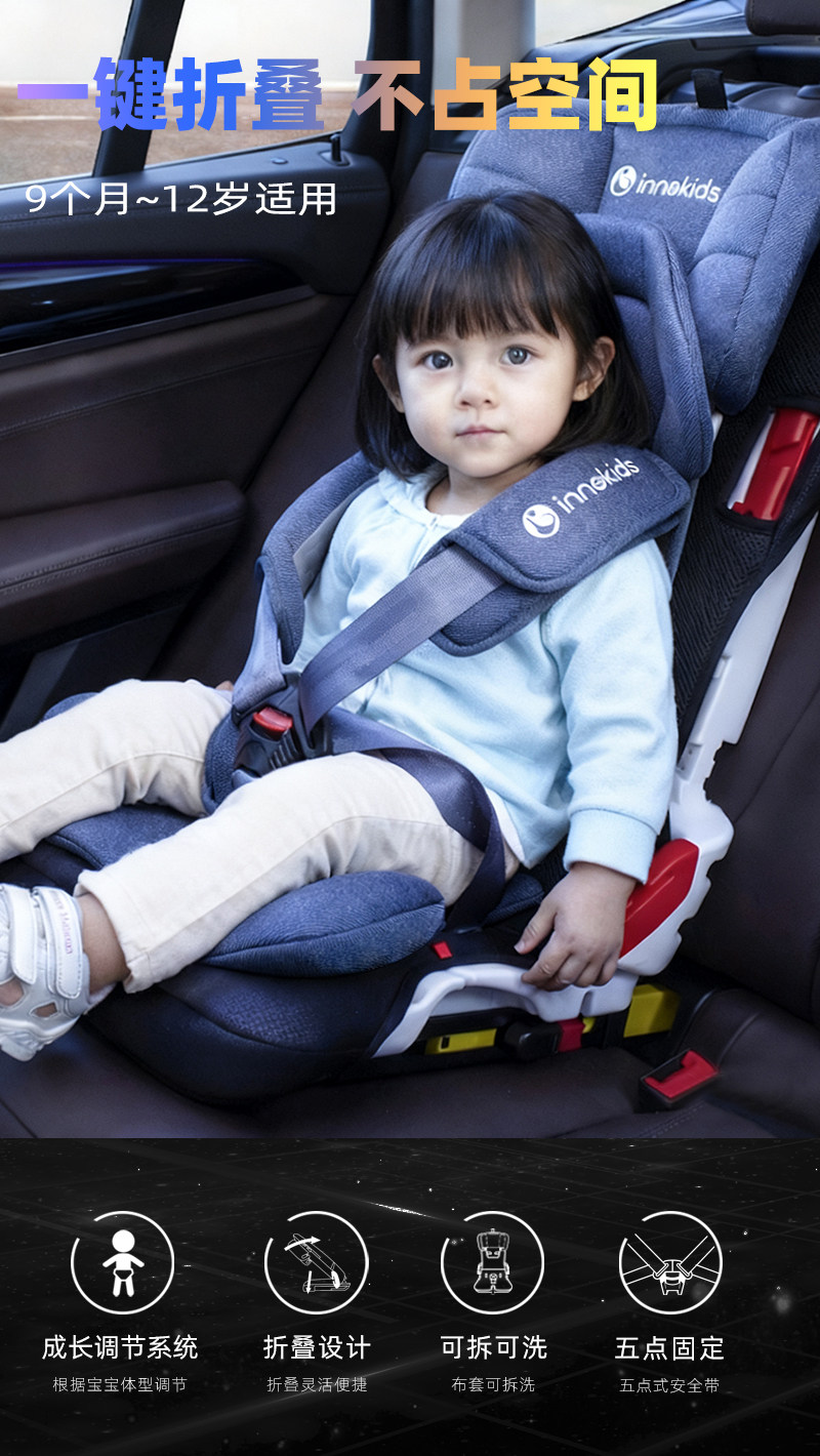 Innokids Car Safety Seat for Older Children, Suitable for Babies from 9 Months to 12 Years Old, Simple, Portable and Foldable