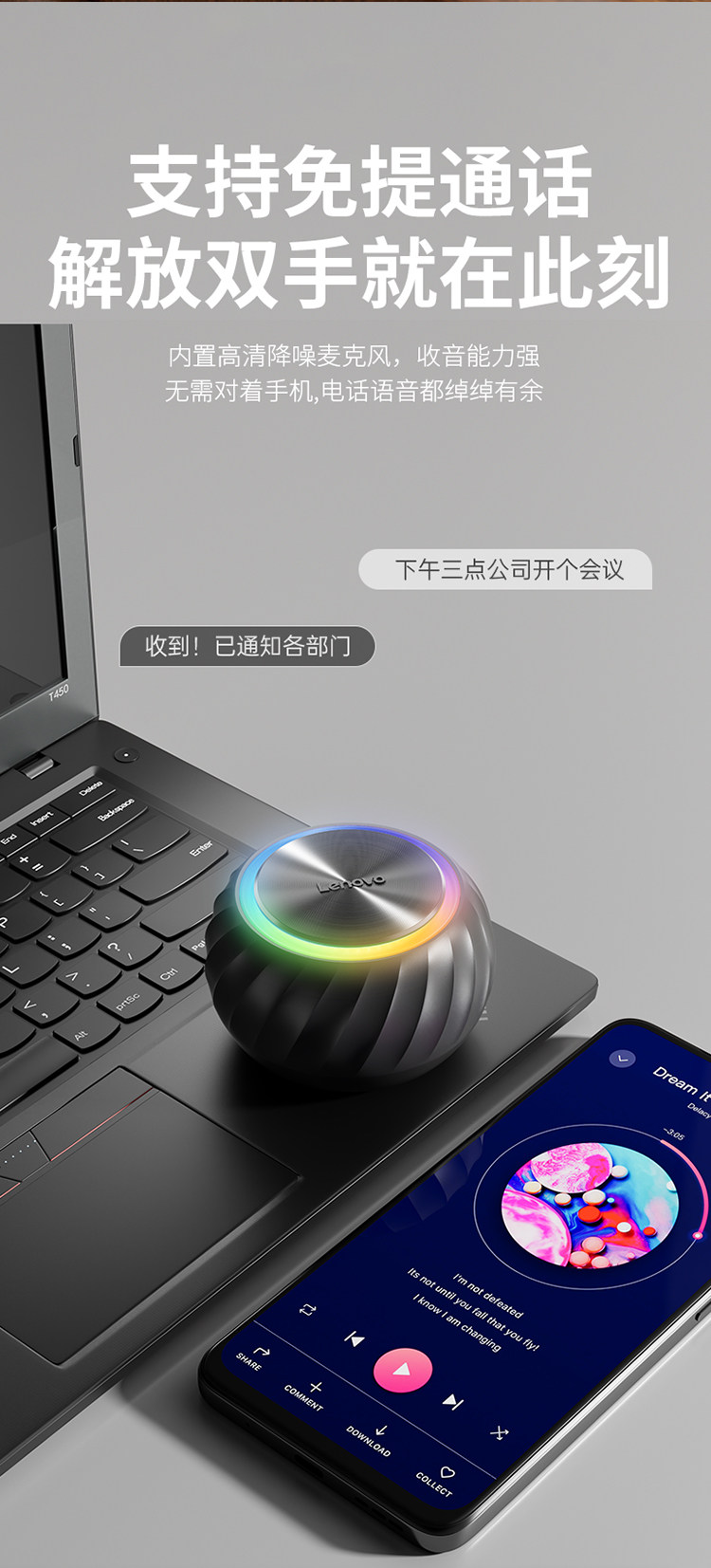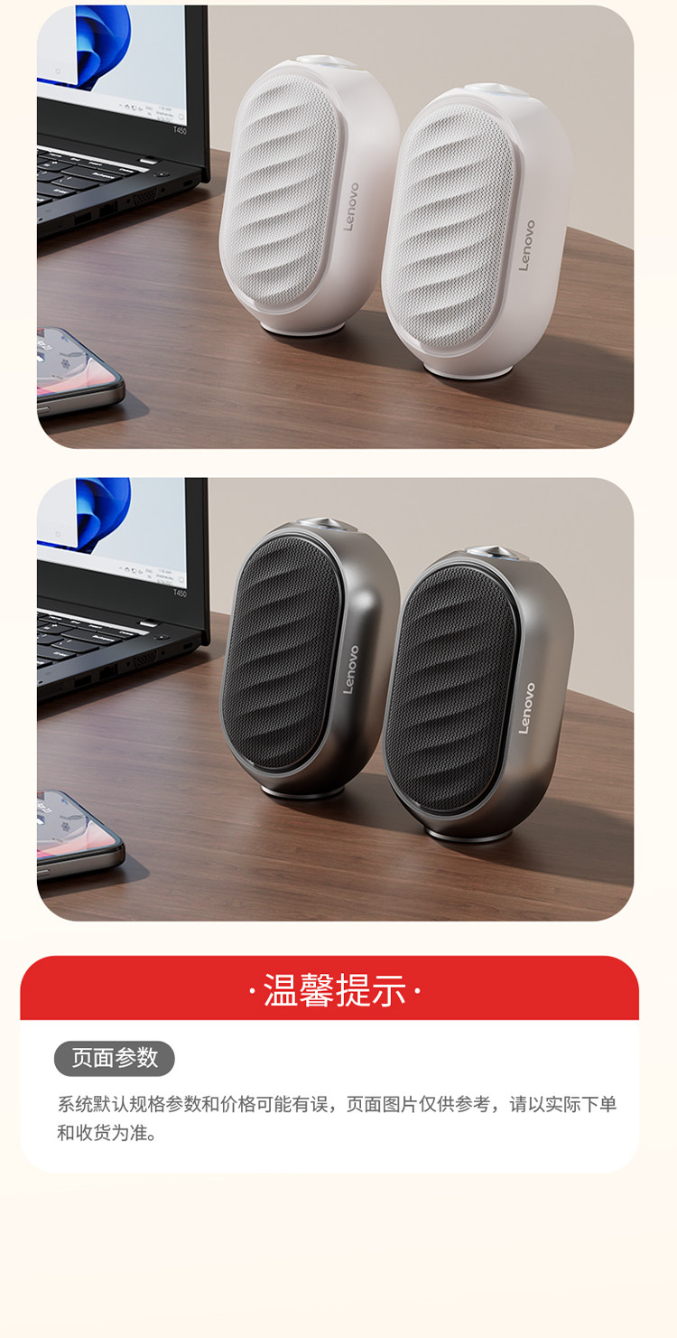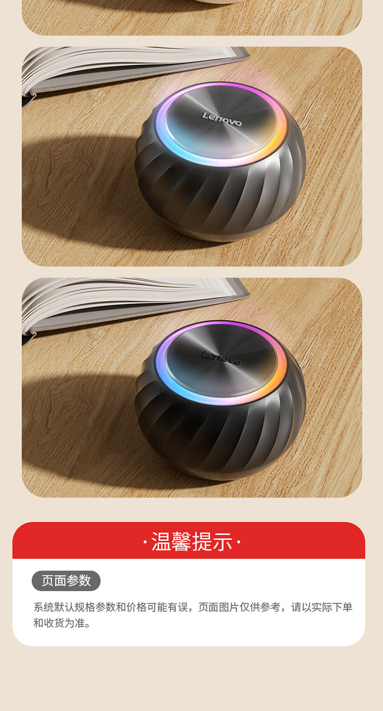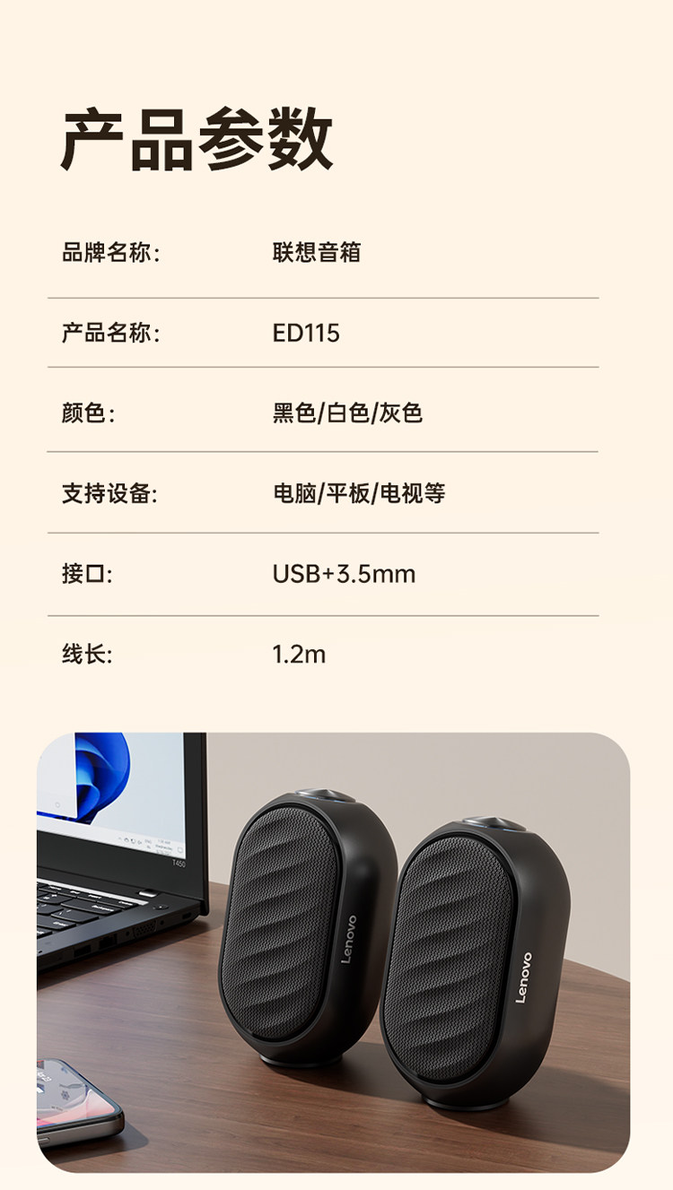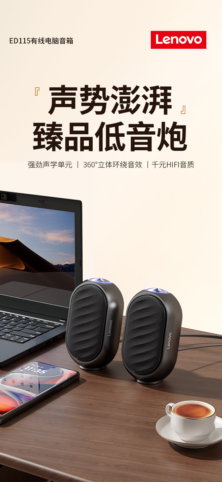 Lenovo Speaker Ed100 Desktop Computer Speaker, Compact and Portable with Colorful Lighting Effects, Desktop Computer Speaker