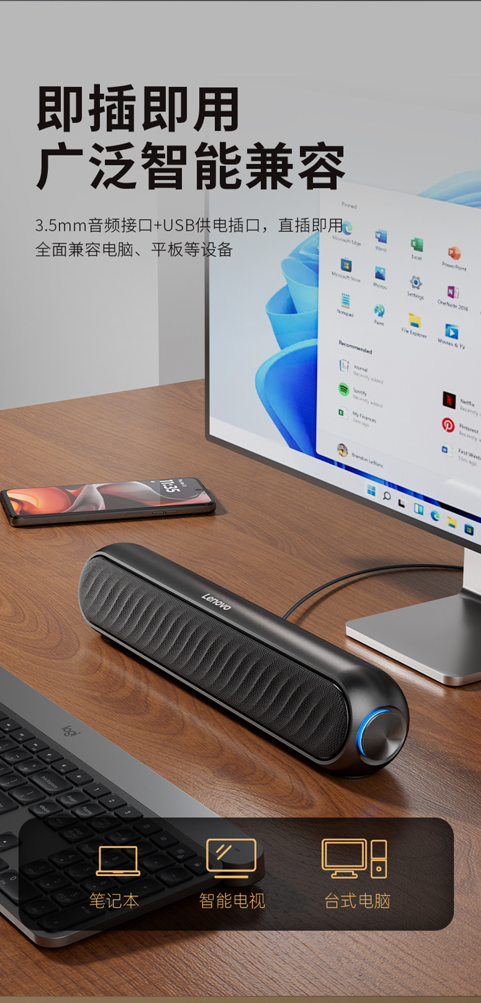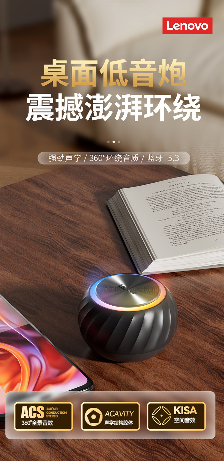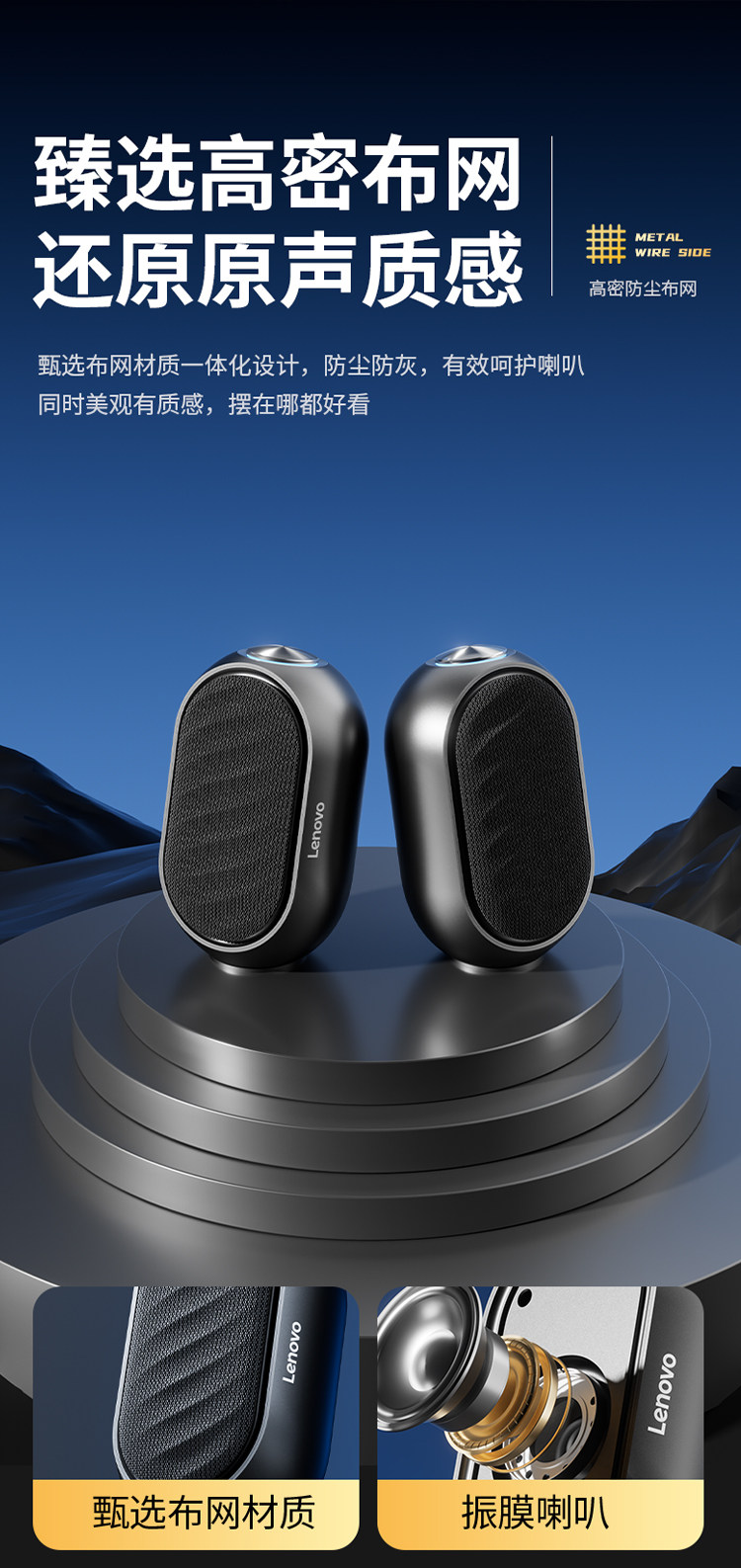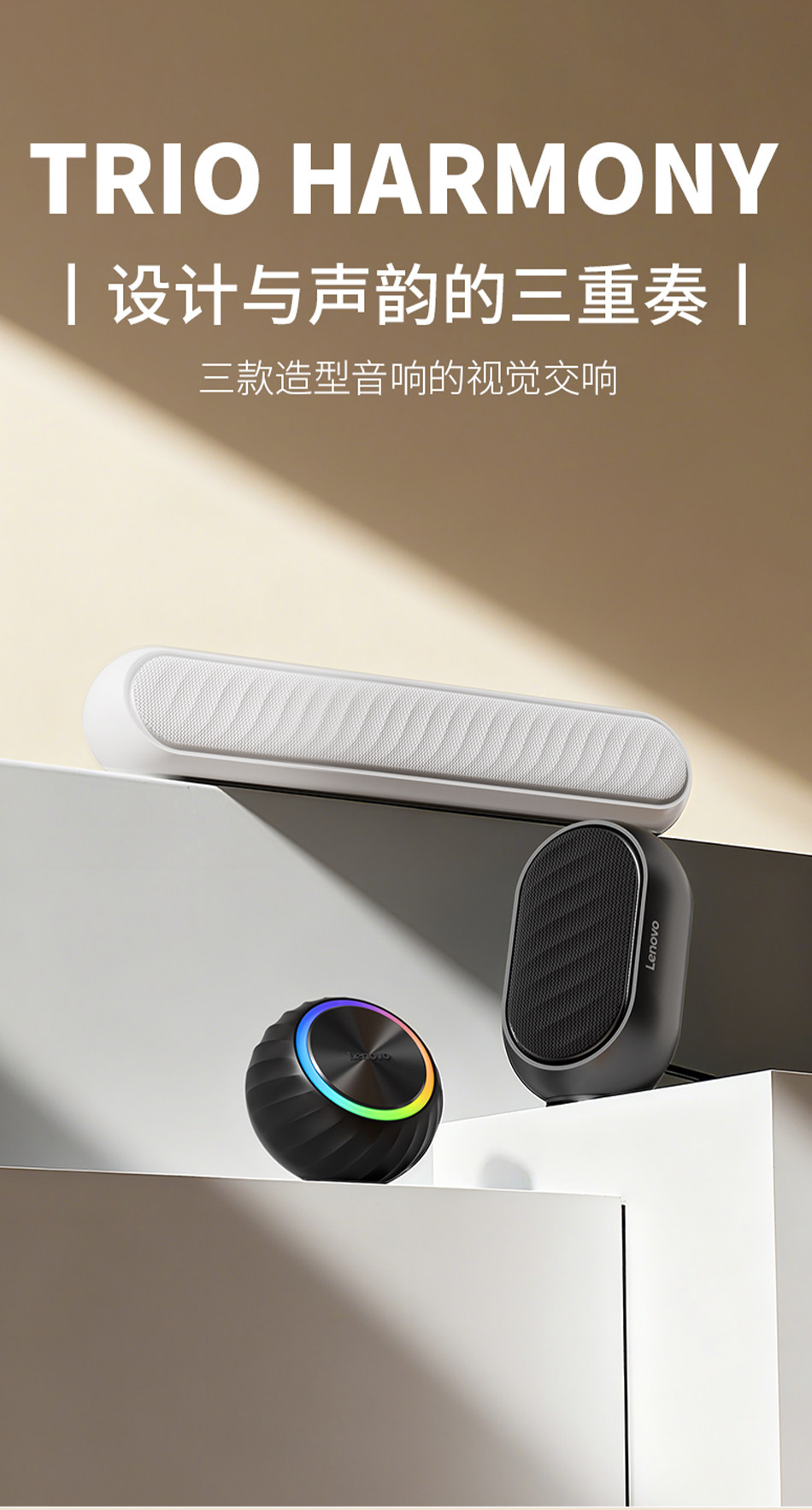 Lenovo Speaker Ed100 Desktop Computer Speaker, Compact and Portable with Colorful Lighting Effects, Desktop Computer Speaker