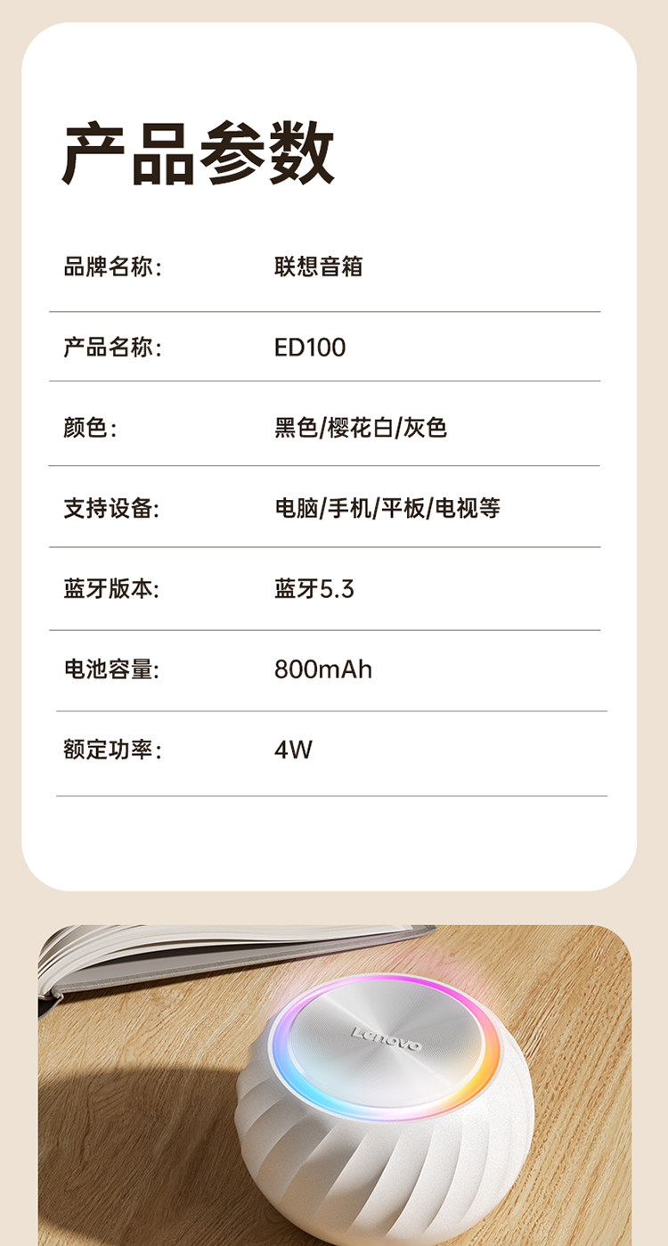 | Color Classification | Ed100 Black [Bluetooth 5.3-Colorful Lighting Effect-360°Surrounding】,Ed100 Sakura White [Bluetooth 5.3-Colorful Lighting Effect-360°Surrounding】,Ed110 Black [Integrated Metal Iron Mesh-Cool Lighting Effect-360°Surrounding】,Ed110 Sakura White [Integrated Metal Iron Mesh-Cool Lighting Effect-360°Surrounding】,Ed115 Black [Hifi Sound Quality-360°Stereo Sound-Diaphragm Speaker],Ed115 Sakura White [Hifi Sound Quality-360°Stereo Sound-Diaphragm Speaker],Ed110 Gray [Integrated Metal Iron Mesh-Cool Lighting Effect-360°Surrounding】,Ed100 Gray [Bluetooth 5.3-Colorful Lighting Effect-360°Surrounding】,Ed115 Gray [Hifi Sound Quality-360 ° Stereo Sound-Diaphragm Speaker] |