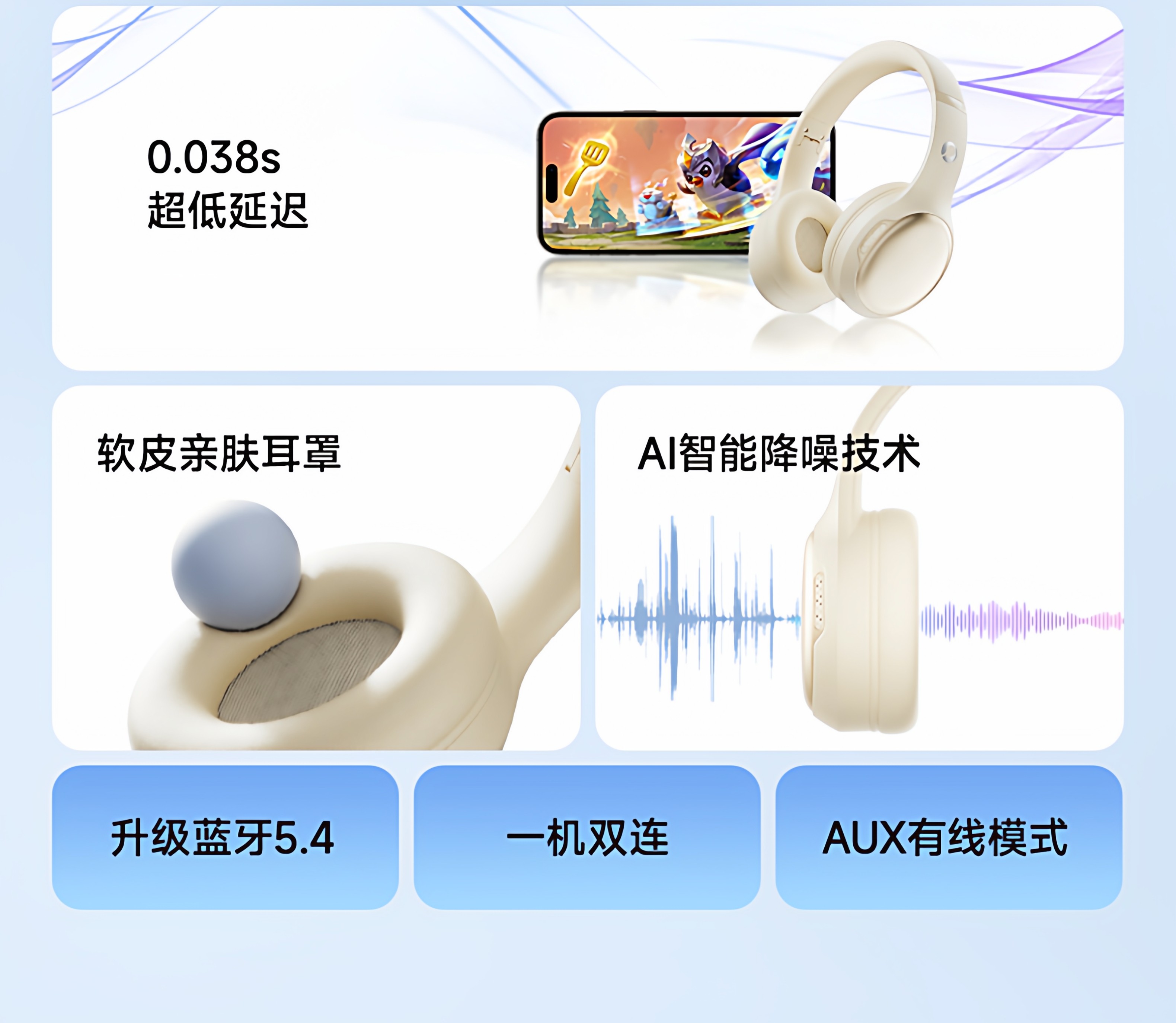 Kepeng 2025 New Over-Ear Headphones Bluetooth Active Noise Reduction Gaming E-Sports Dedicated Wired and Wireless Headset