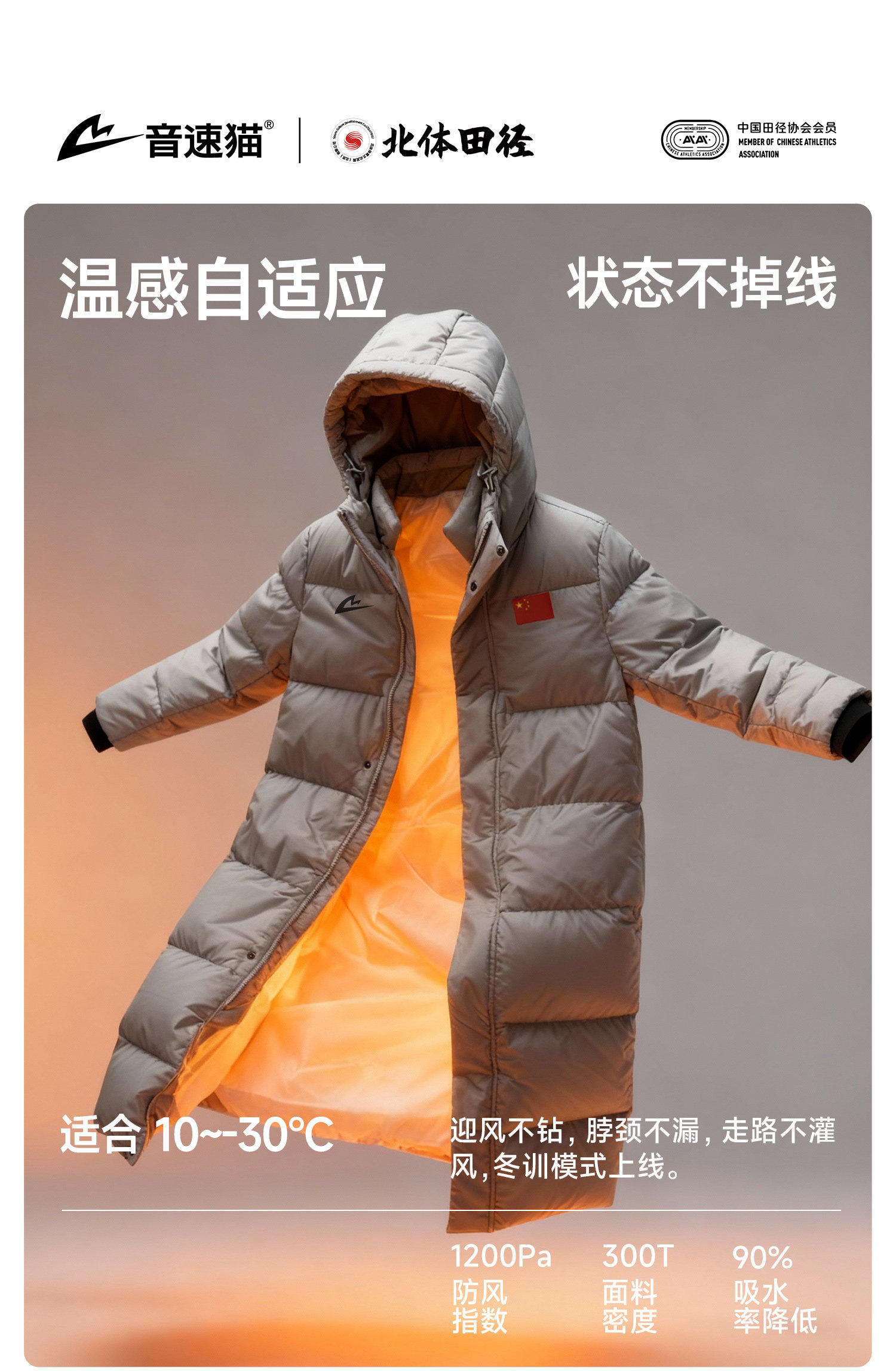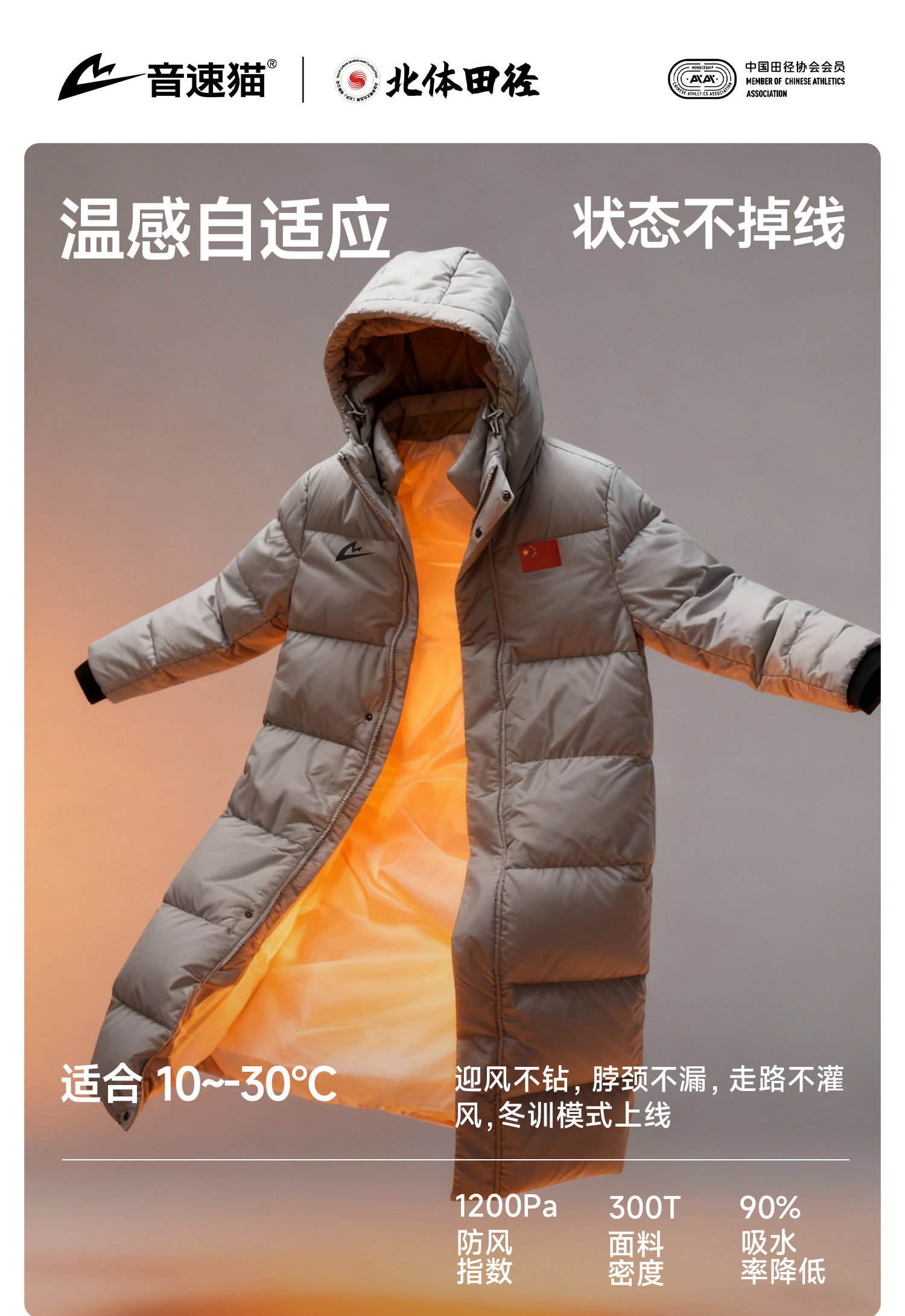 [North Sports Joint Research]Sonic Cat Heat Wave Series Long down Jacket Auto-Fit Thickened Coat Winter Clothing