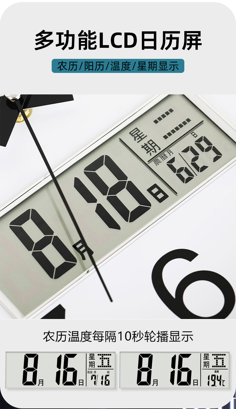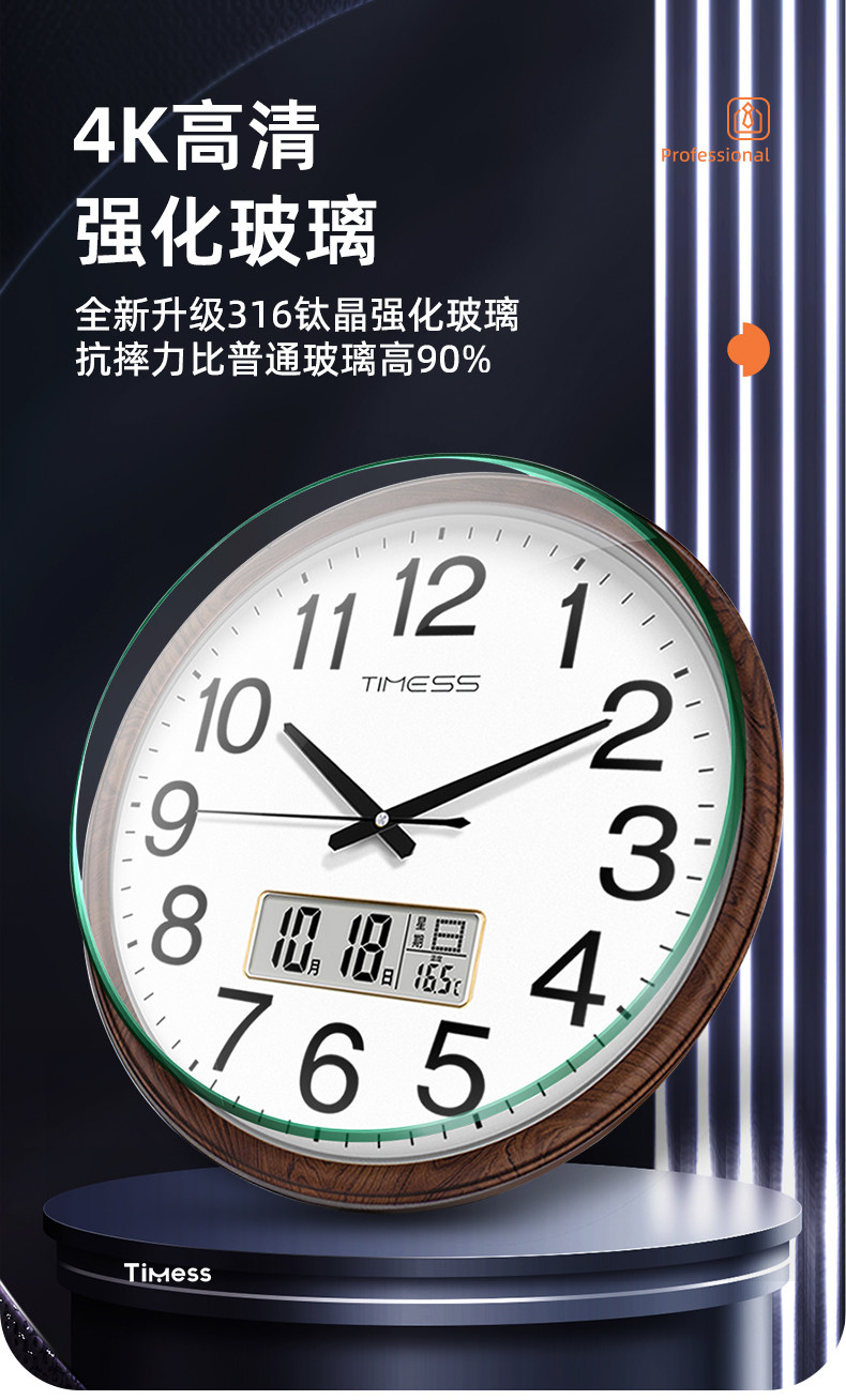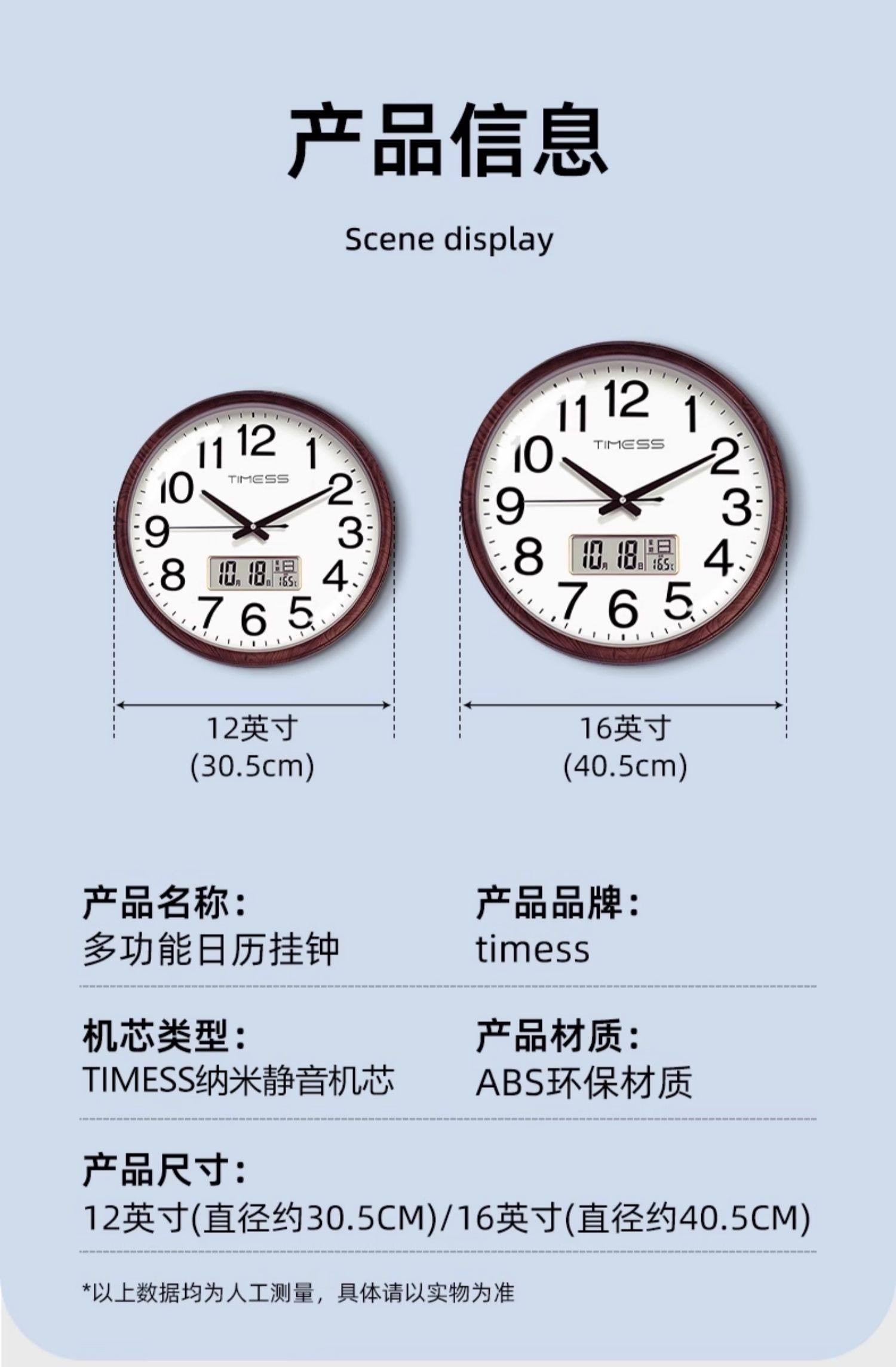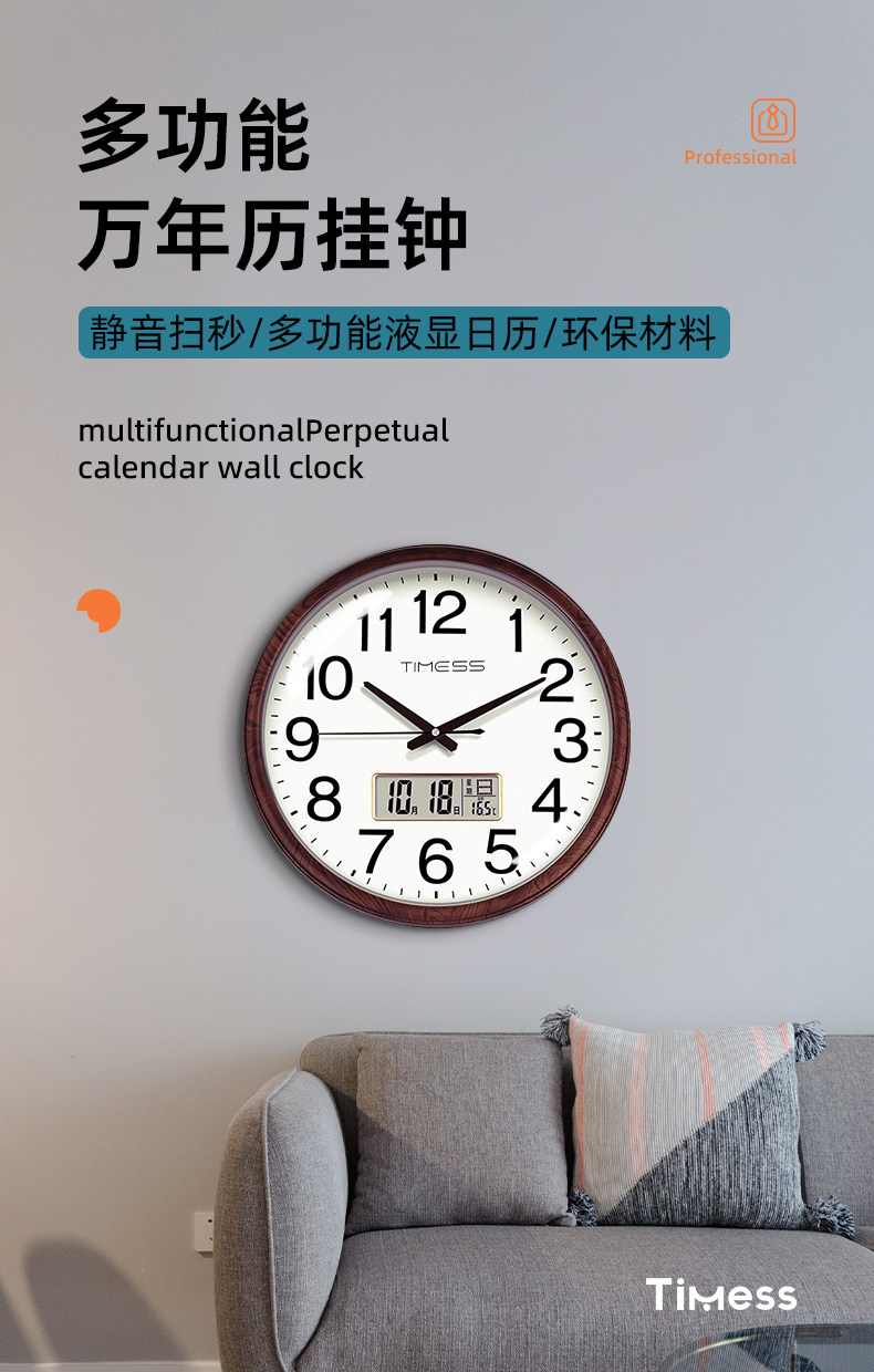 Timess Clock Wall Clock Living Room Silent Clock Wall-Mounted Calendar Home Fashion 2025 New Model Clock Quartz Electronic
