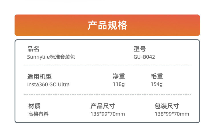 Sunnylife Insta360 Go Ultra Storage Bag Standard Set Bag Anti-Fall Protective Case Accessories