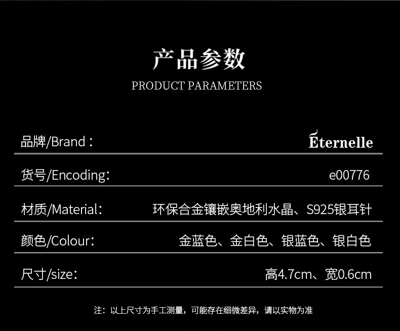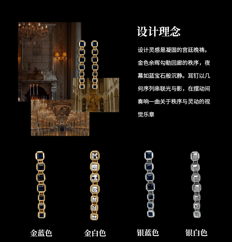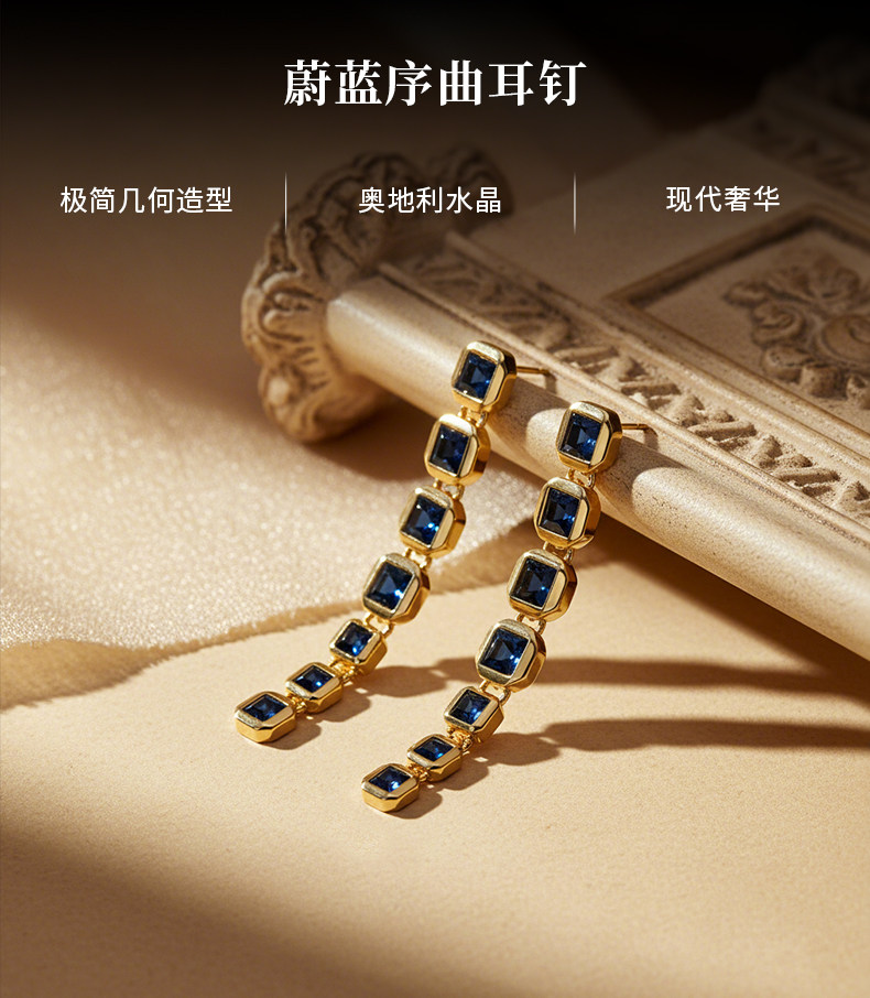 Eternelle French Eternal Blue Overture Earrings Long Tassel Design High-End Exquisite Earrings