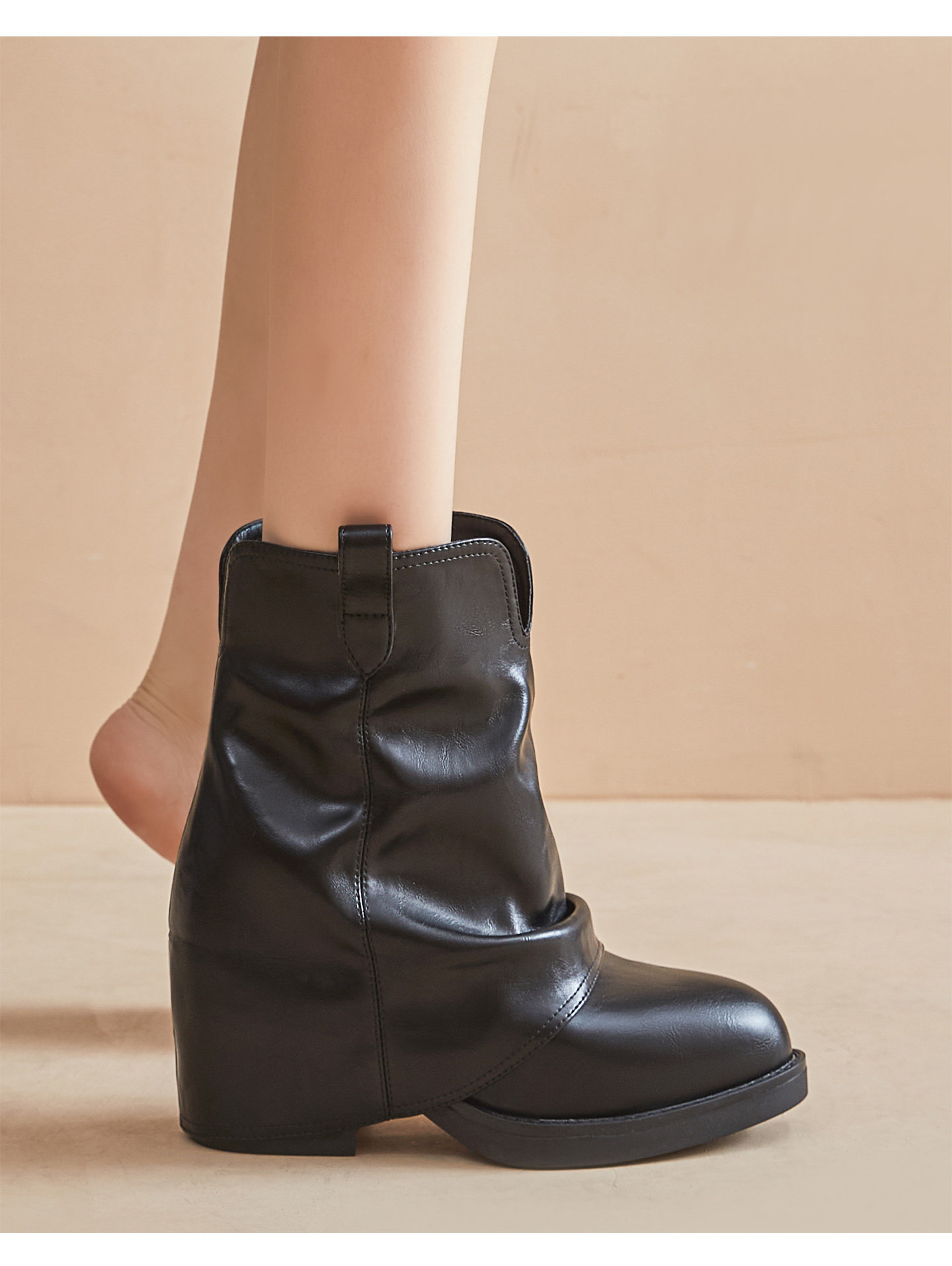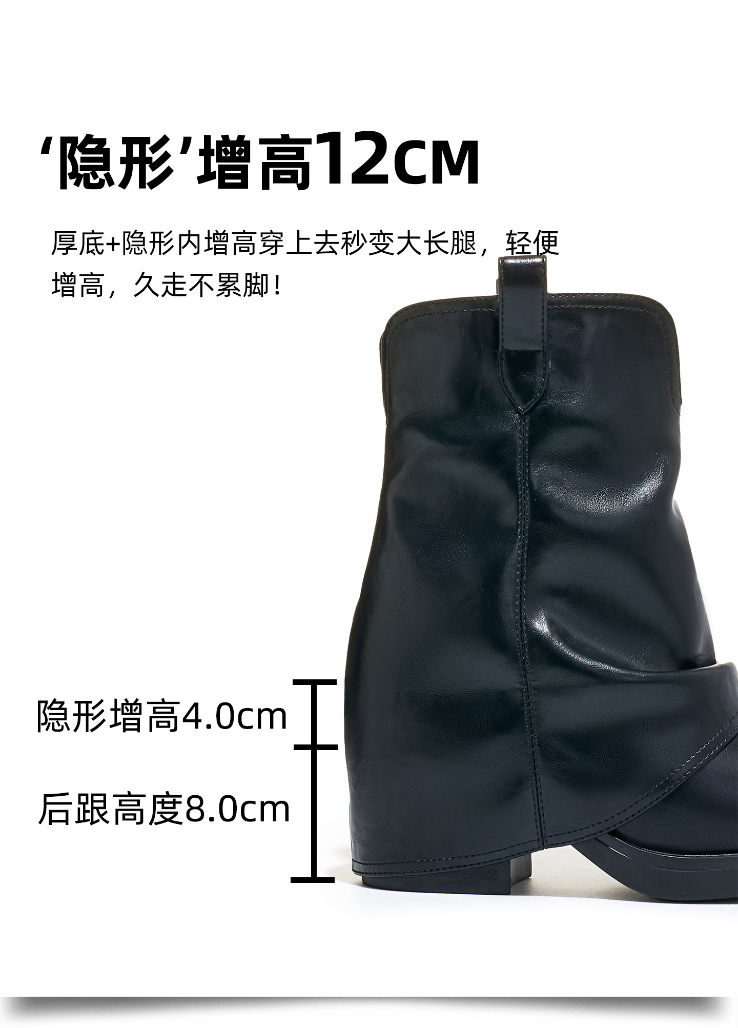 Pointed-Toe Martin Boots for Women, 2025 Autumn and Winter New Retro Chunky Heel Bootcut Boots, 12cm Thick-Soled Height-Increasing Women's Boots
