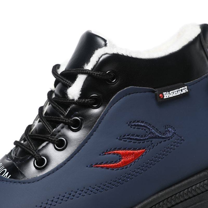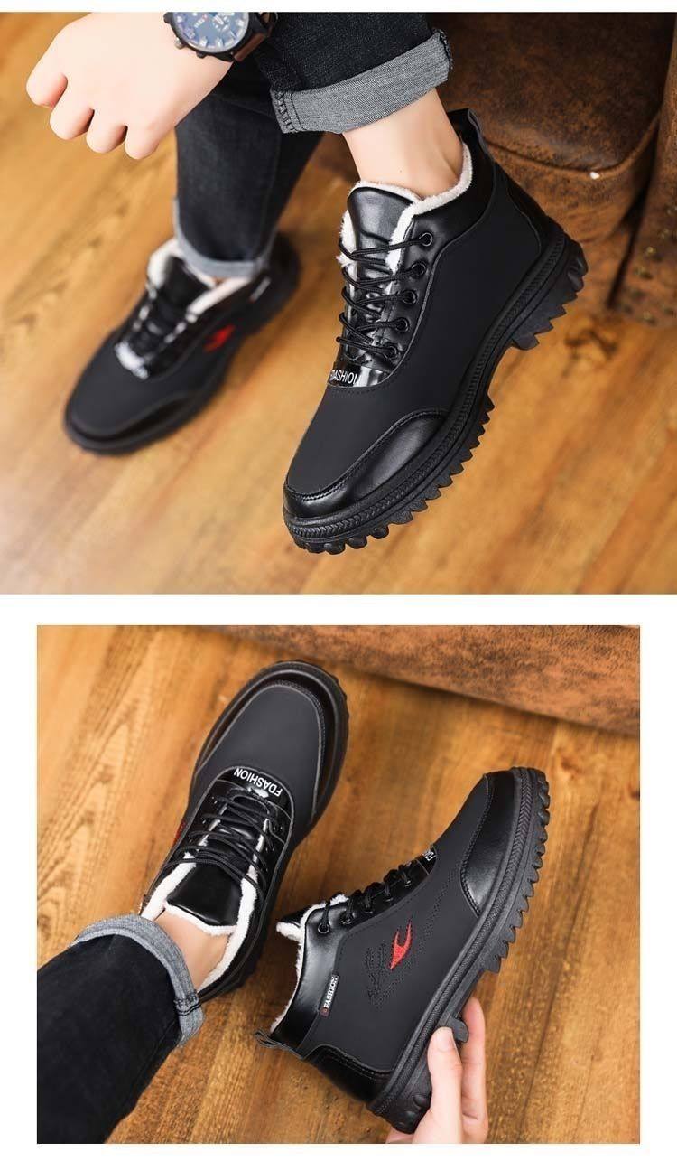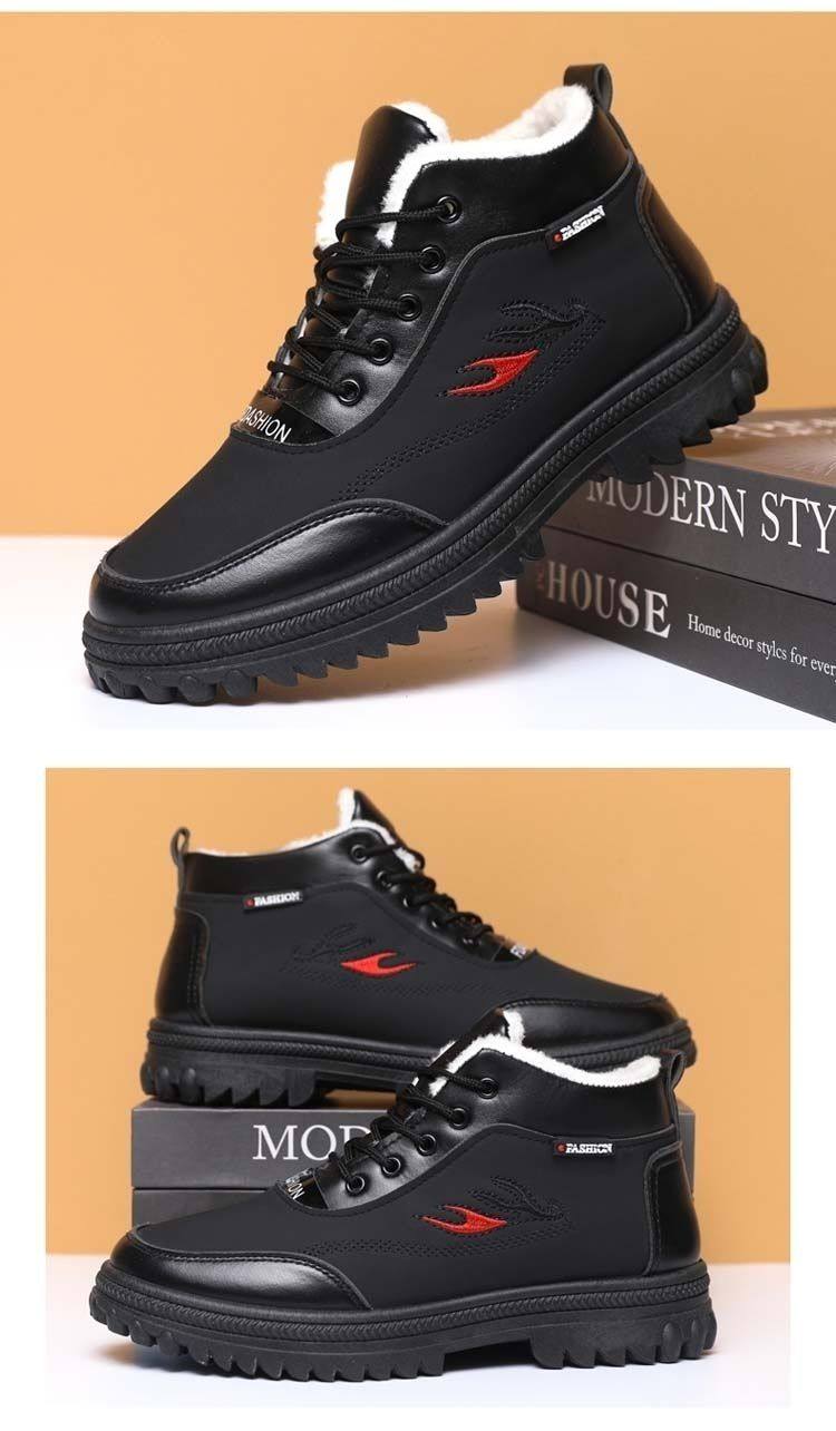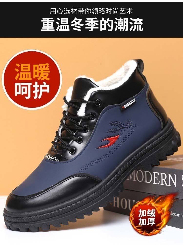 Paul Daflyn Men's Winter Warm Cotton Shoes with Plush Lining, High-Top Men's Shoes, Thickened Leather Boots, Men's Casual Snow Boots