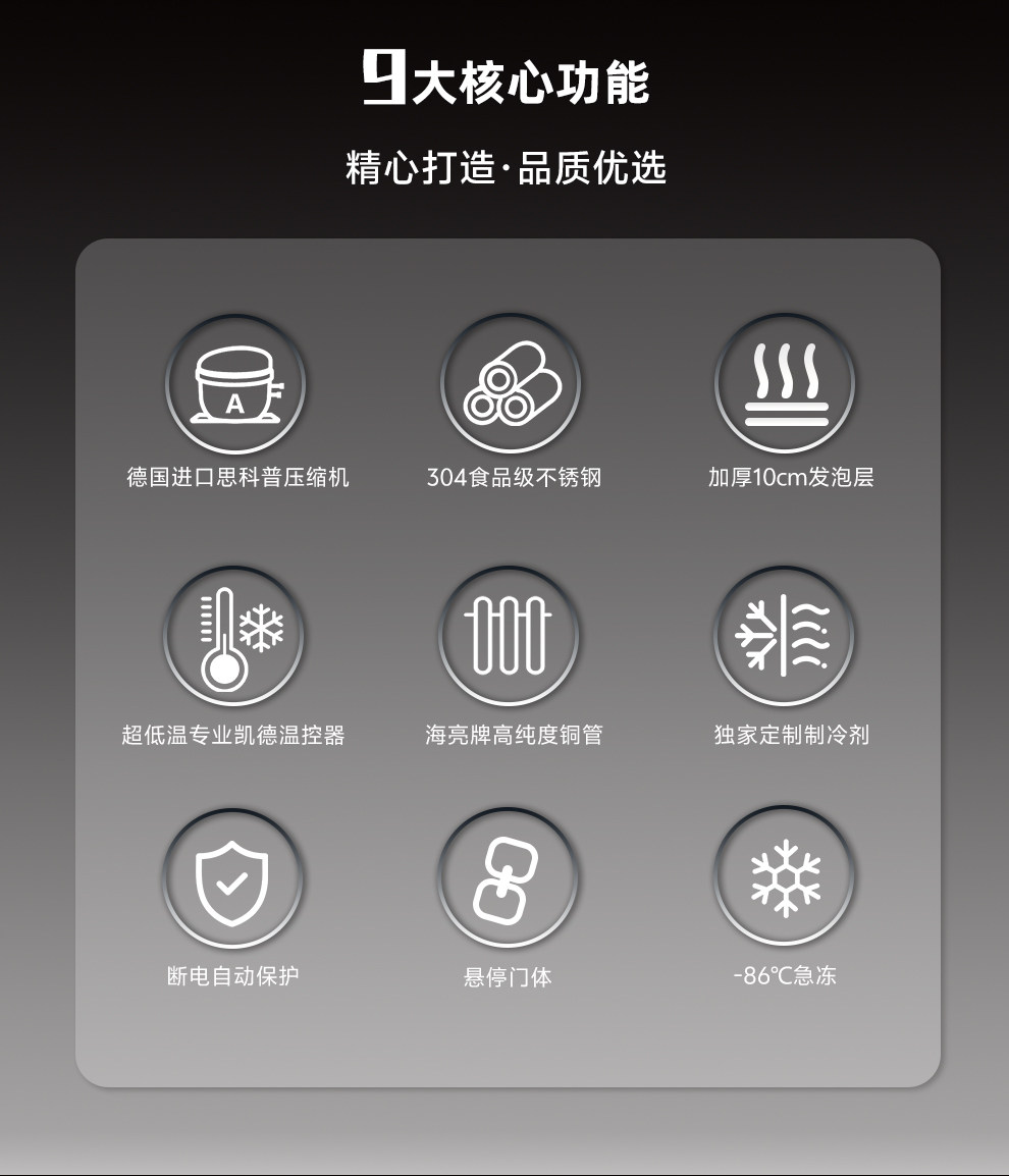 Ultra-Low Temperature Freezer Minus 60 Degrees Commercial Large-Capacity Minus 80 Degree Freezer Refrigerator Deep-Sea Seafood Quick Freezing Cabinet