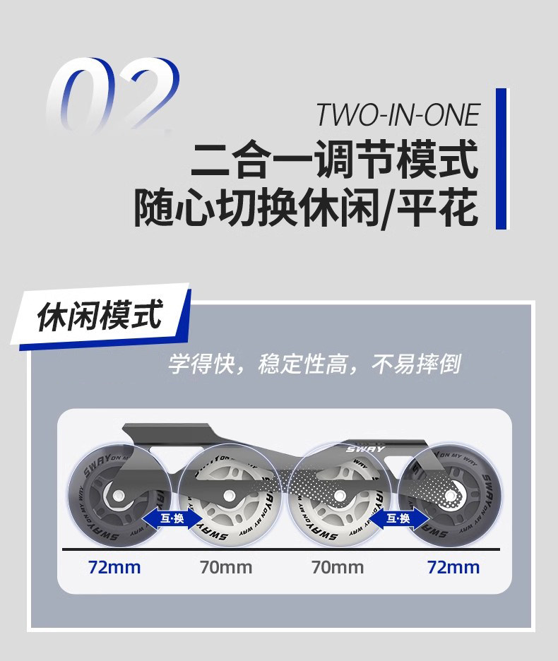 Sway W2 Roller Skates for Adults, Ice Skating, Roller Skating, Women's Adult Men's Professional Freestyle Inline Skates, College Student Skates