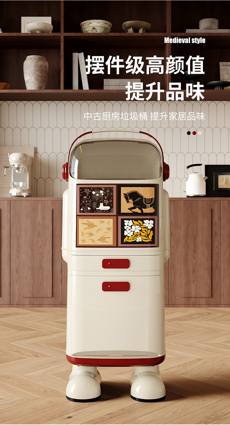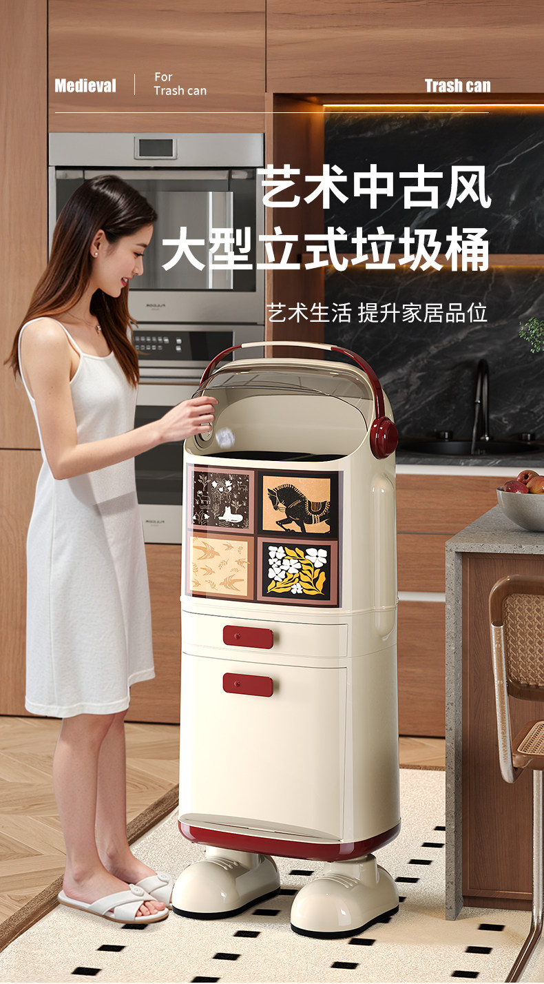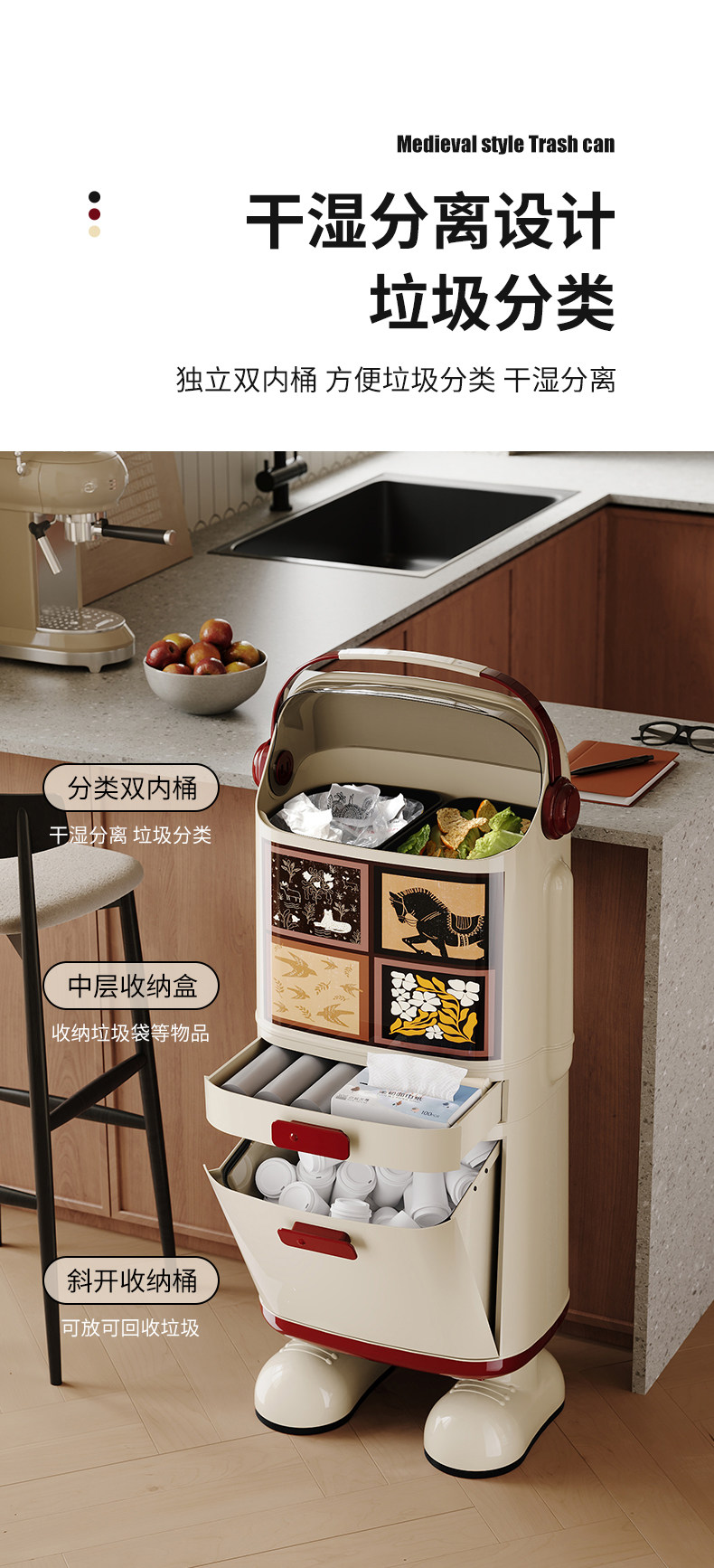 Kitchen Trash Can for Home Use with Lid, 2025 New Model, Japanese-Style Large Capacity, High Model, Odor-Proof, for Separating Dry and Wet Waste