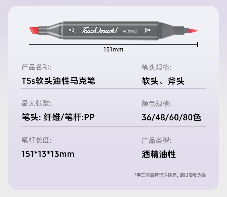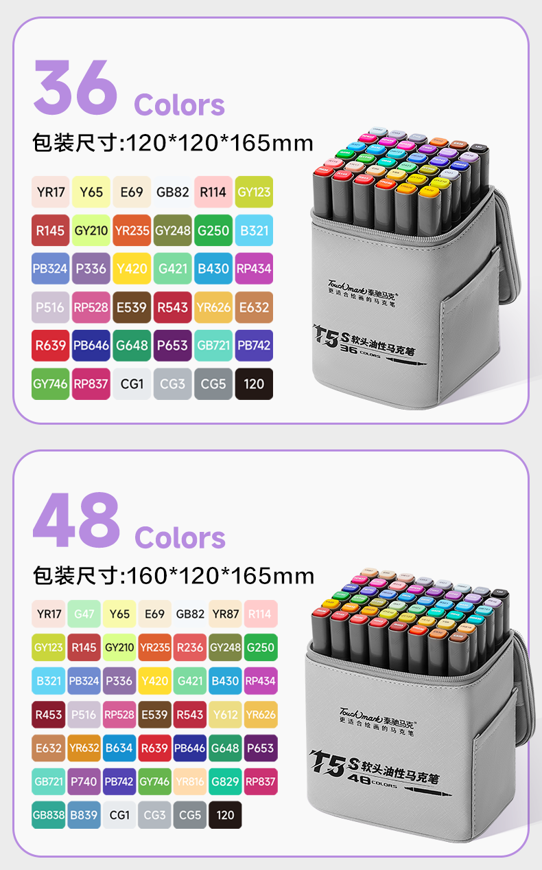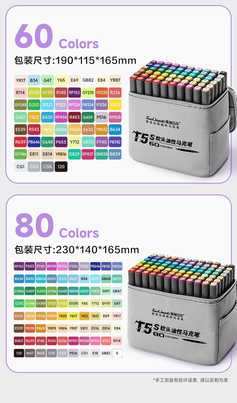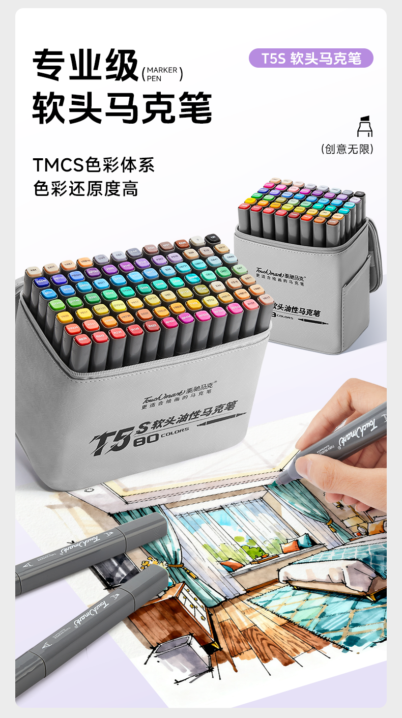 Touchmark Soft-Tip Oil-Based Marker Pens for Art Students, 48/60/80 Colors, Dual-Tip Drawing Pen Set for Elementary and Middle School Students, Hand-Drawn Anime Design Watercolor Pens, Stackable Colors, Suitable for Exams