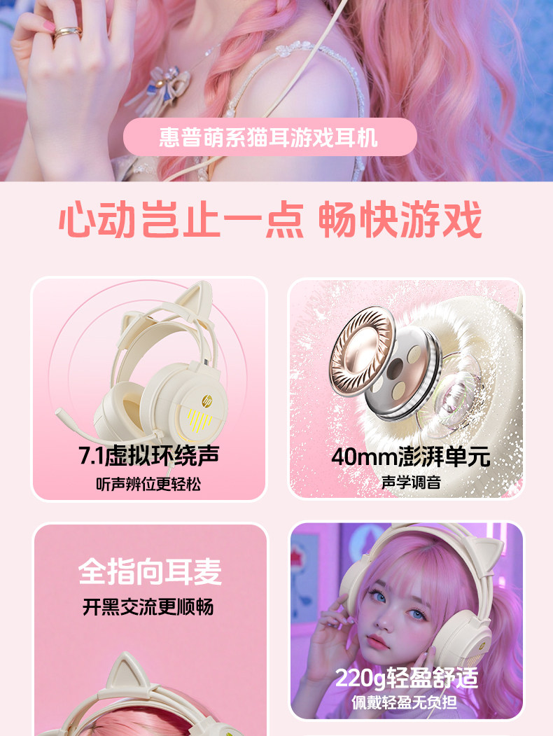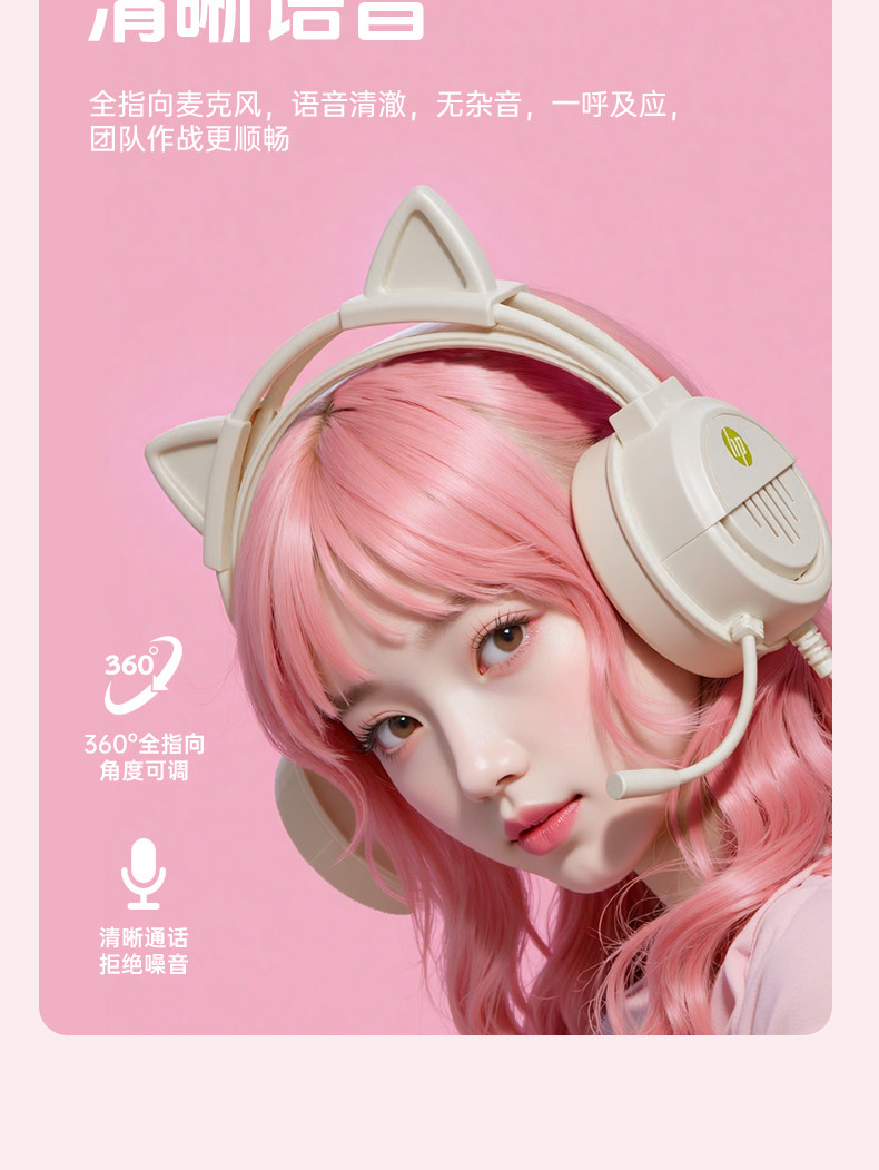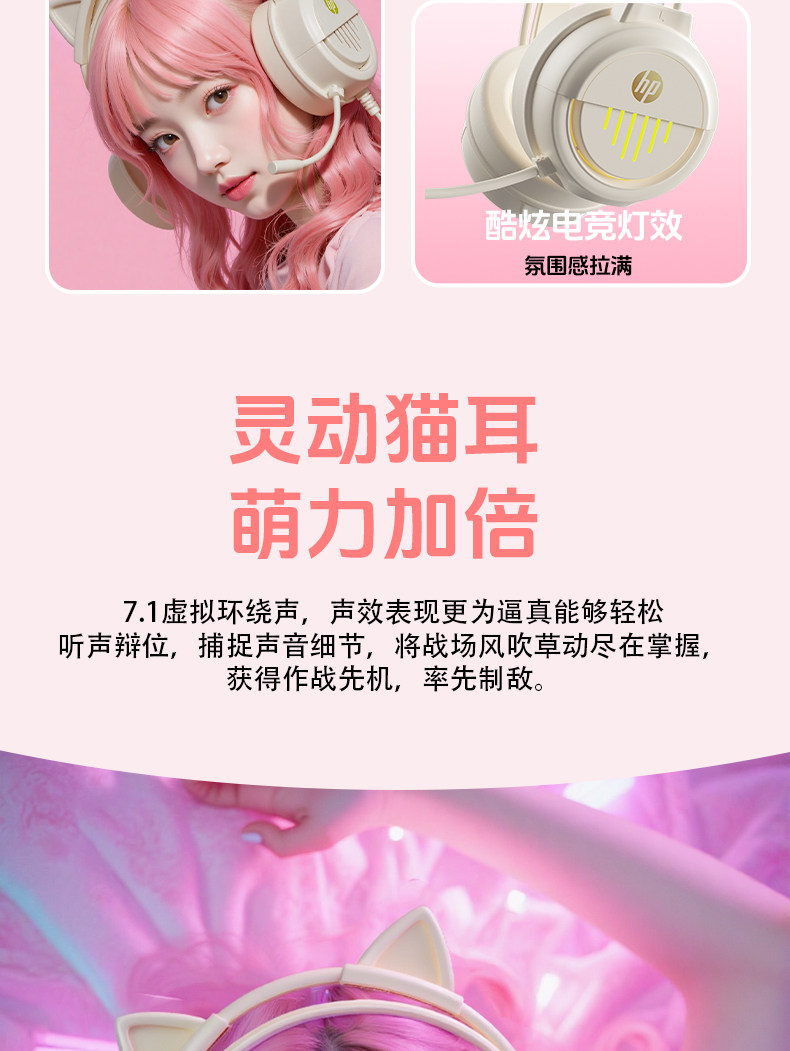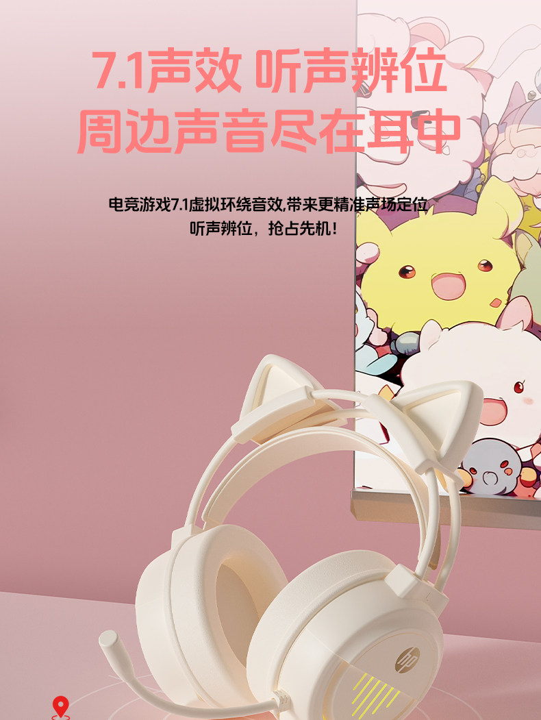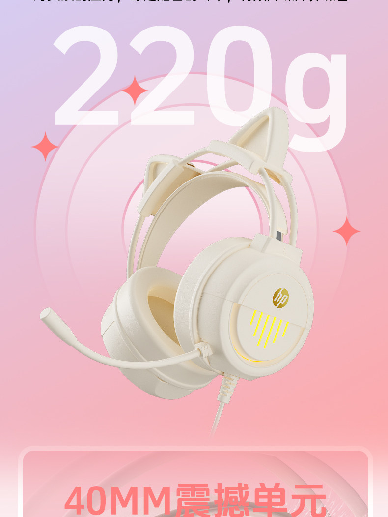 Hp Cat Ear Gaming Headset, Wired, Dedicated for E-Sports, Desktop Computer, Laptop, Cute for Girls