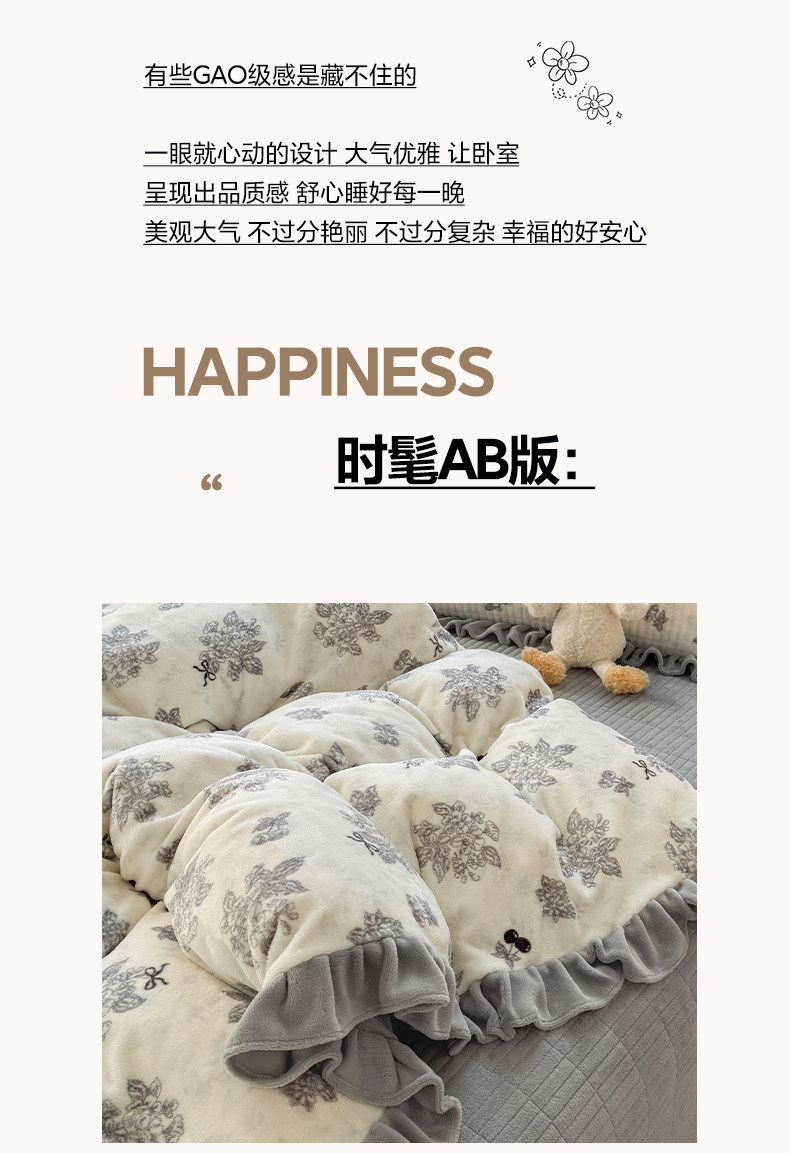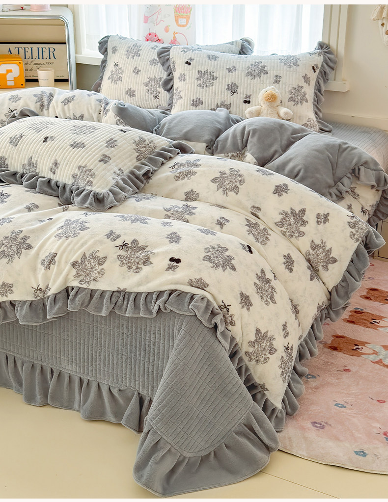 French-Style Bed Cover Four-Piece Set, Milk Velvet 2025 New Winter Coral Fleece Duvet Cover, Thickened Quilted Bed Sheet