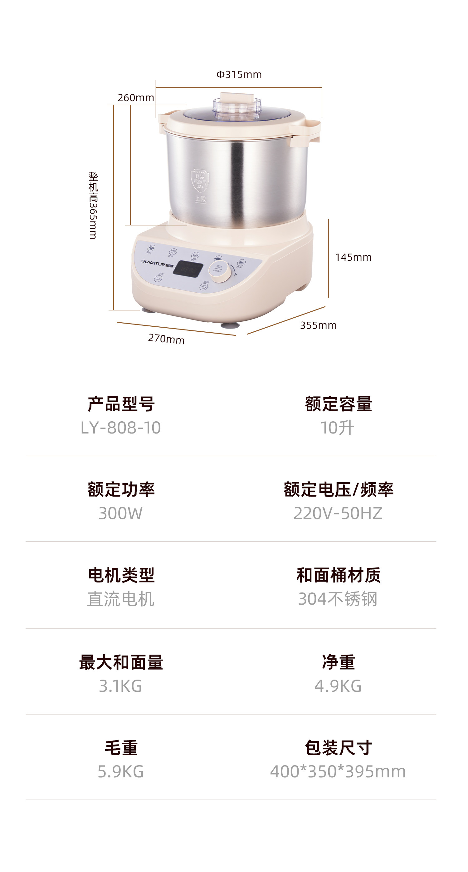 | Bowl Capacity | 10L |