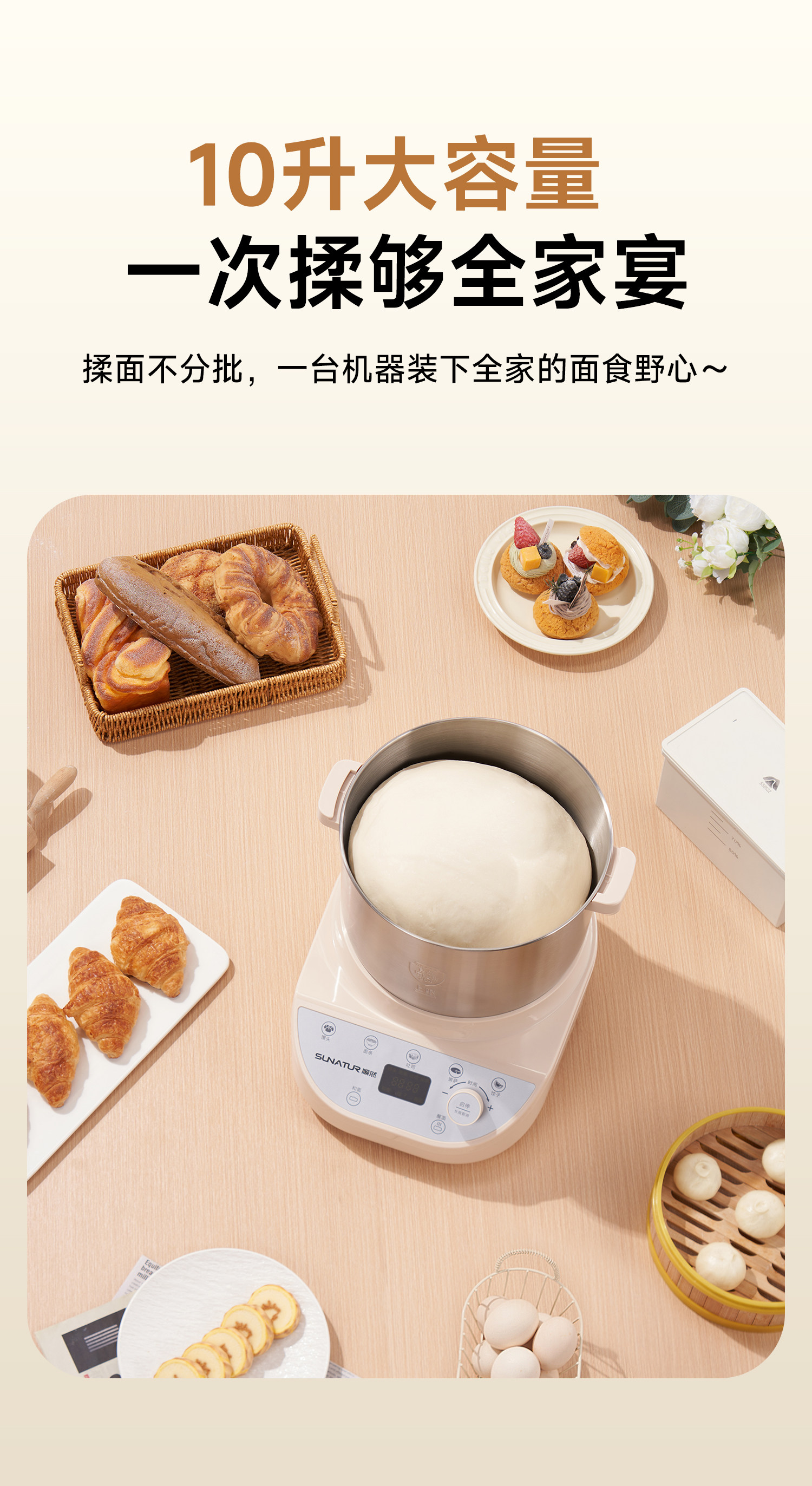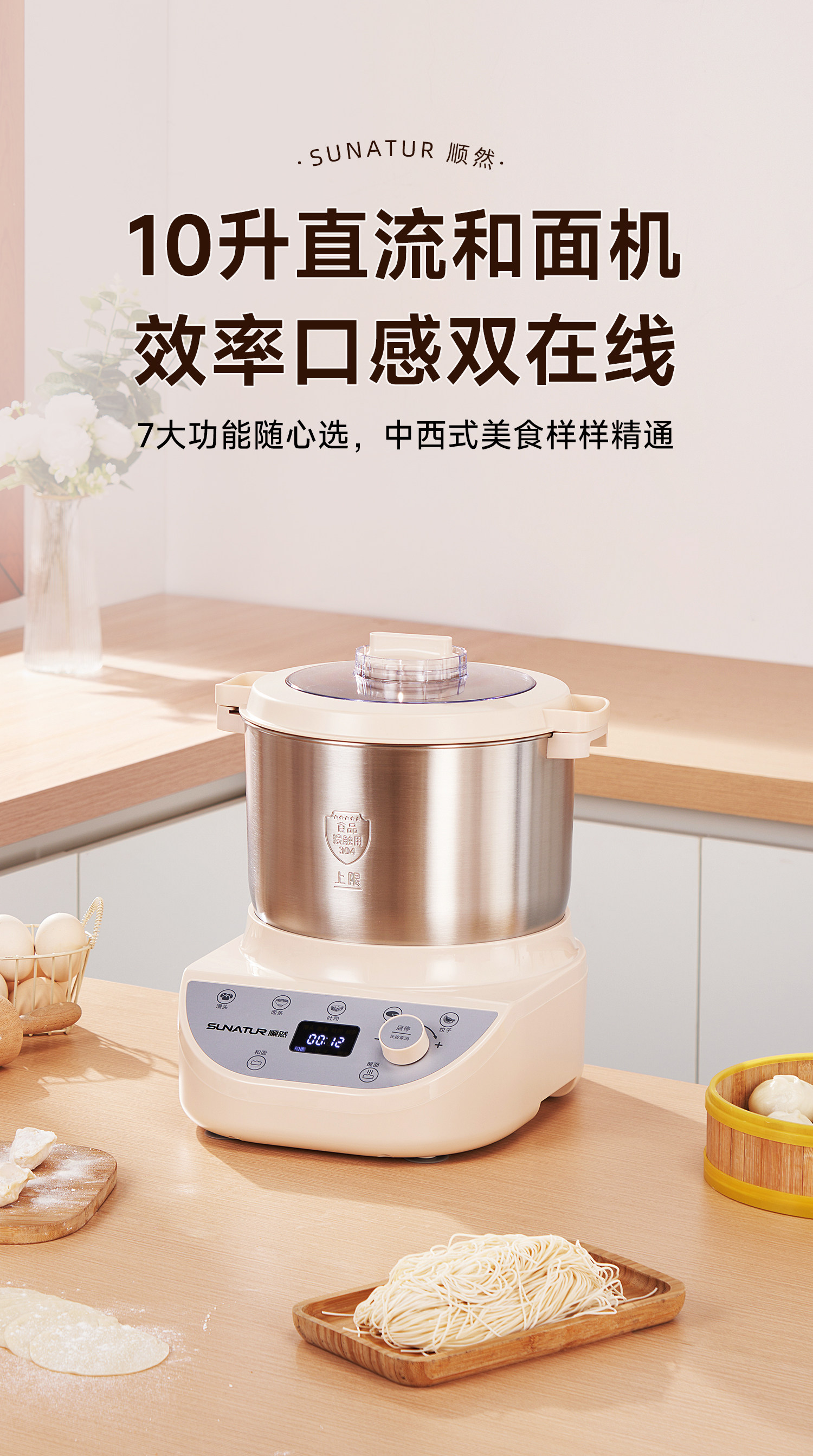 [National Subsidy 15%]Shunran 10-Liter Dough Mixer, Fully Automatic Kneading, New Model for Home and Commercial Use, Small Fermentation Chef Machine