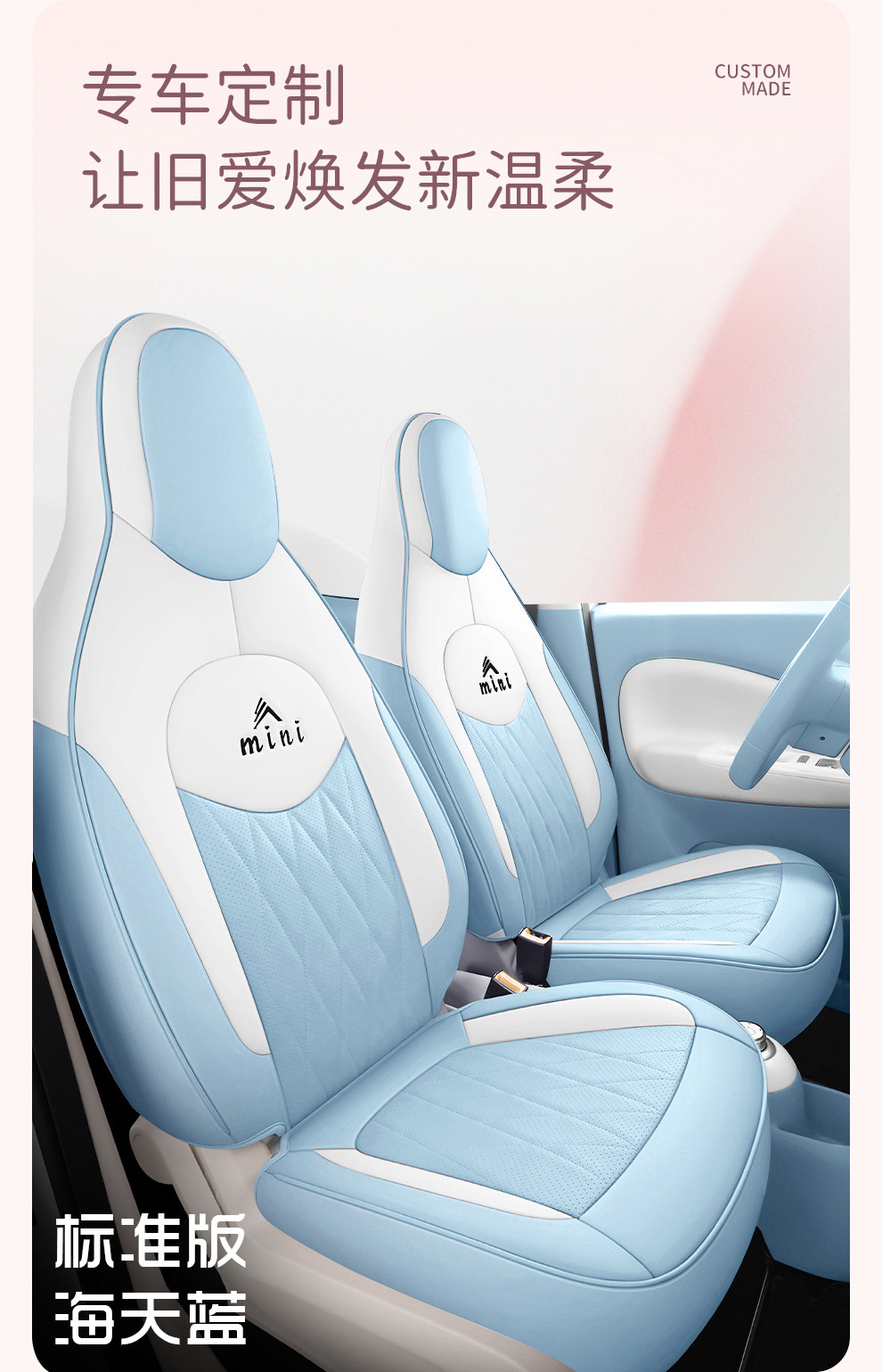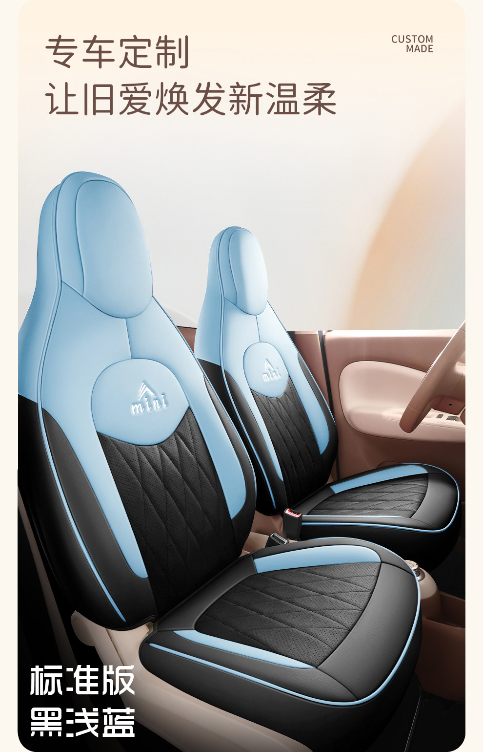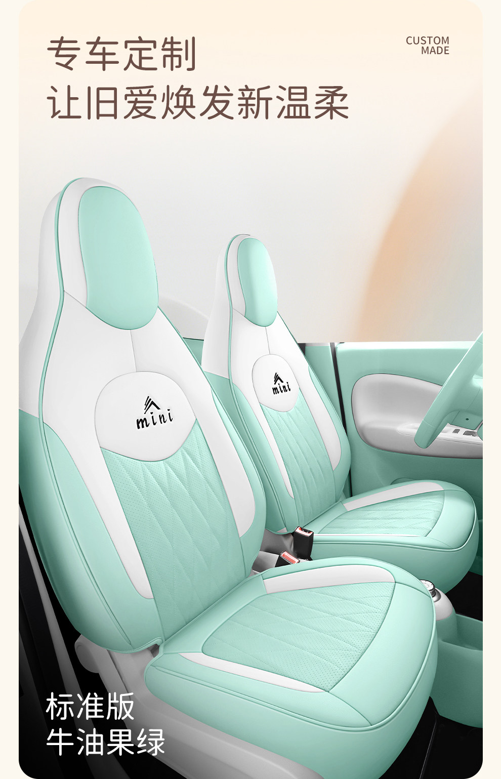 Genuine Leather Seat Covers for Wuling Hongguang Mini, Full Surround Cushion, Macaron Color, Third Generation Four-Door Version Mini Seat Cover