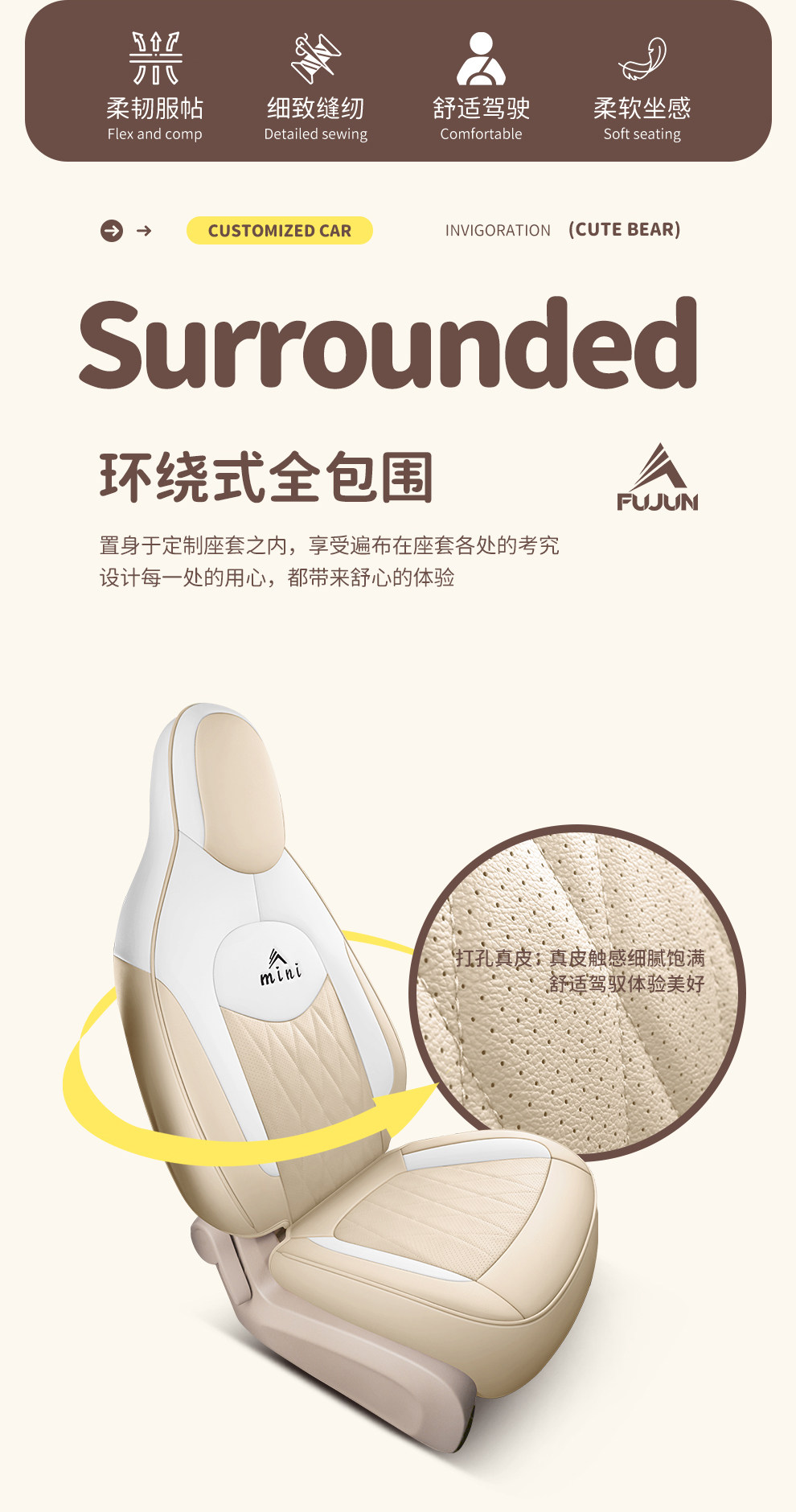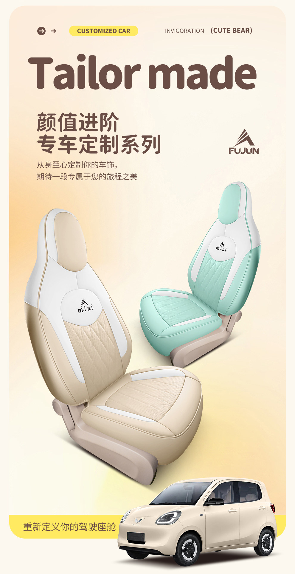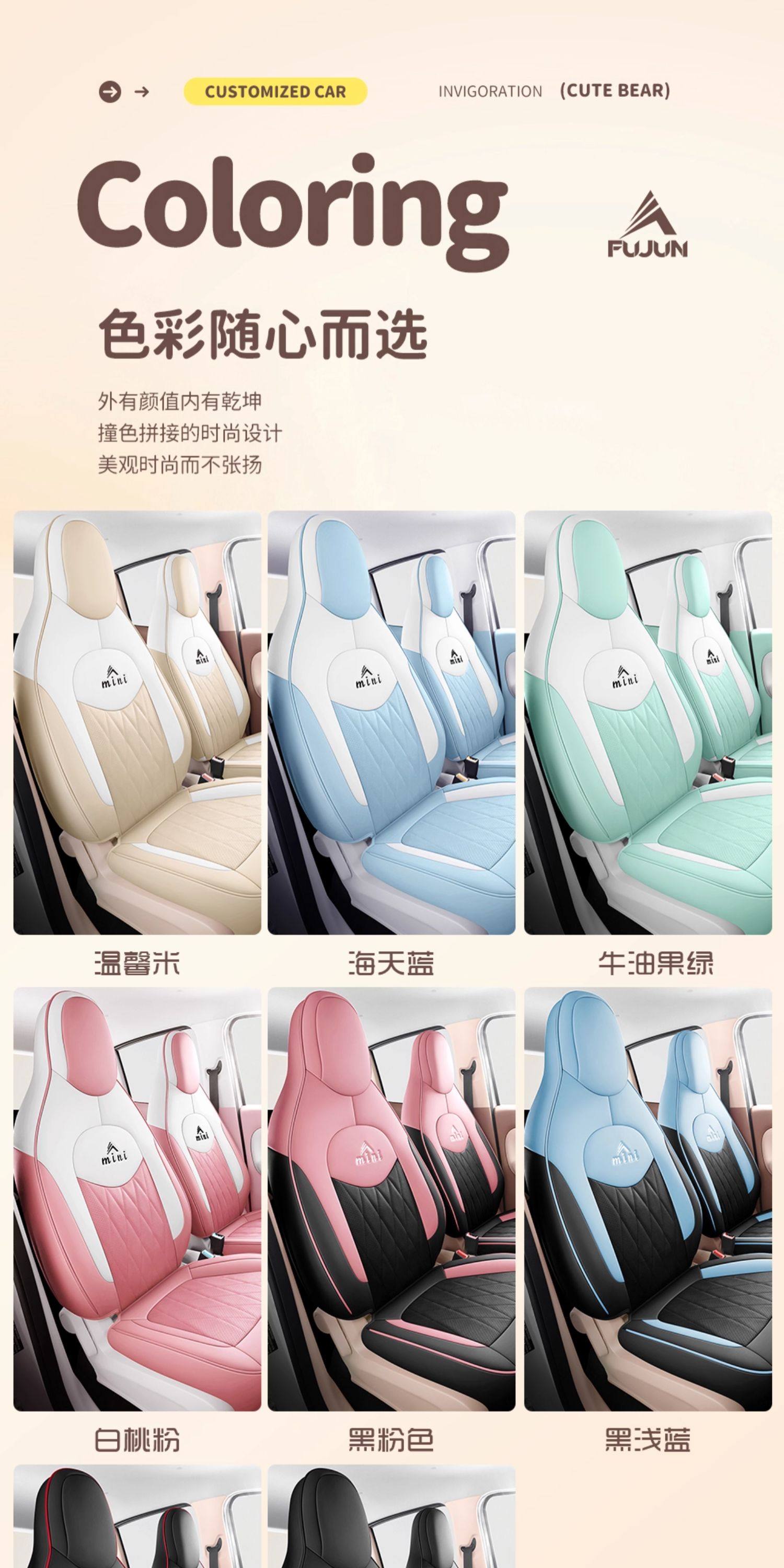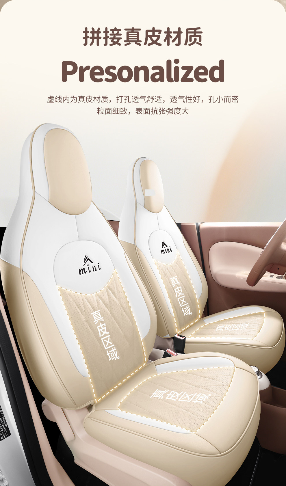 Genuine Leather Seat Covers for Wuling Hongguang Mini, Full Surround Cushion, Macaron Color, Third Generation Four-Door Version Mini Seat Cover