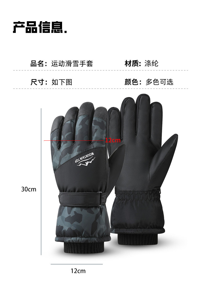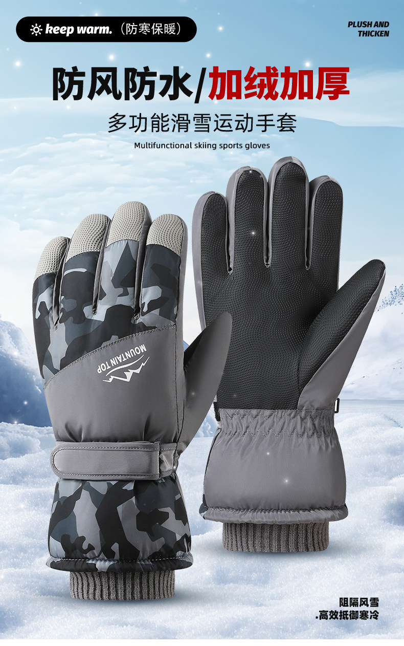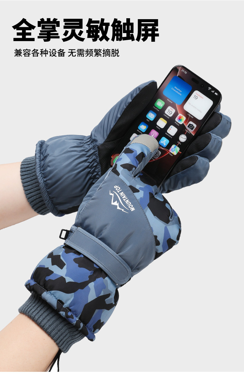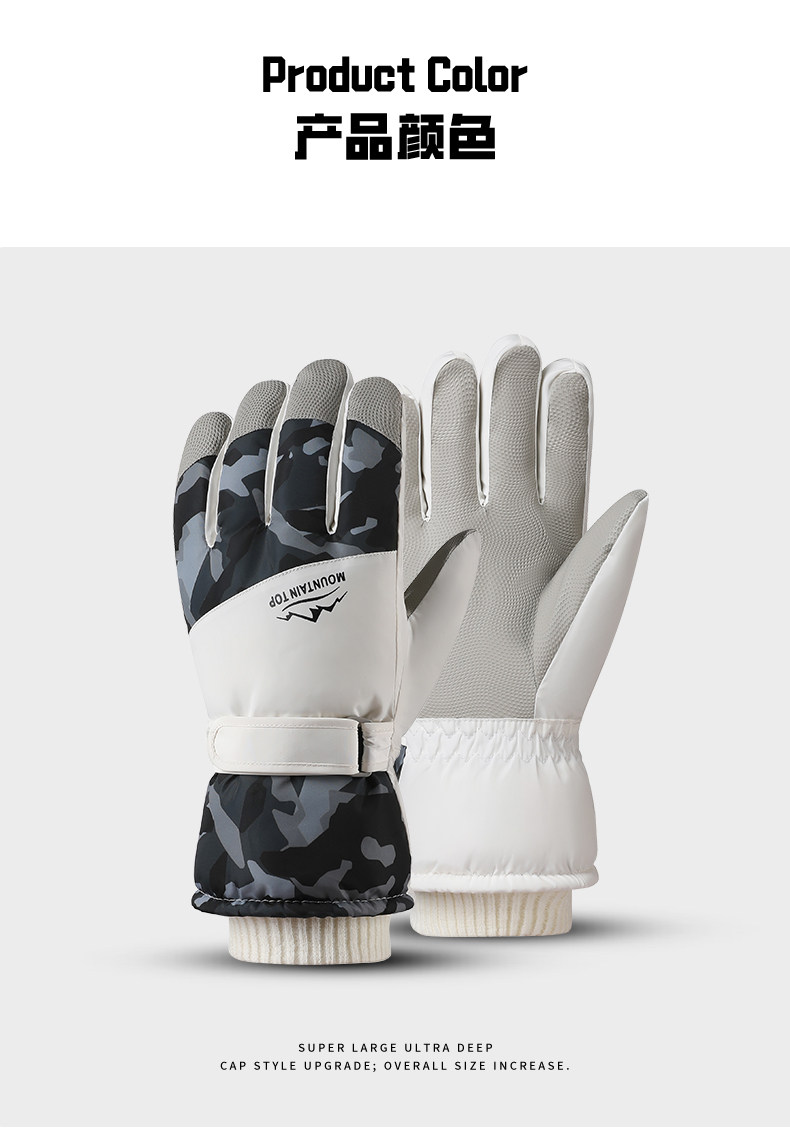 Men's Ski Gloves for Winter Cycling, Warm, Windproof, Cold-Proof, Suitable for Riding Electric Bikes, Fleece-Lined, Thick, Touchscreen Gloves