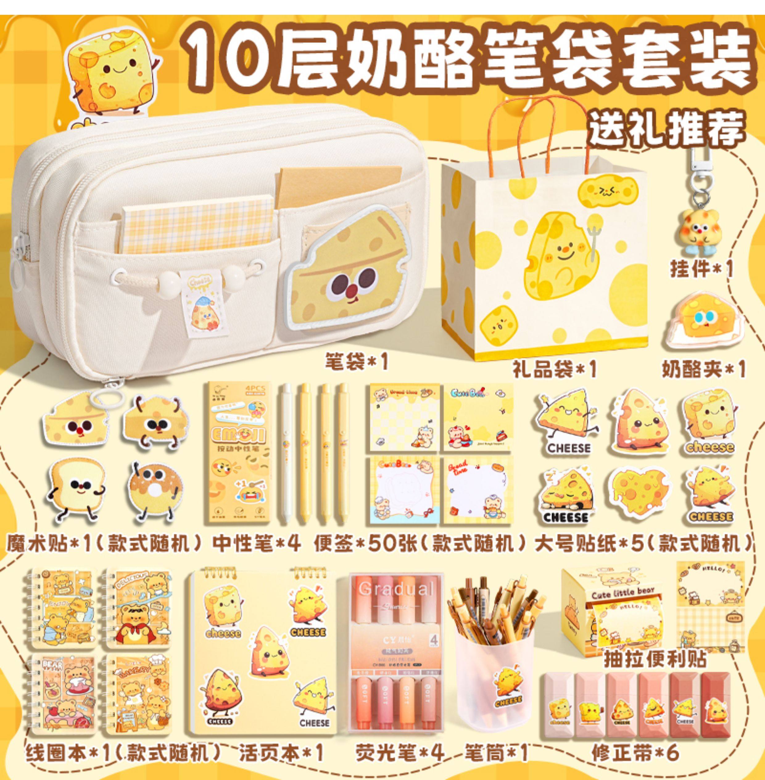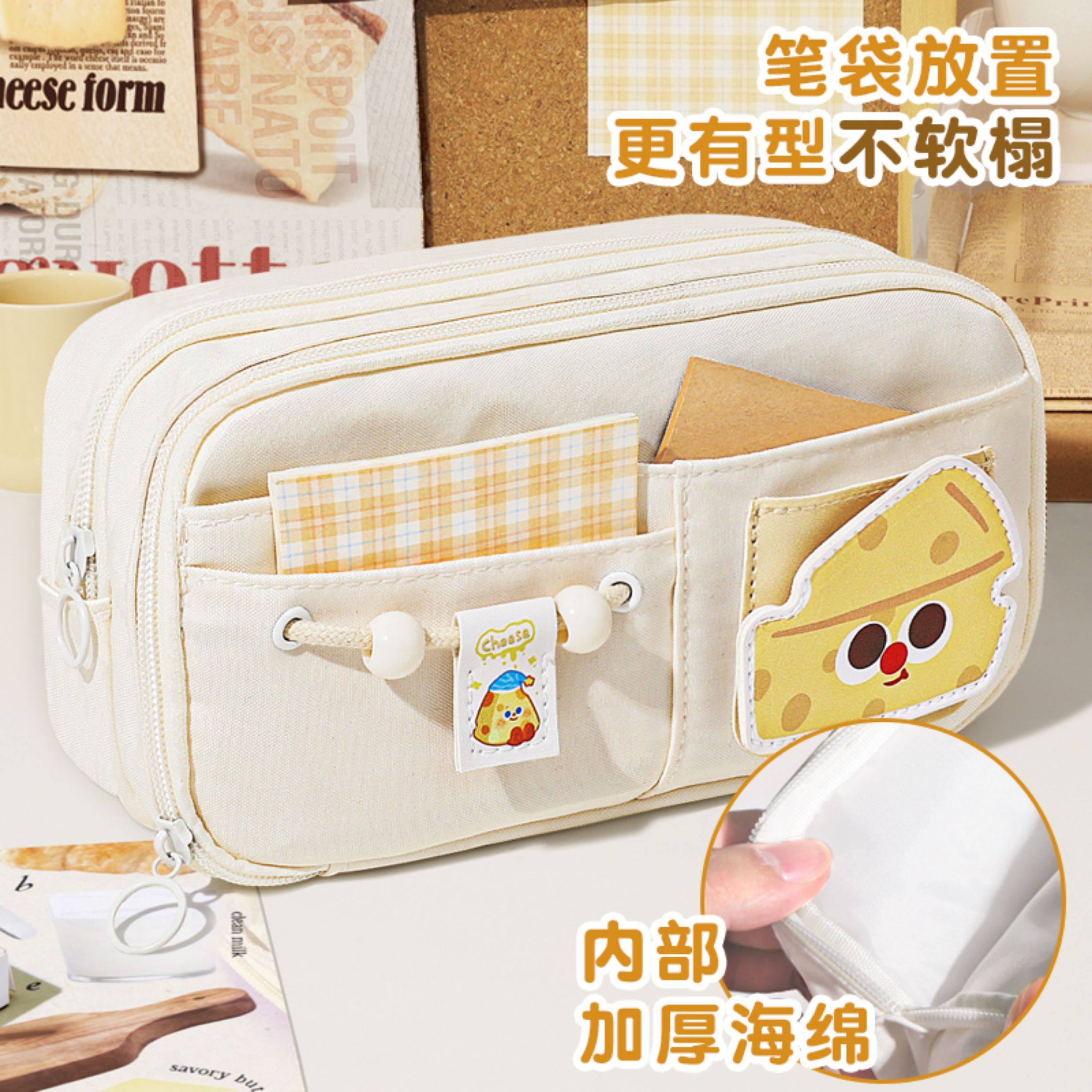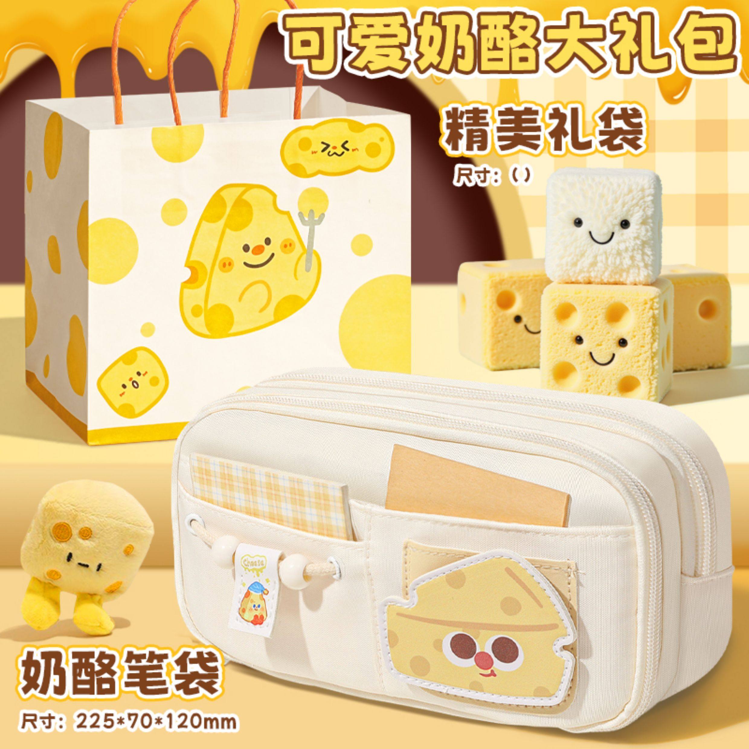 Complete Cheese-Themed Set! Super Popular and Stylish Pencil Case for Girls, 2026 New Model, Ins-Style Large Capacity Stationery Box for Elementary School Students, Cute Multifunctional Stationery Bag for Girls, Pencil Case Set for Middle School Boys