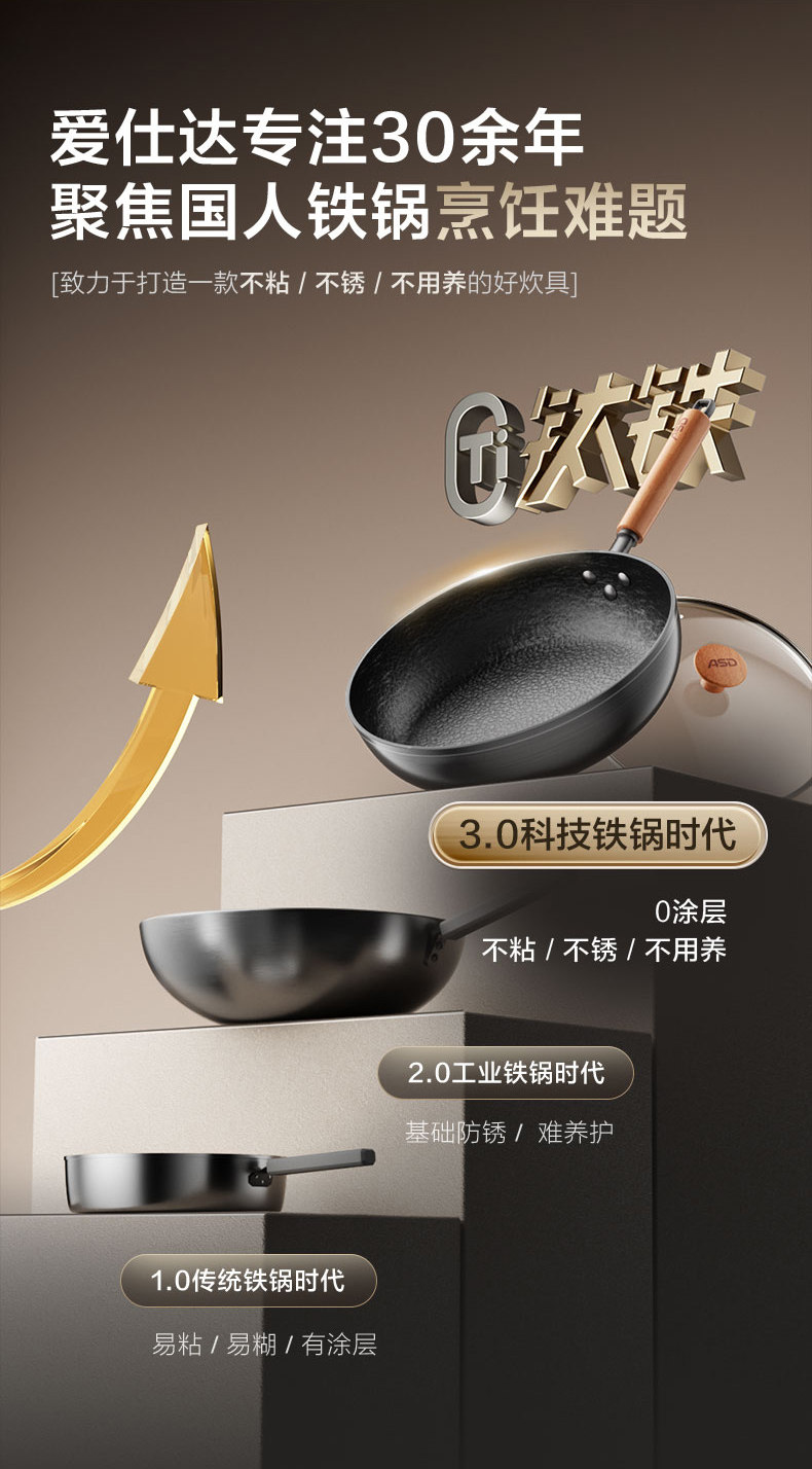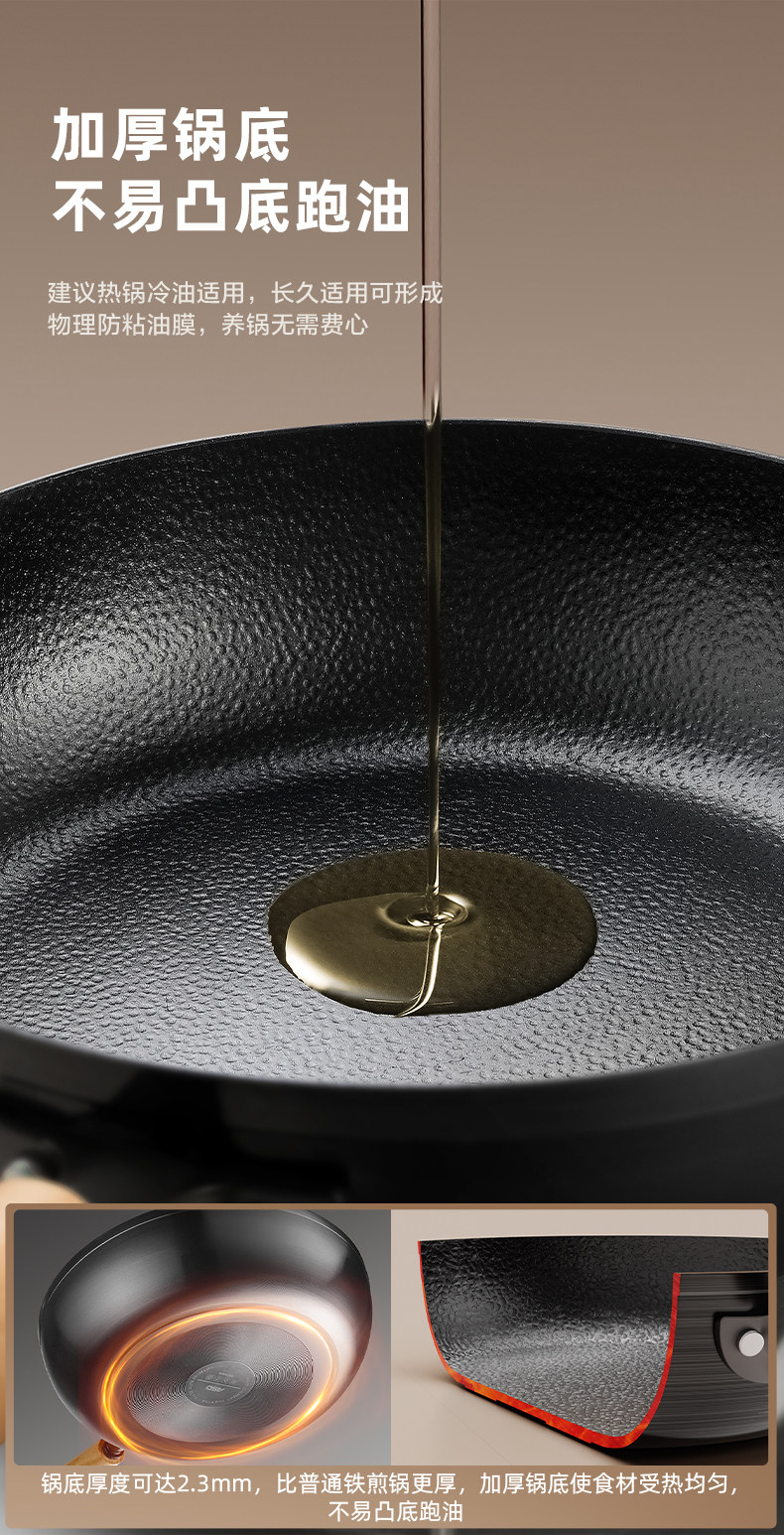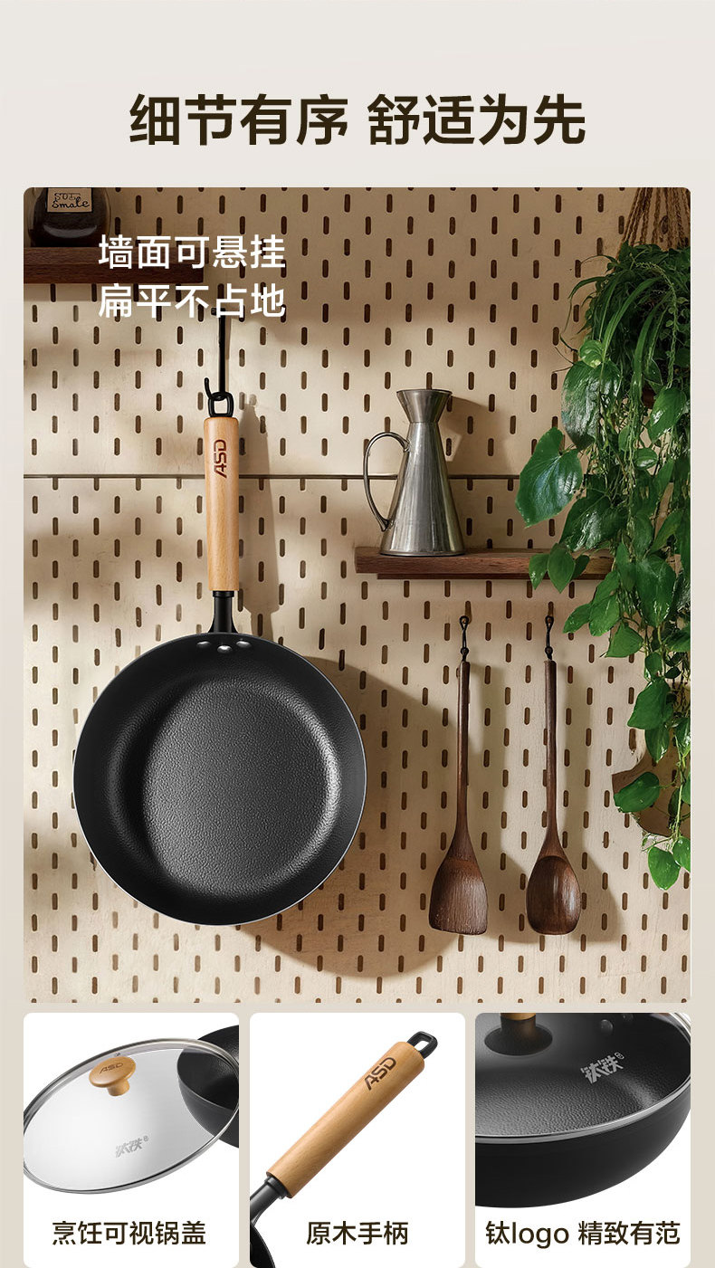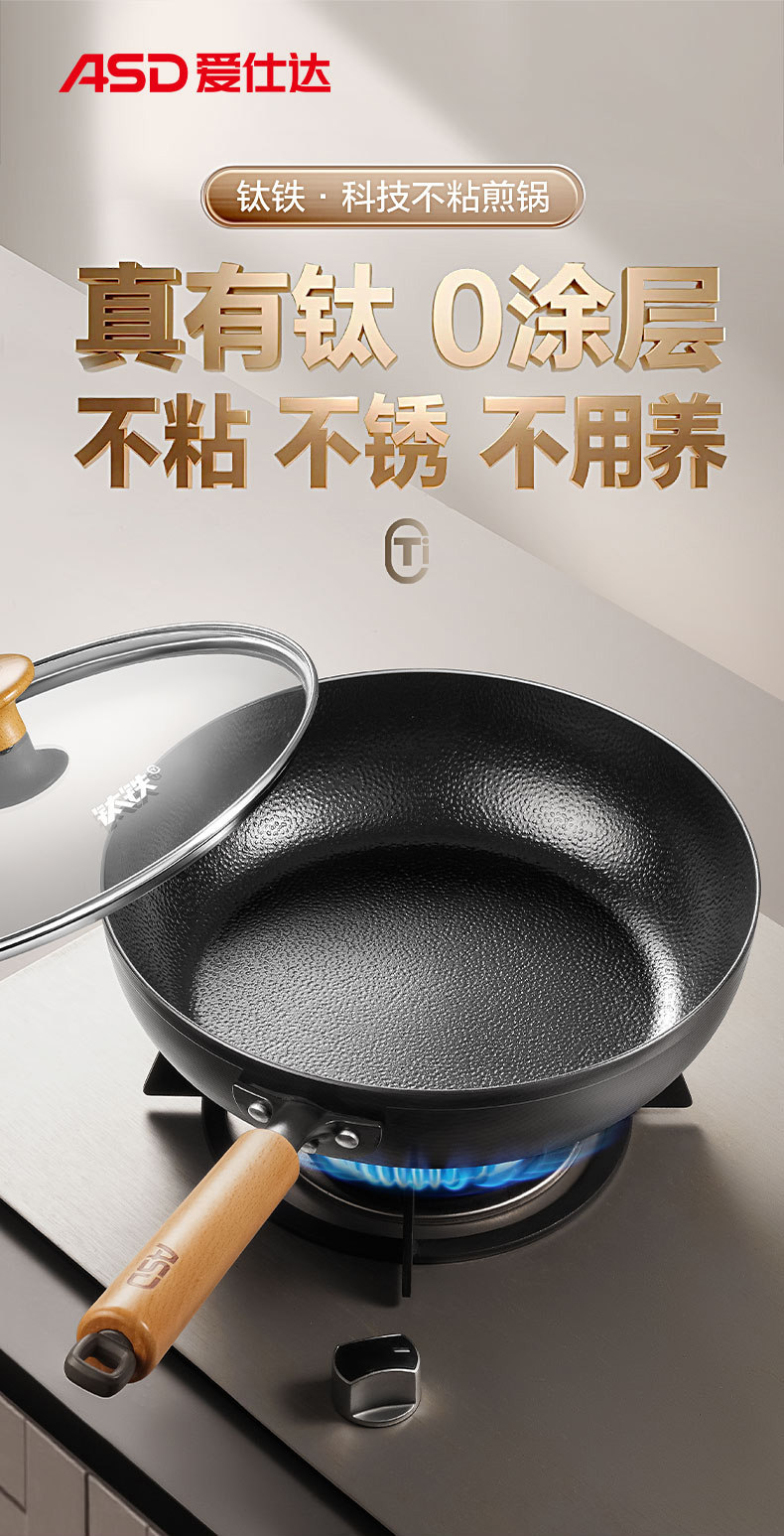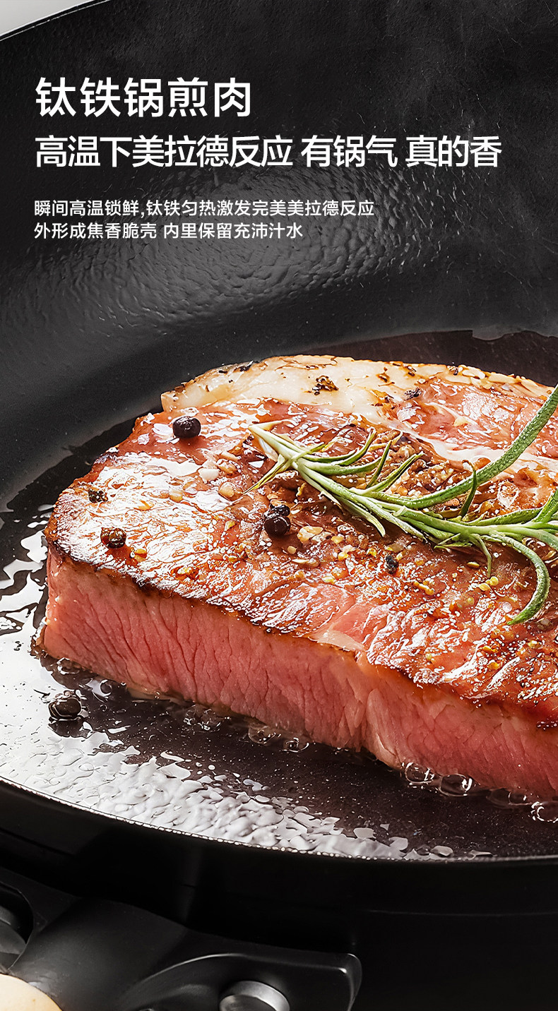 [Deepened and Thickened, Not Prone to Warping] Asd Titanium Steak Frying Pan, Iron Skillet, Flat-Bottomed Pan, Non-Stick Pan for Home Use