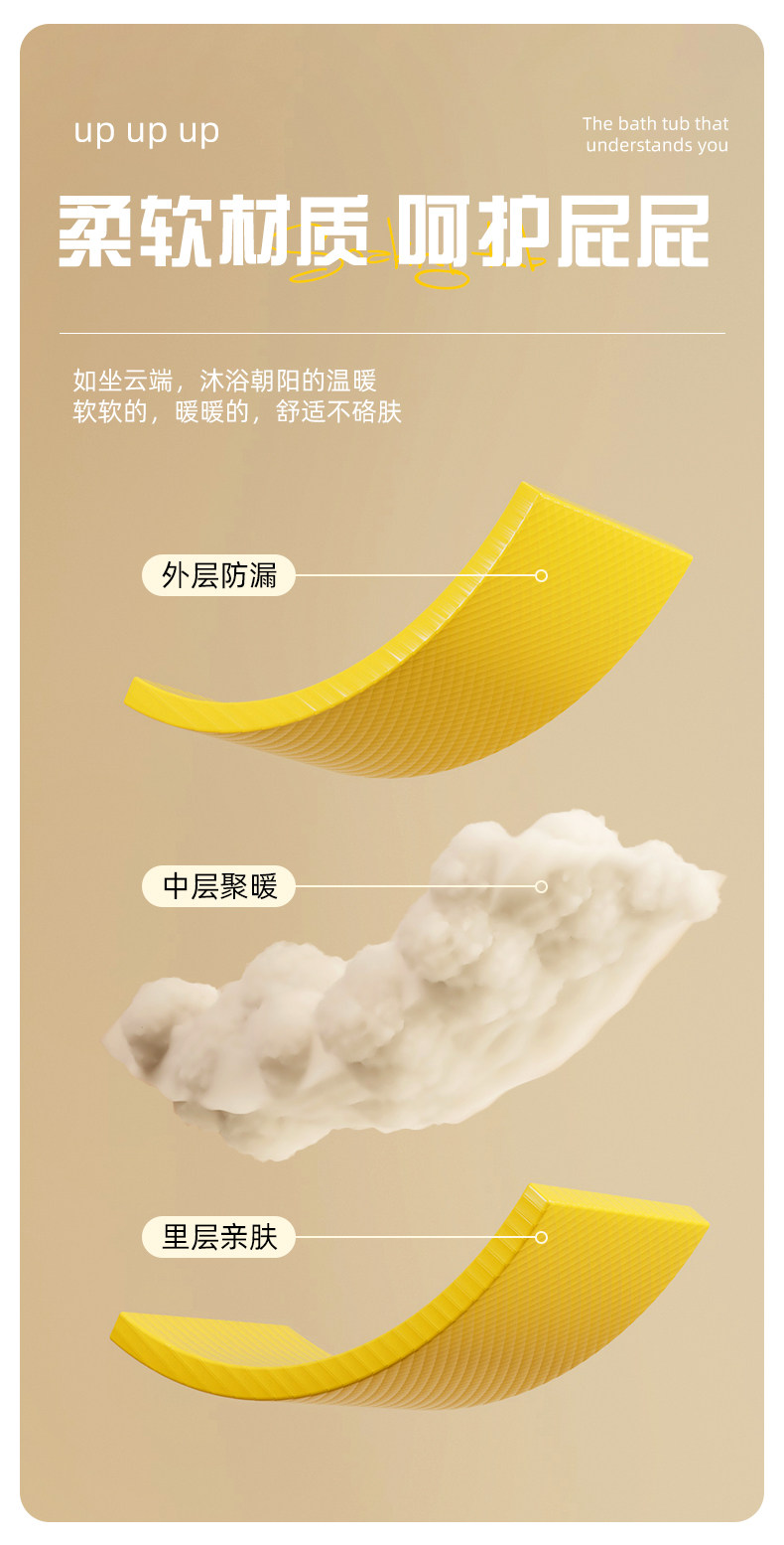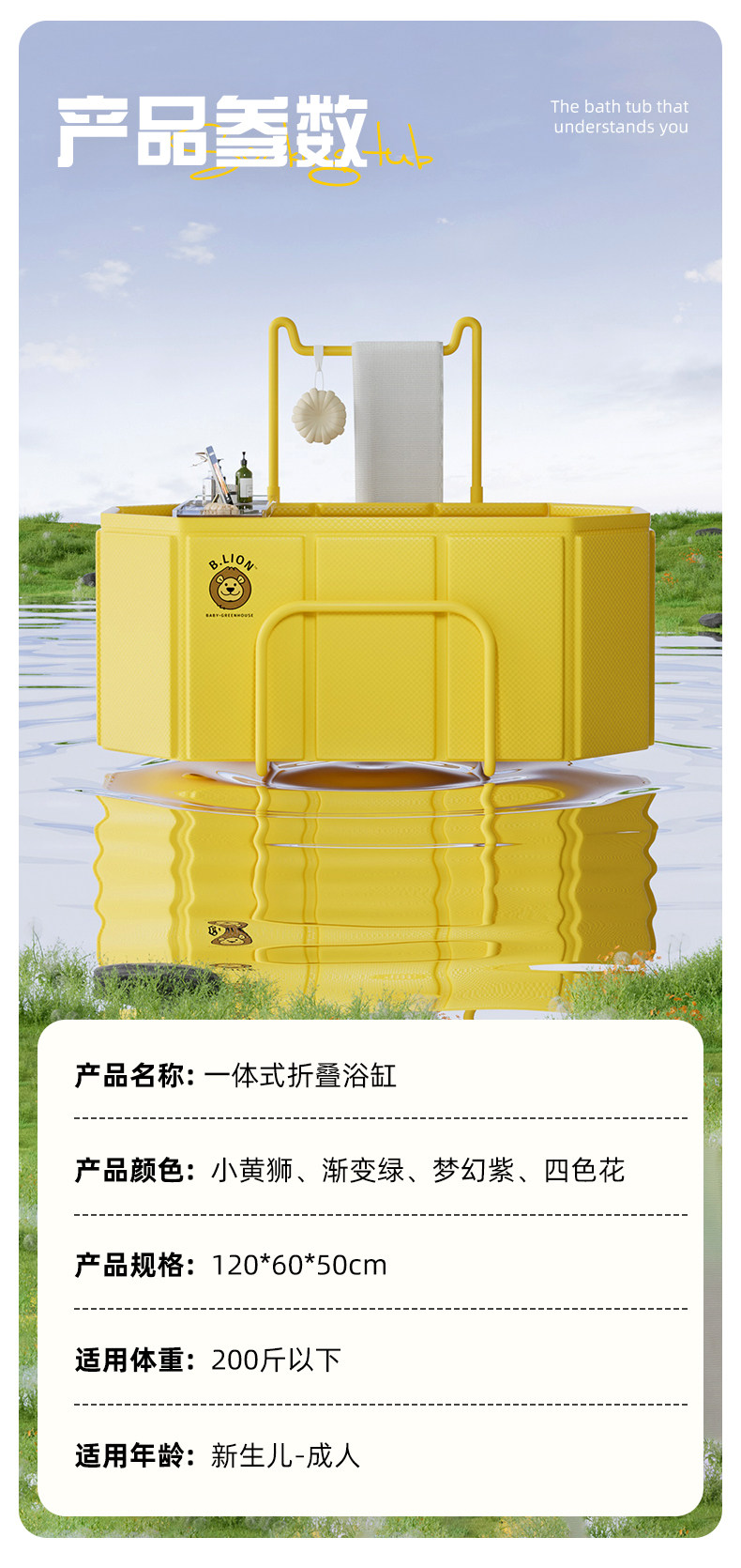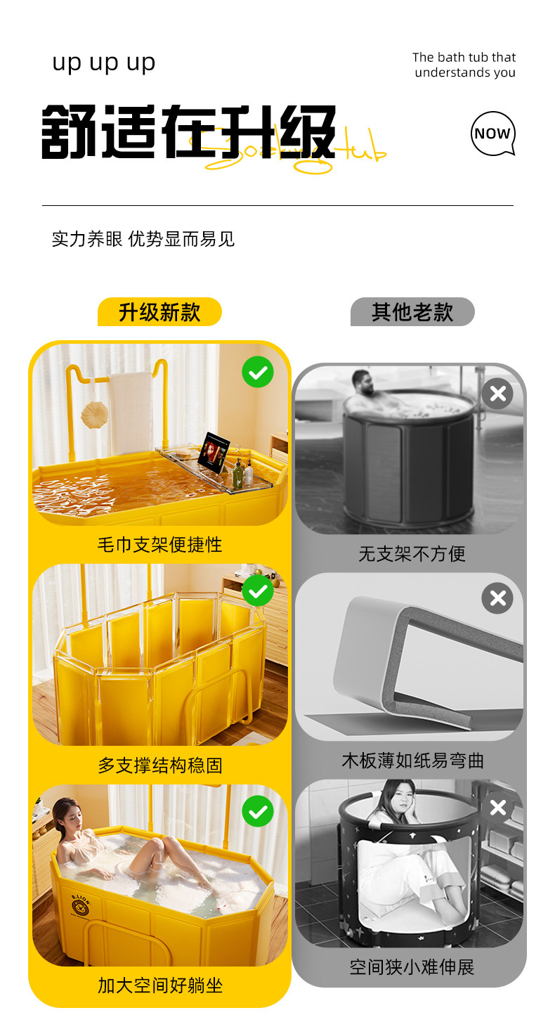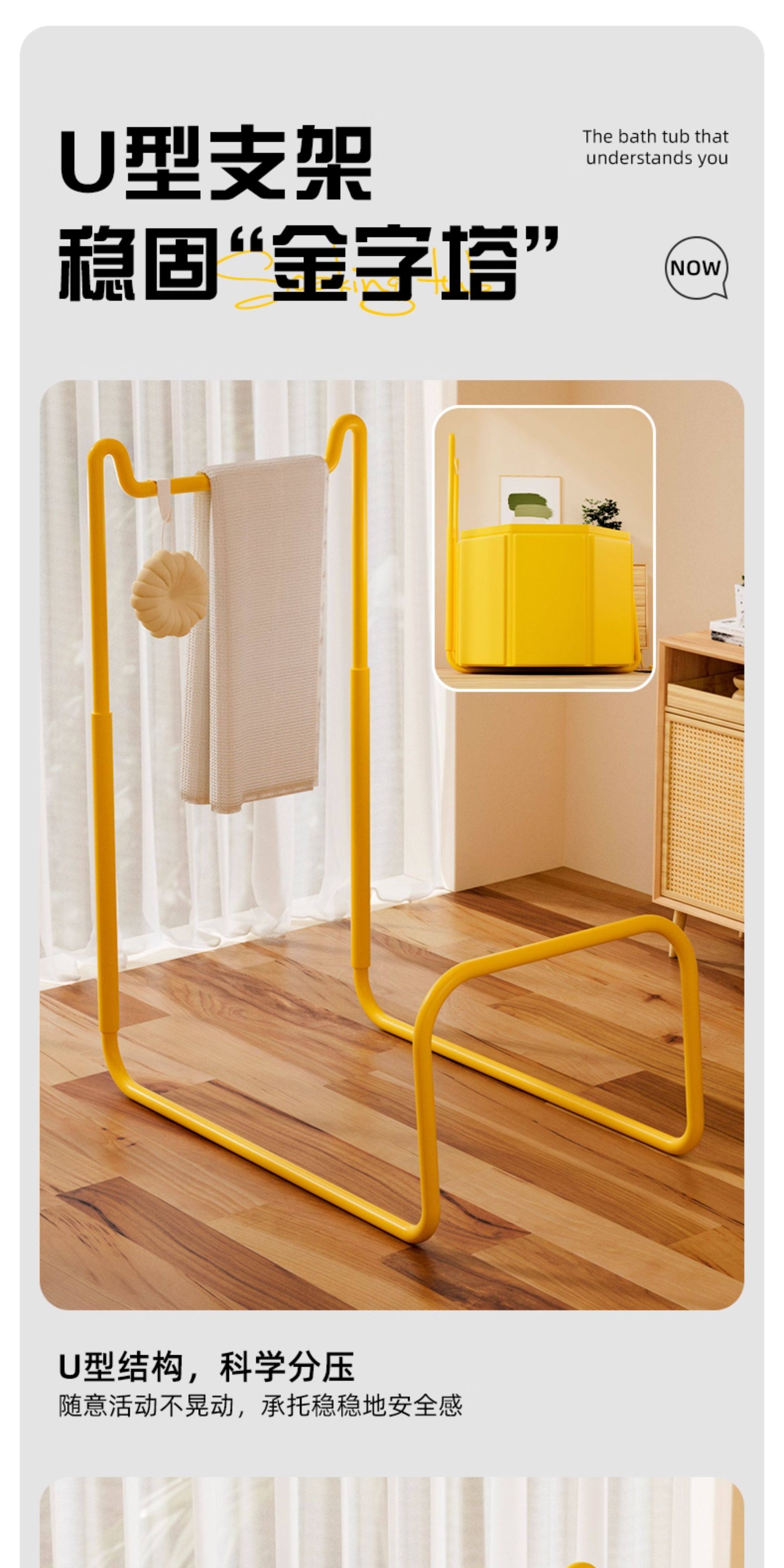 Xingyou Bath Bucket Adult Full-Body Bathtub with Towel Rack Bath Bucket Household Foldable Children's Sit-On Bath Bucket