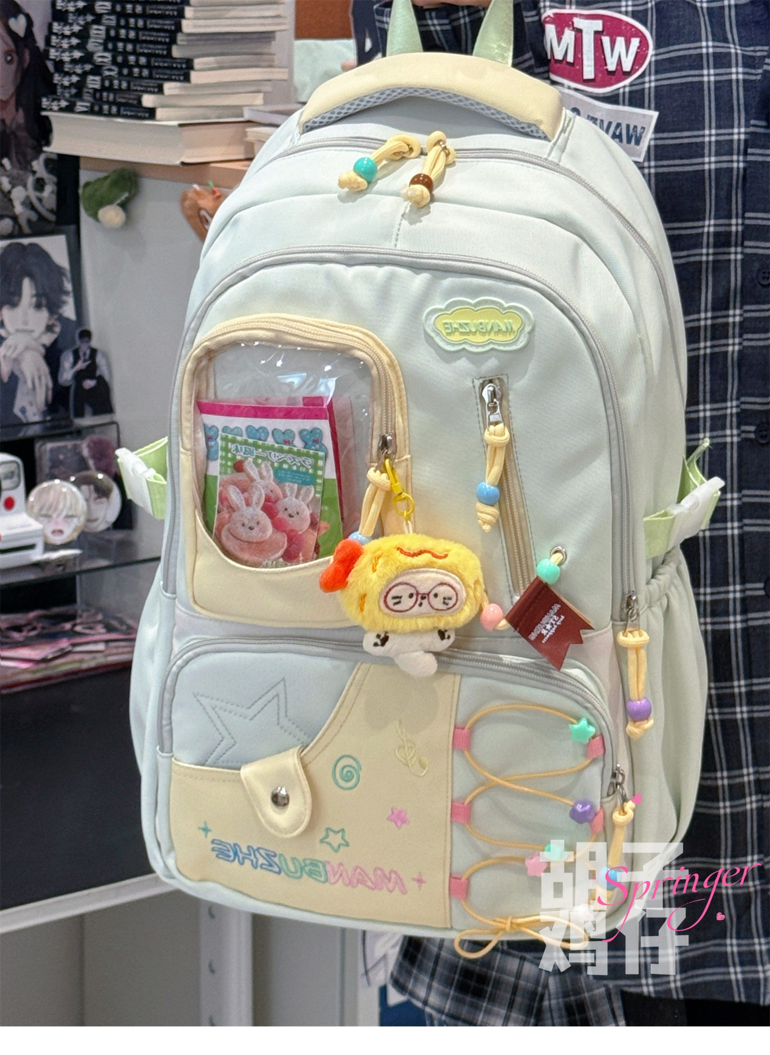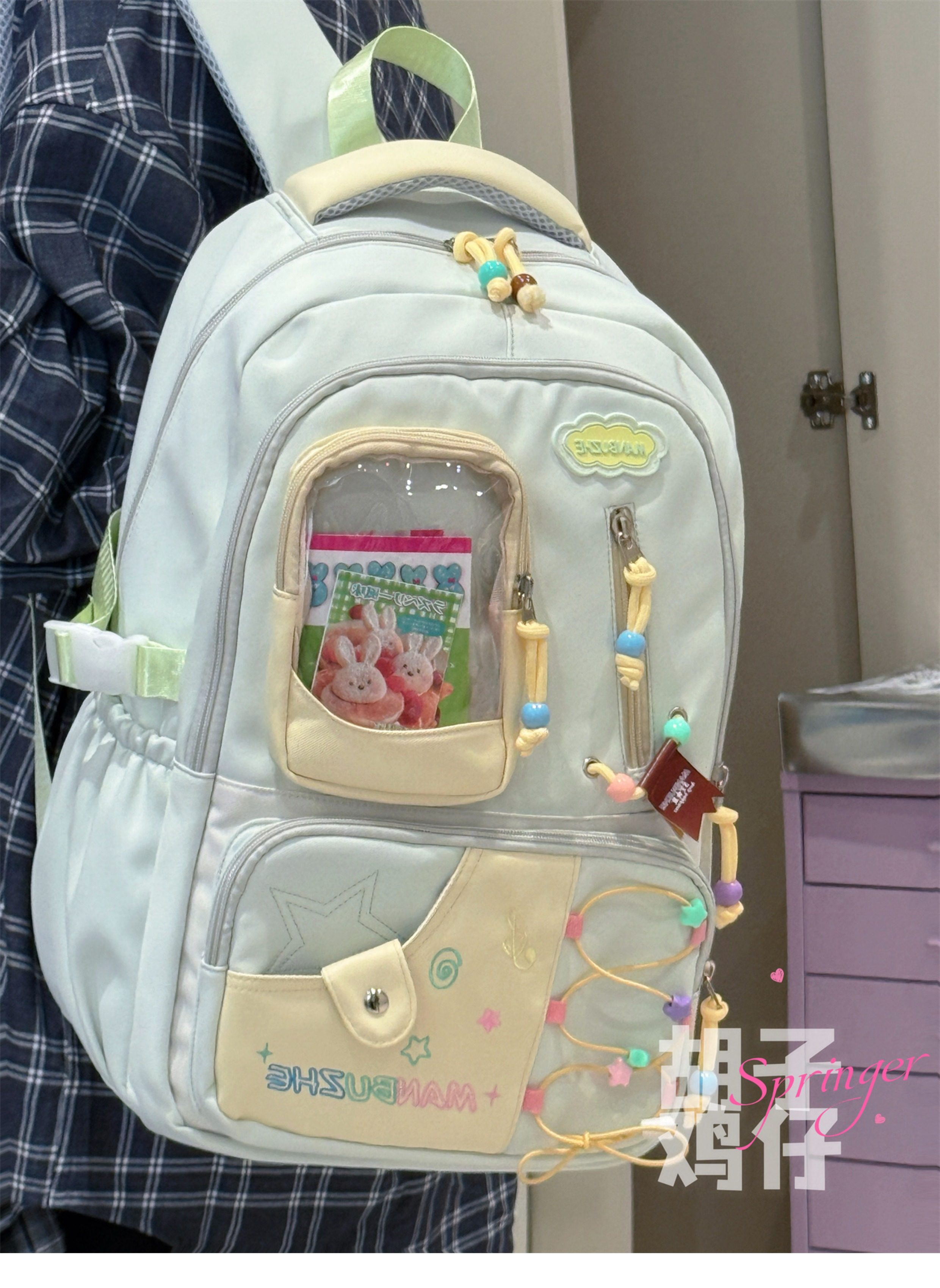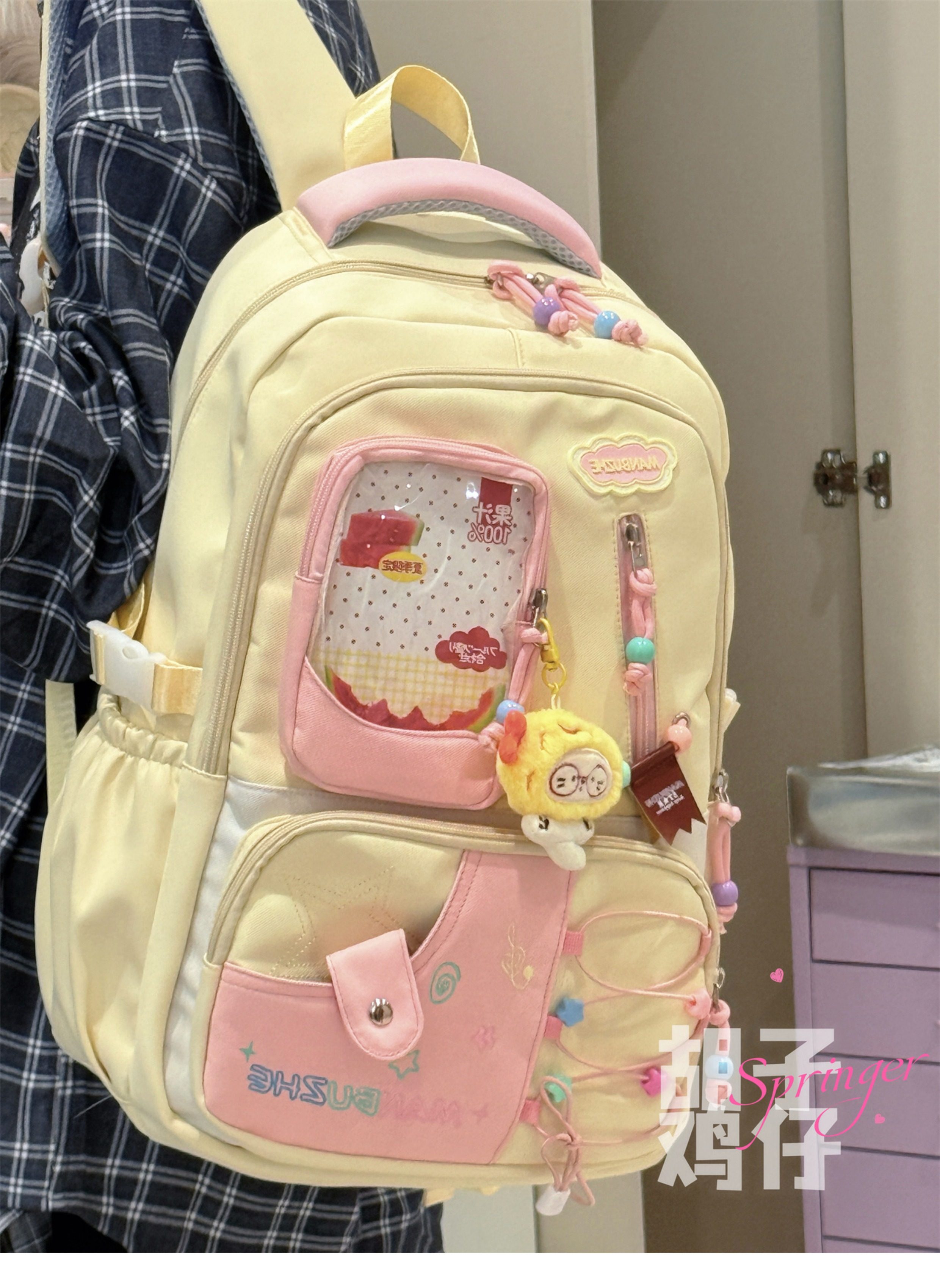Bearded Chicken Dopamine Girl Backpack for Female High School Students, Junior High School Students, High-Value School Bag, Large Capacity Backpack