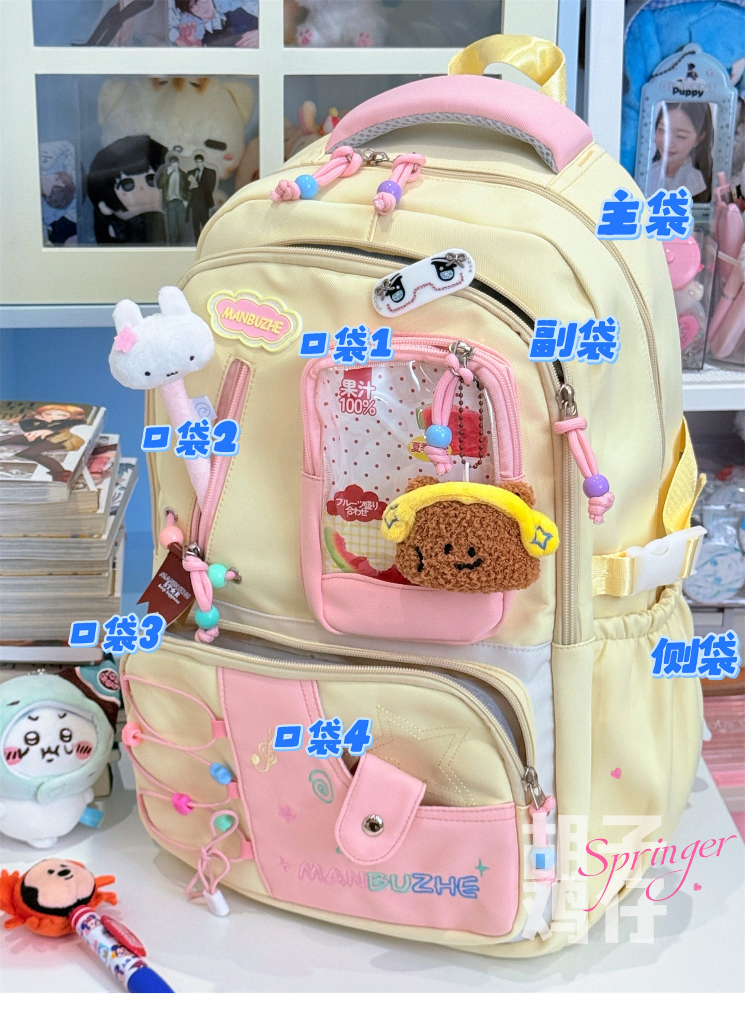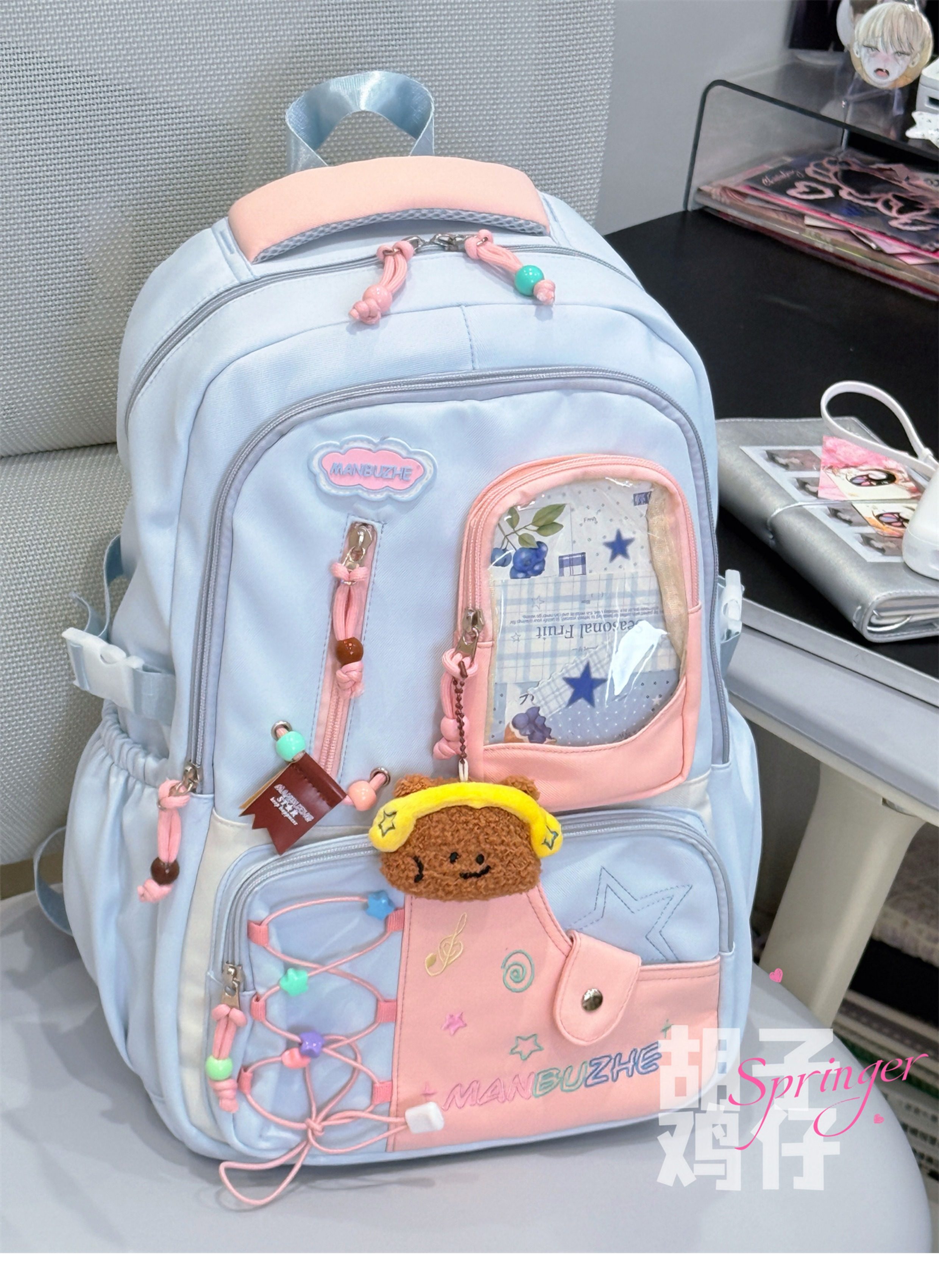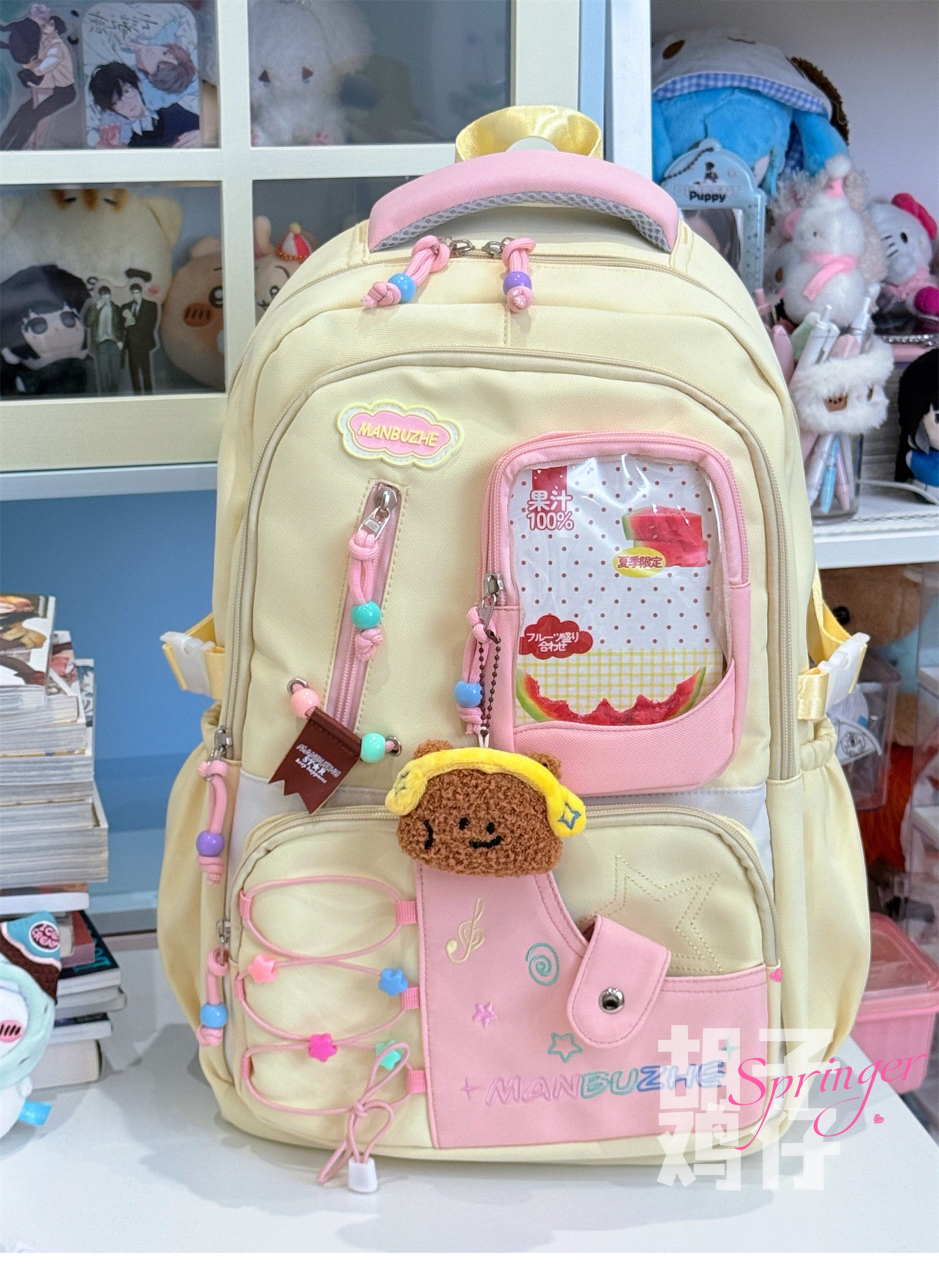 Bearded Chicken Dopamine Girl Backpack for Female High School Students, Junior High School Students, High-Value School Bag, Large Capacity Backpack