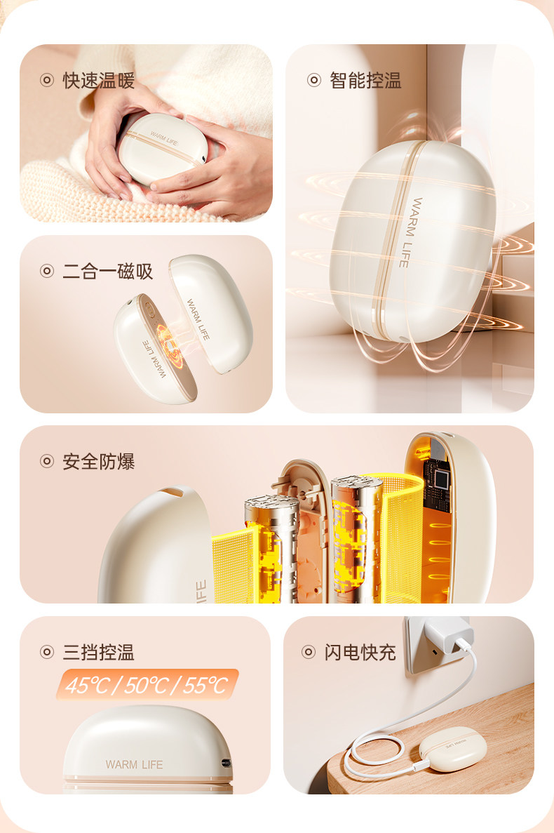 [2025 New Model]Magnetic Detachable USB Rechargeable Hand Warmer, Mini Portable Self-Heating Hand Warmer, Split into Two, Winter Gift for Girls, Souvenir