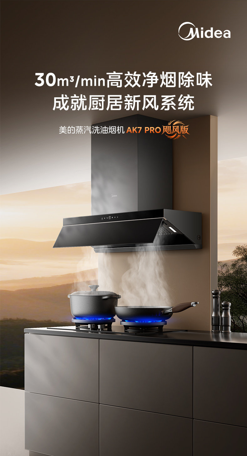 Midea Ak7Pro Hurricane Edition Steam Range Hood for Home Kitchen with High Suction Power Official Ak9Pro Range Hood and Stove Set